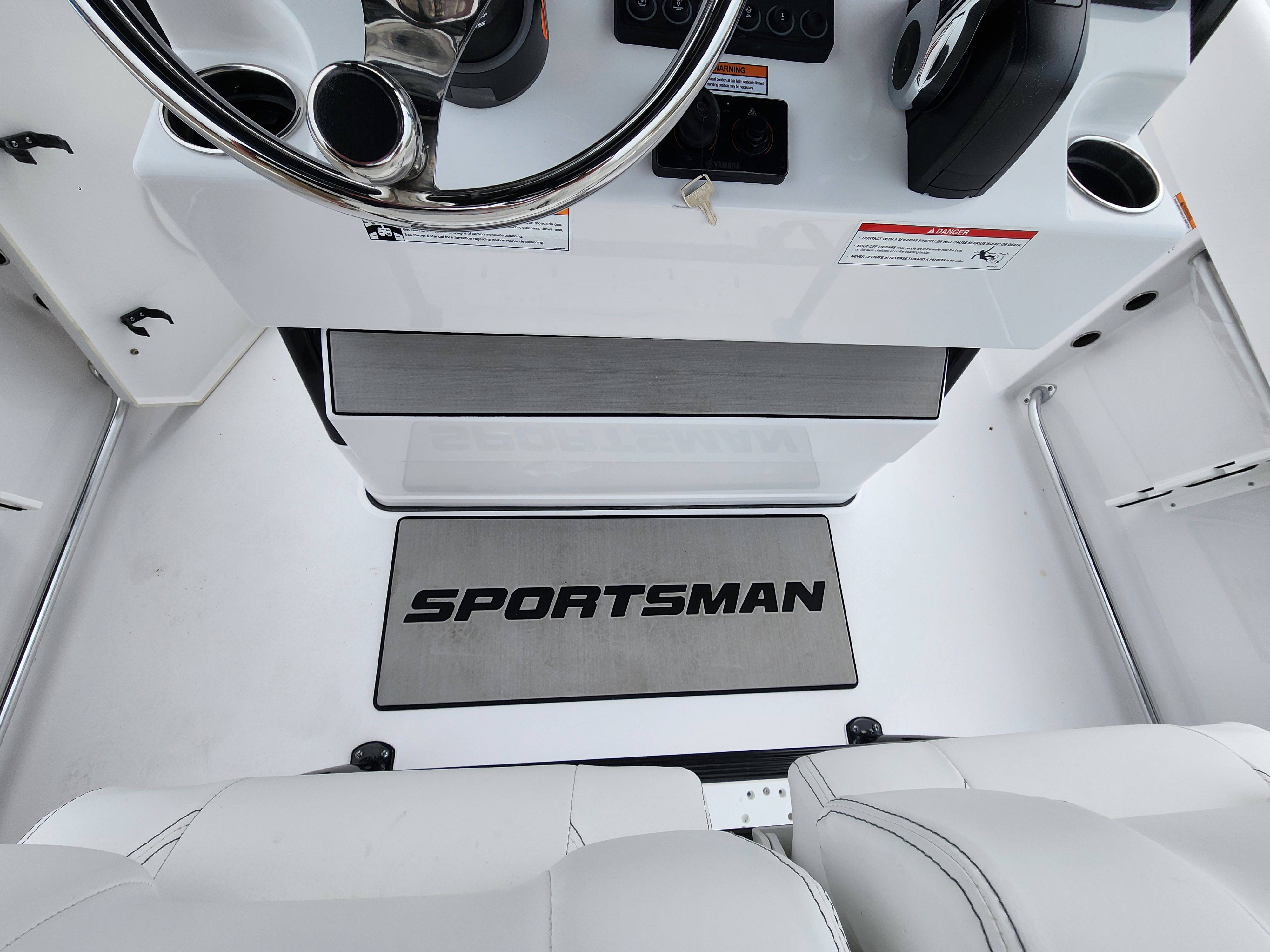 2025 Sportsman Open 212 powered by a Yamaha F200XC and includes a trailer!Factory Installed Options:Exterior- jet black hull sides with white hull bottomInterior- Sileather polar white upholsteryFiberglass console with footrest & storageFiberglass hard top with LED lightingJet black hard top undersideBlack powder coatingBow sundeck with removable table and cushionPremium dual chair leaning post with flip up bolstersSlide out track for Yeti coolerGarmin 12" GPS screen with built in WIFIGarmin Apollo RA670 stereo with sportunTrolling motor plug, harness & adapterTelescoping ski tow bar