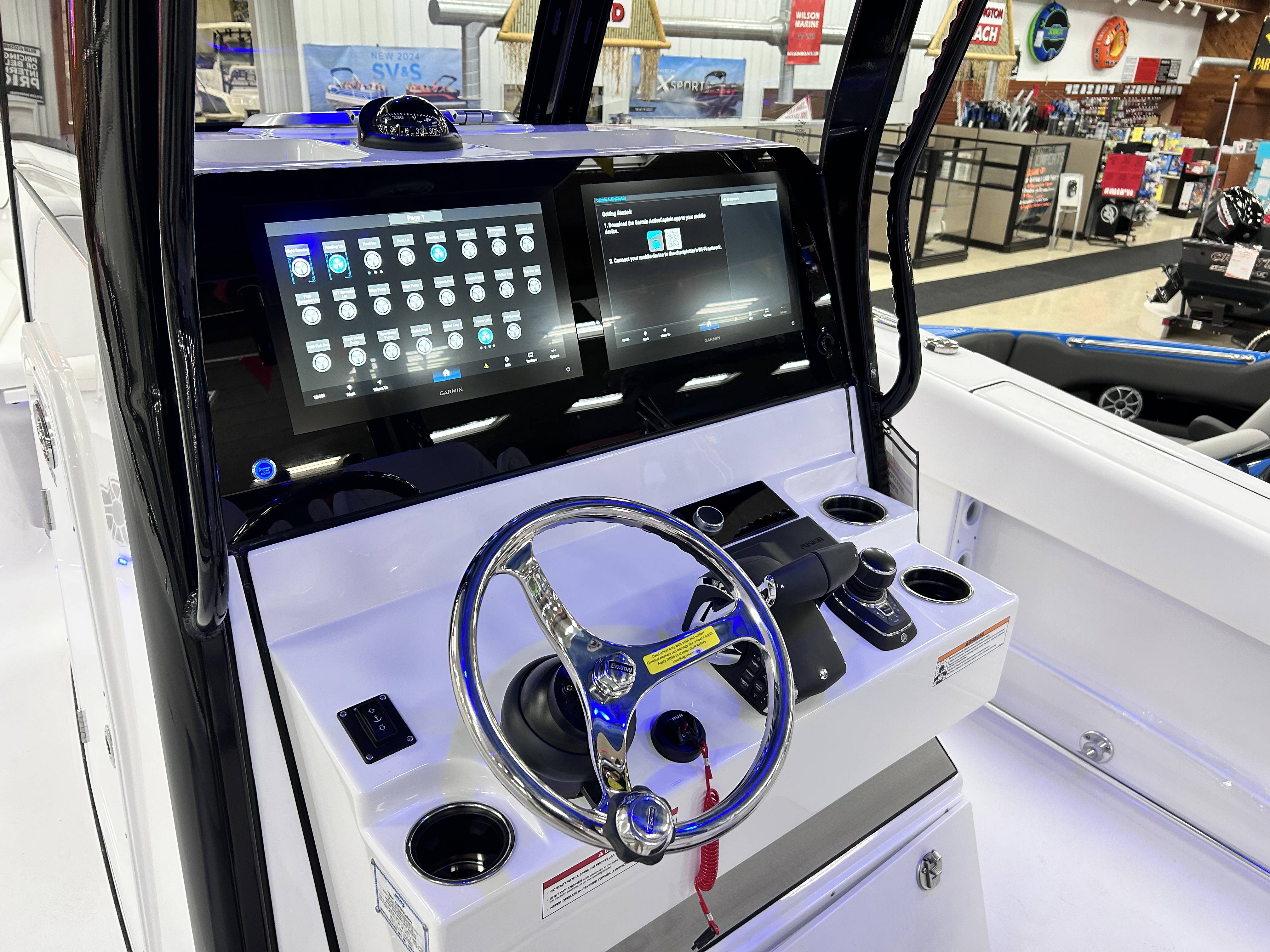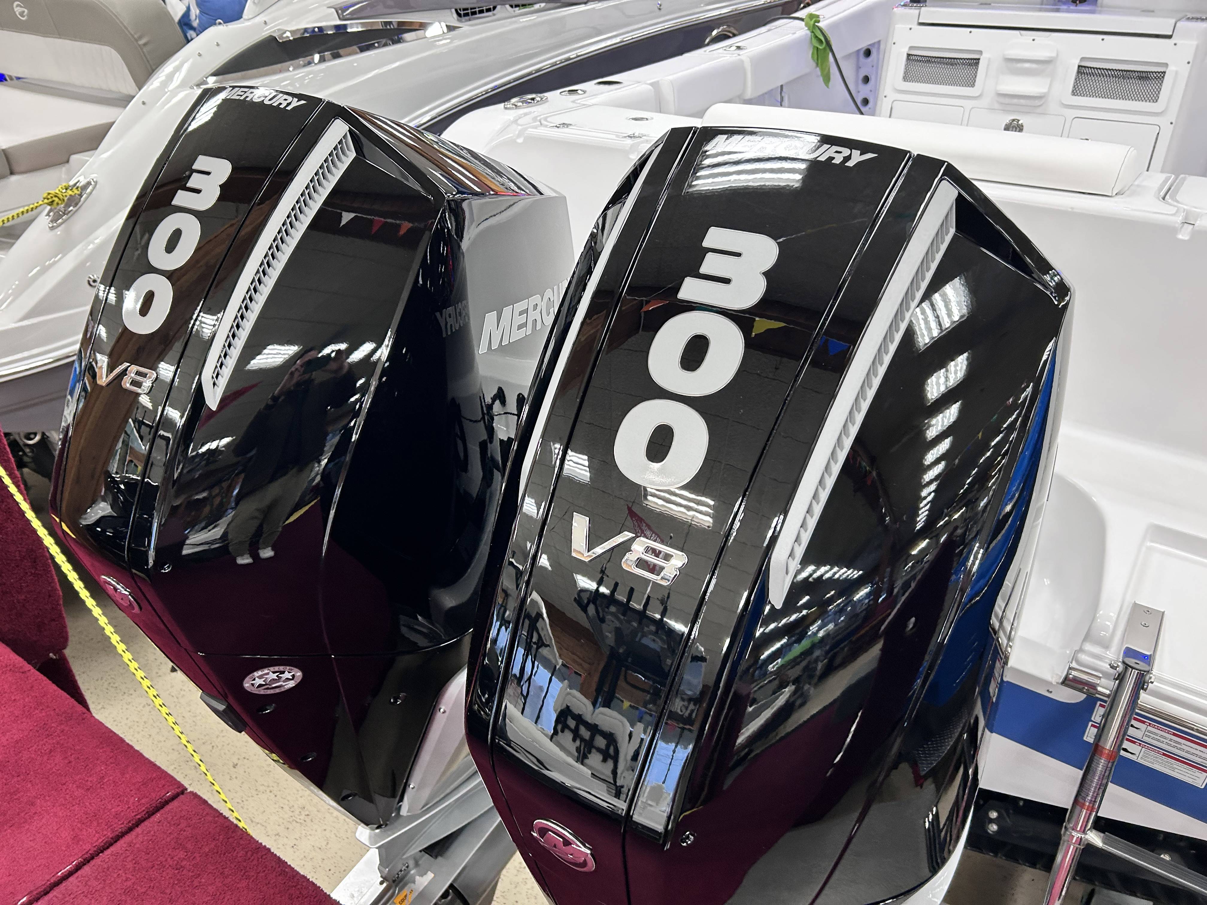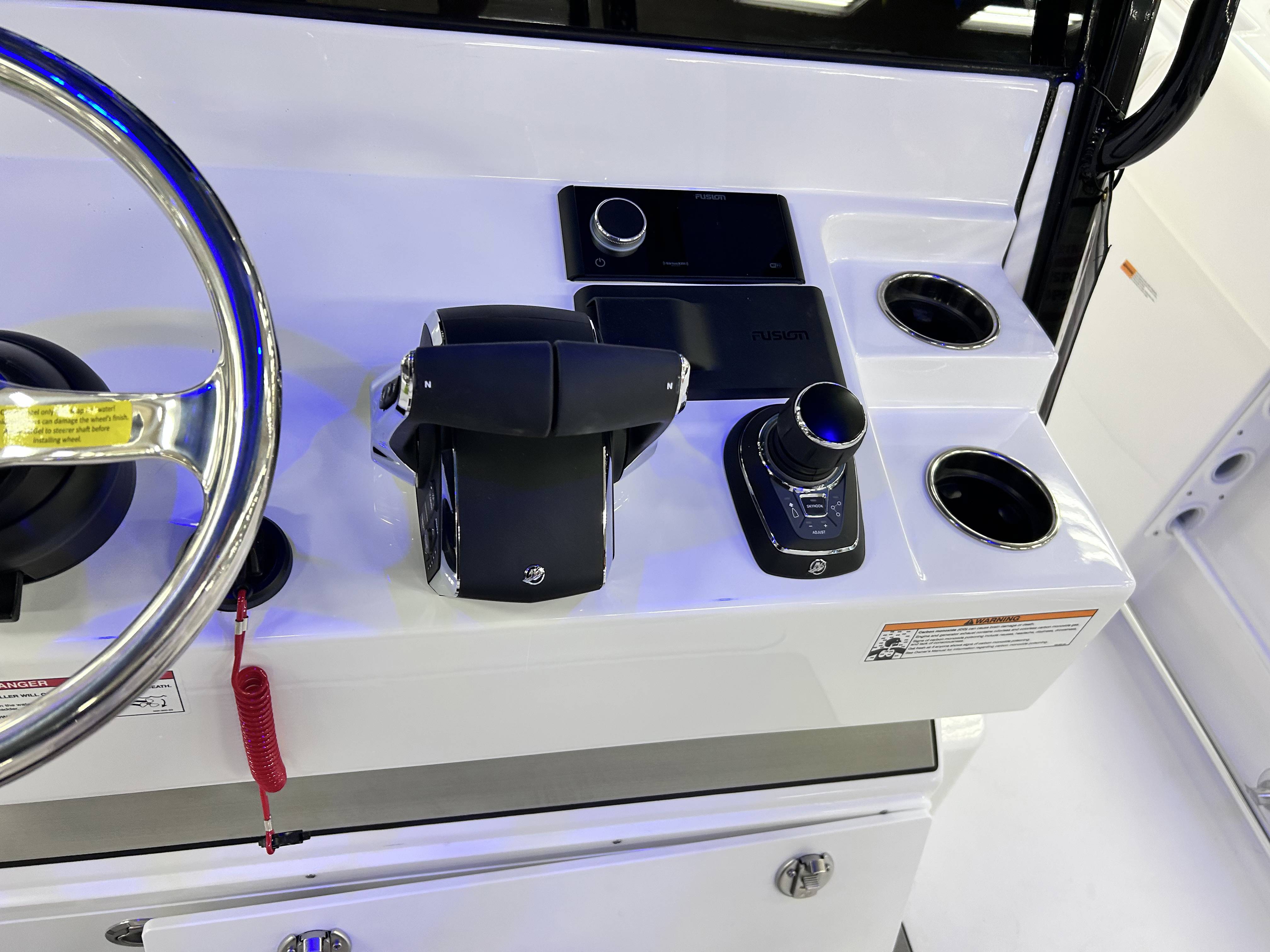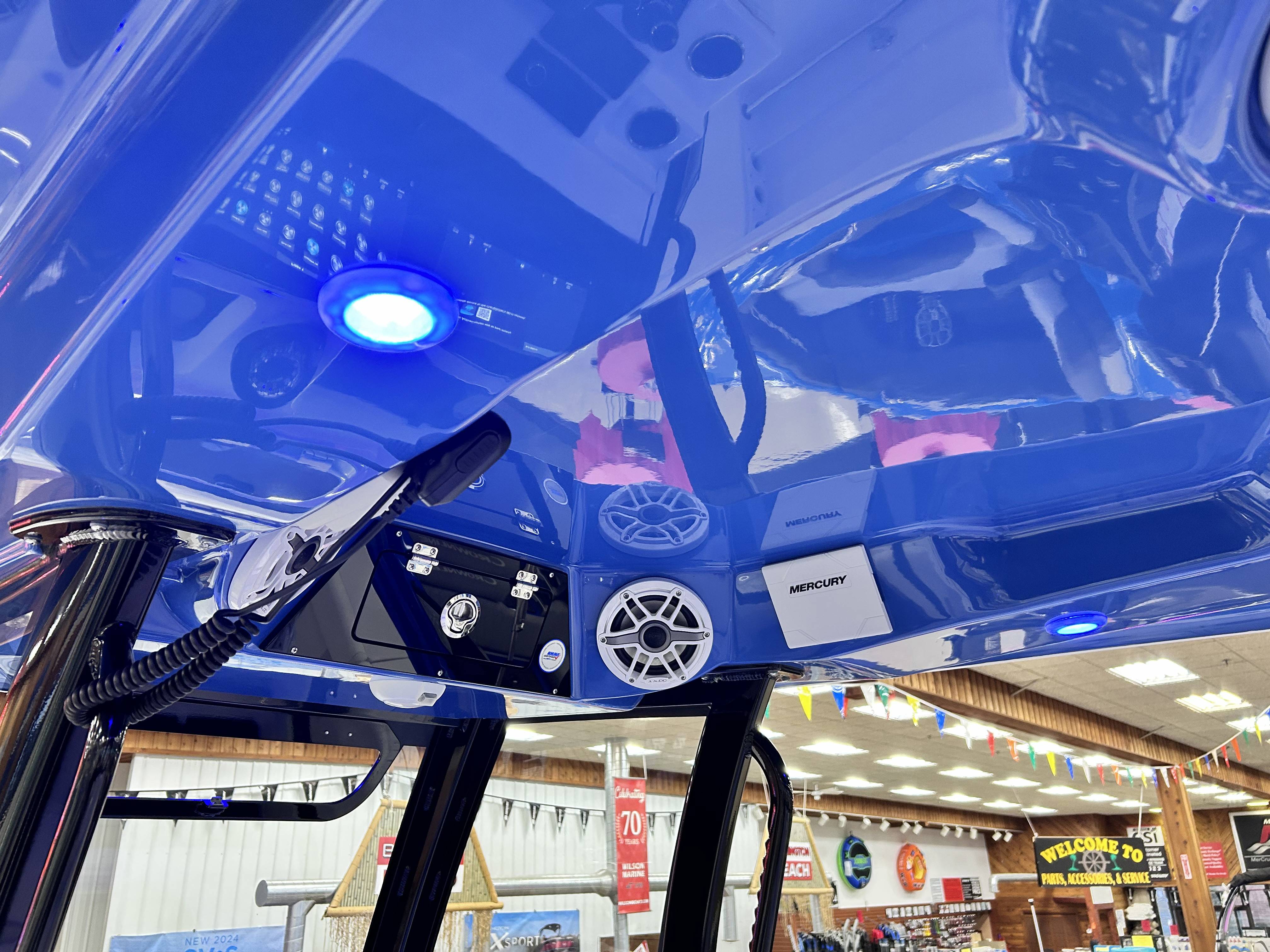 2025 Sportsman Open 282 powered by twin Mercury 300s!Factory Installed Options:Exterior- explorer blue hull sides with white bottomInterior- sileather polar whiteFiberglass console with liner and cooler seatFiberglass hard top with LED lightingExplorer blue hard top underside colorBlack powder coatingSundeck/table cushionFiberglass leaning post with tackle center & sink2 Garmin 16" GPS screens with built in WIFIGarmin GMR Fantom 18X RadomeFiberglass cockpit tableEdson 13SS comfort grip steering wheel with powere knobOn board battery charging system (4 bank)