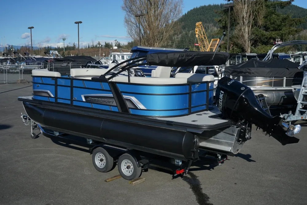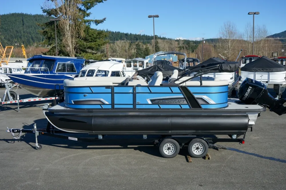 The Starcraft EXS Series Pontoon is the perfect choice for families who want a high-performance boating experience without the premium price tag. Built with standard HMX third tube performance tubes, the EXS series offers exceptional stability, enhanced maneuverability, and smooth handling, whether you're cruising or towing for watersports. The boat features sleek black exterior rails and a range of customizable color panel options, allowing you to personalize your pontoon’s look to suit your style. Additionally, the standard ski pylon makes it an ideal choice for families who enjoy waterskiing, wakeboarding, or tubing, offering a secure and convenient towing point. Combining functionality, style, and performance, the Starcraft EXS Series delivers an exceptional boating experience that fits within your budget.• Suzuki DF150ATX • High Back Helm Chair • 1500 Power Bimini • Lillipad Revo Black Ladder • Extended Deck • Full Front Gate • Seastar Hydraulic Steering • 40-Gallon Fuel Tank • Black Playpen Cover • Jensen Stereo • Ski Tow Pylon • Trailmaster TrailerMaster Marine Boat Center | To learn more about this listing, give us a CALL or TEXT at (360) 336-2176, email us at sales@mastermarine.com, or visit our website at mastermarine.com.