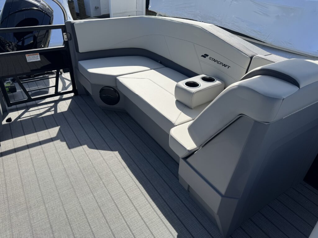 Starcraft’s new GX Series is here! This GX 22 R DH Sport blends sleek design with impressive functionality, offering an exhilarating experience on the water. Its roto-molded corners seamlessly complement the side panels, creating a sleek look that stands out. Perfect for family outings or fun with friends, this model delivers style, performance, and an upgraded luxury package, this boat is built for unforgettable adventures.