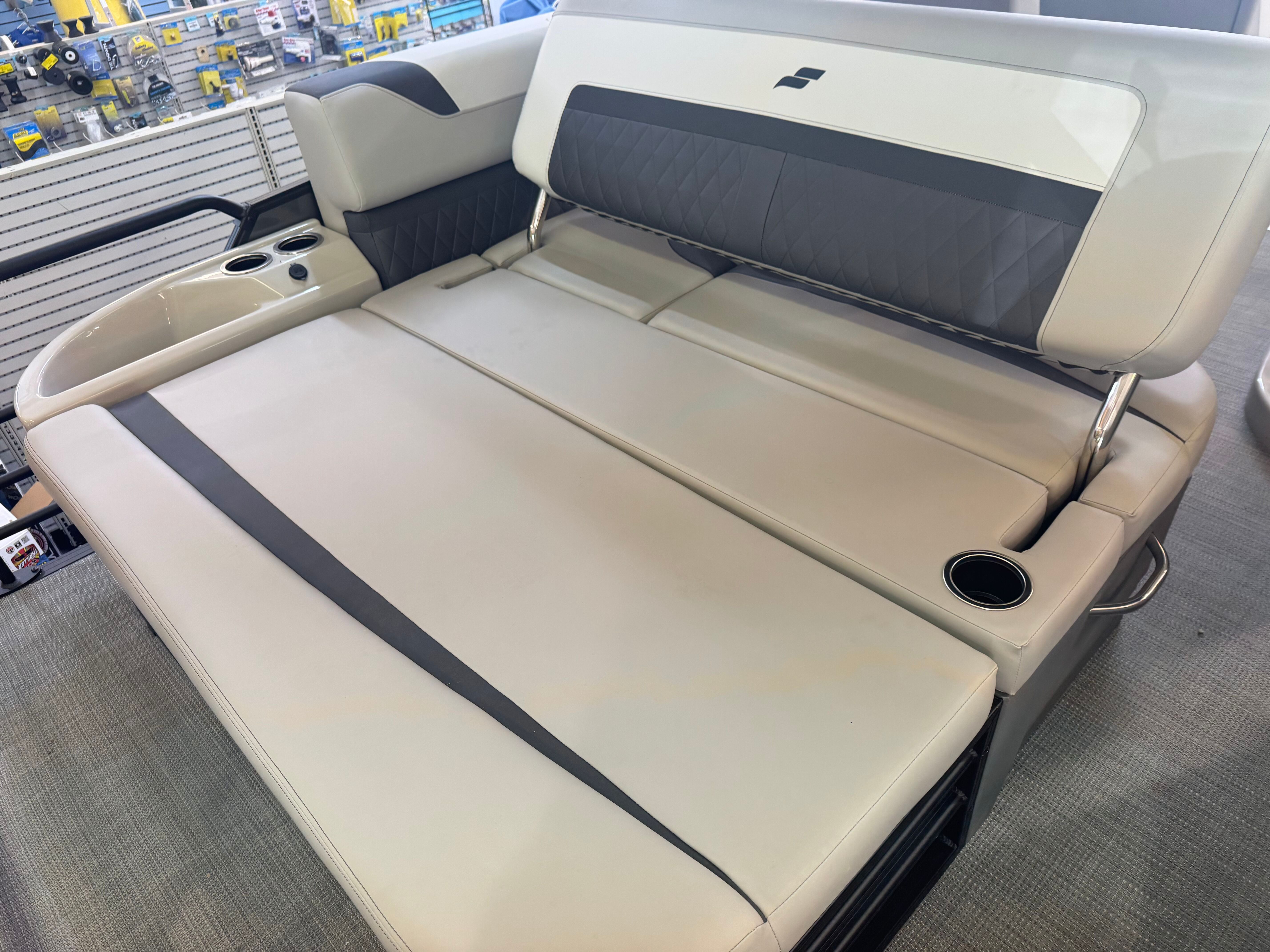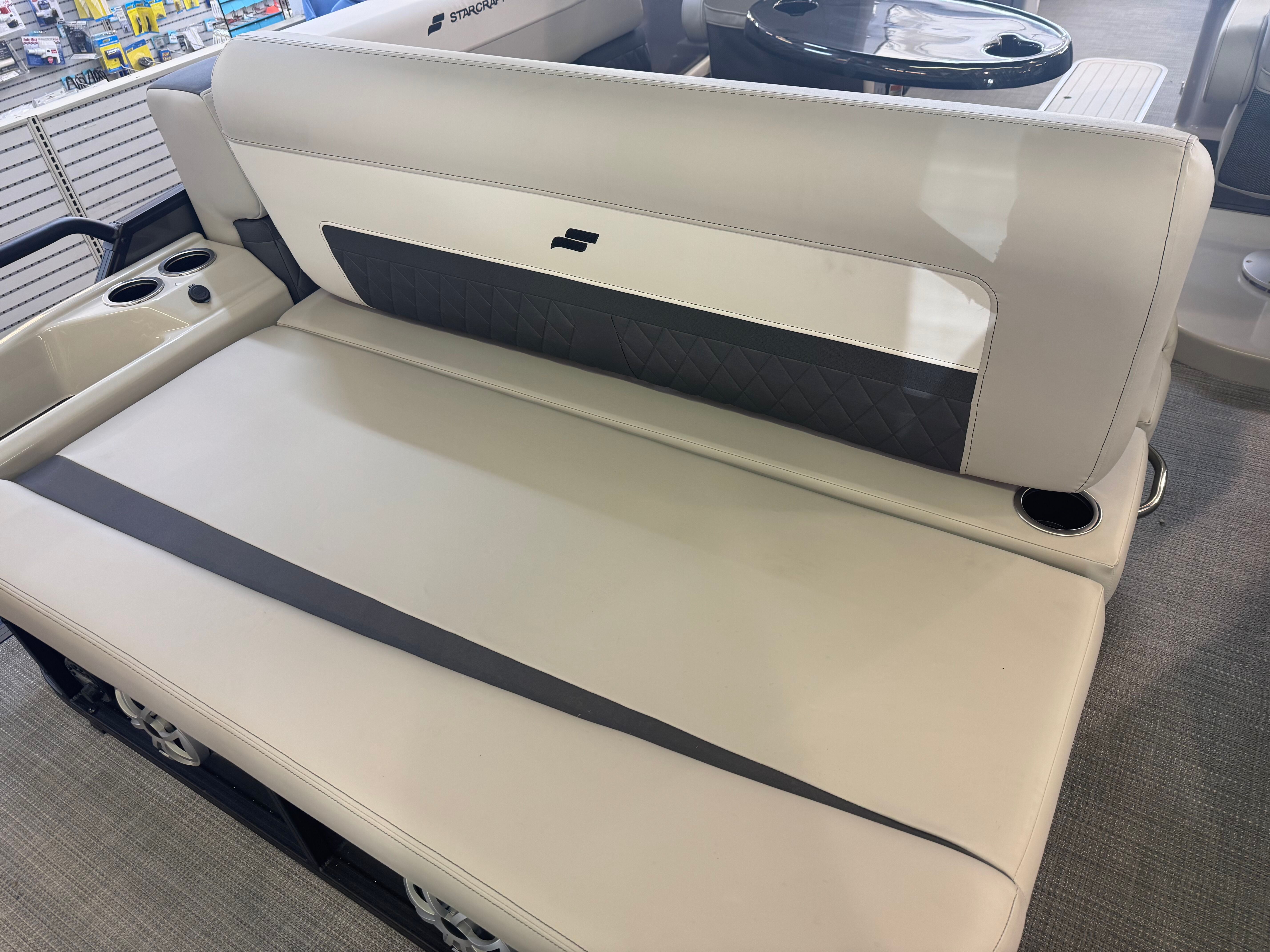 The Starcraft Pontoon SLS 3 Q DH, where "DH" stands for Dual Helm, is an exceptional choice for those who crave both performance and versatility on the water. Equipped with the HMX Third Tube Performance Package, this pontoon delivers enhanced stability and agility, ensuring an exhilarating ride with every outing. The standout feature is the convertible flip back lounge, allowing for effortless transitions between relaxation and active fun, accommodating both lounging and socializing. With its sleek dual helm design and thoughtfully crafted amenities, the SLS 3 Q DH promises a fantastic experience for families and friends alike, making every day on the water truly memorable.