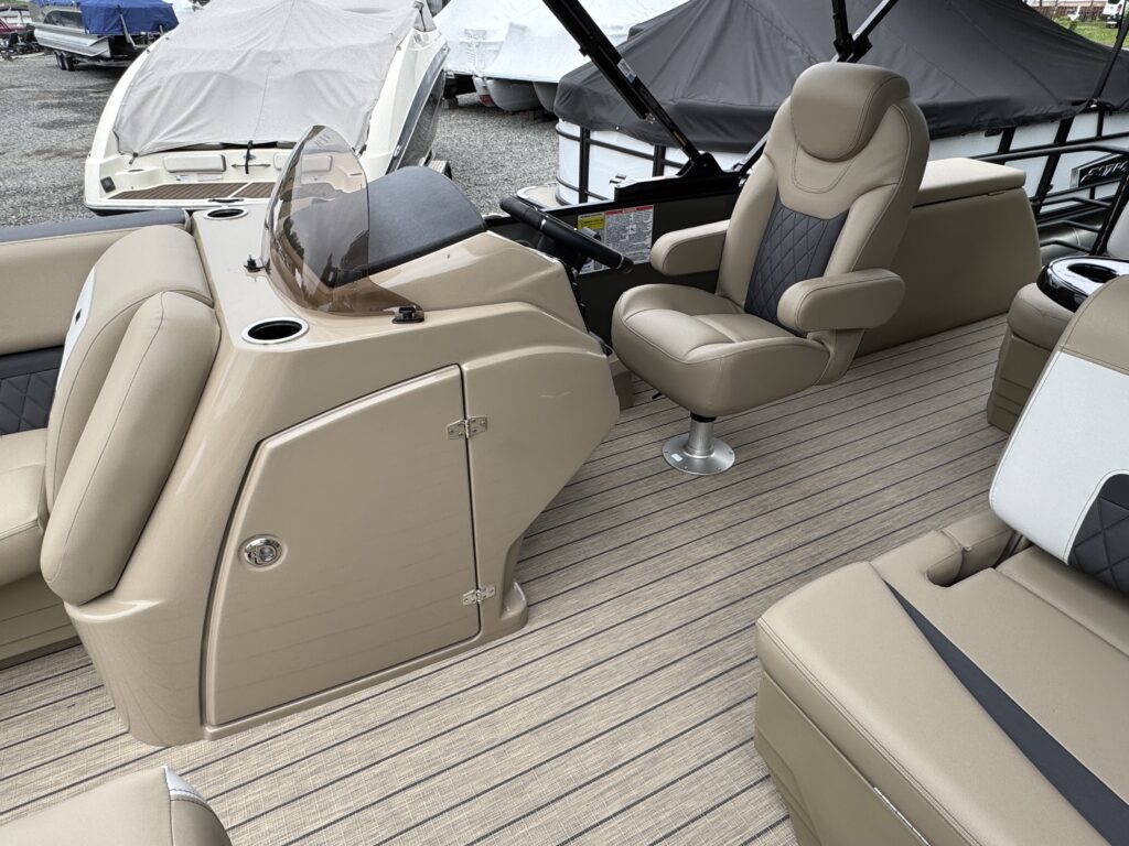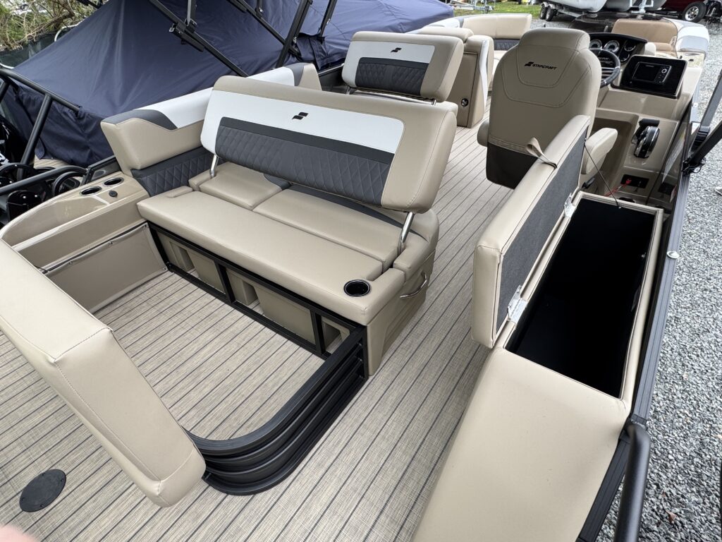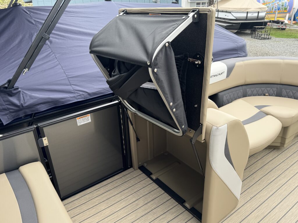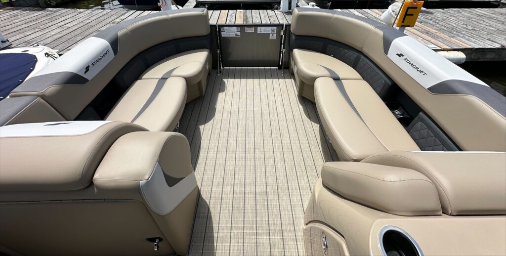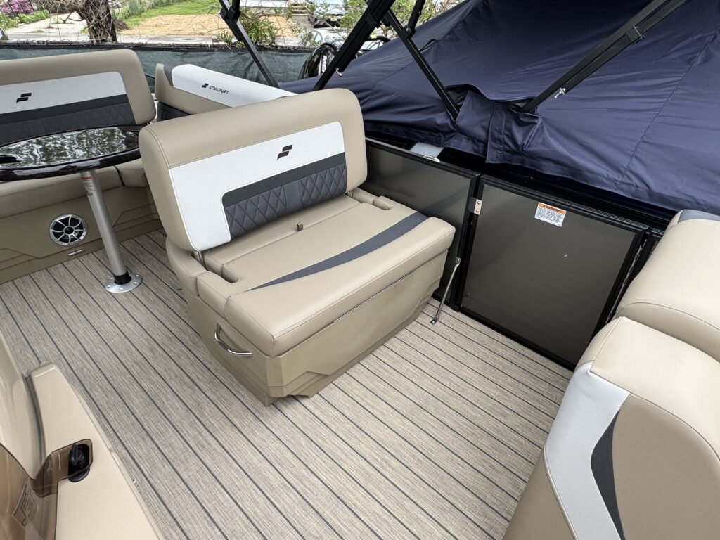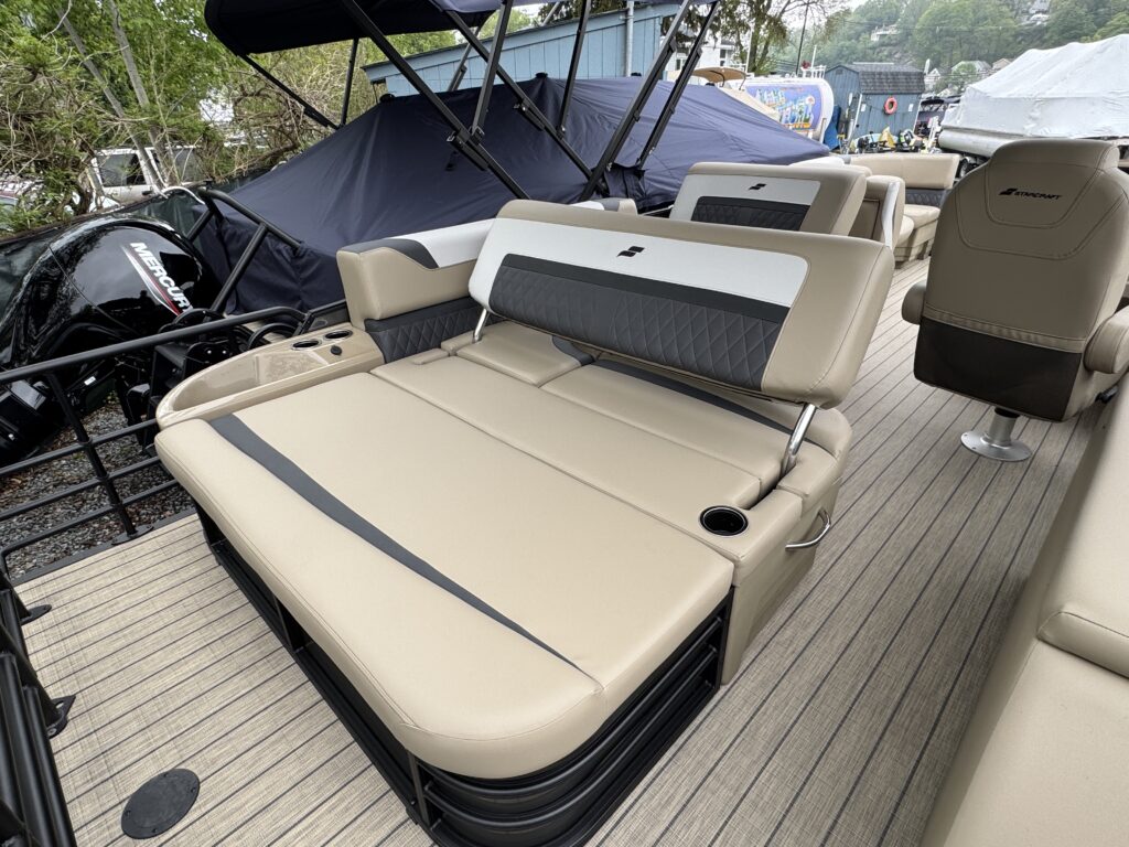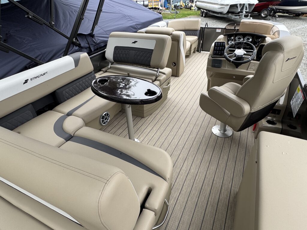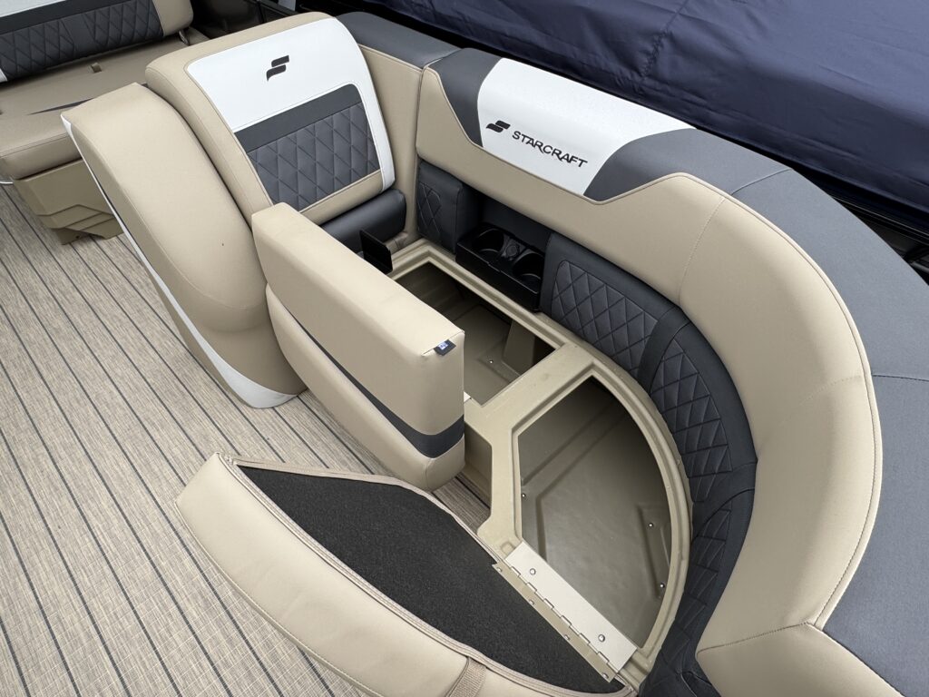 The Starcraft SLS 3 Q combines performance and versatility with its HMX Third Tube Performance Package for a smooth, stable ride. Its convertible flip-back lounge effortlessly transitions between relaxation and socializing, making it perfect for family and friends. Sleek and well-equipped, this pontoon promises memorable days on the water.