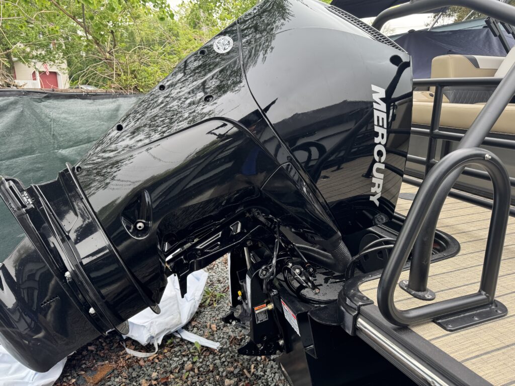 Suped up with exciting features including black power bimini top and matching playpen cover, full teak weave flooring in grey, extended deck, High Back helm chair in grey, power helm pedestal, power assist steering, Wet Sounds MC2 radio and sound system, GPS, mood lights, Lillipad REVO ladder with handles, and more!