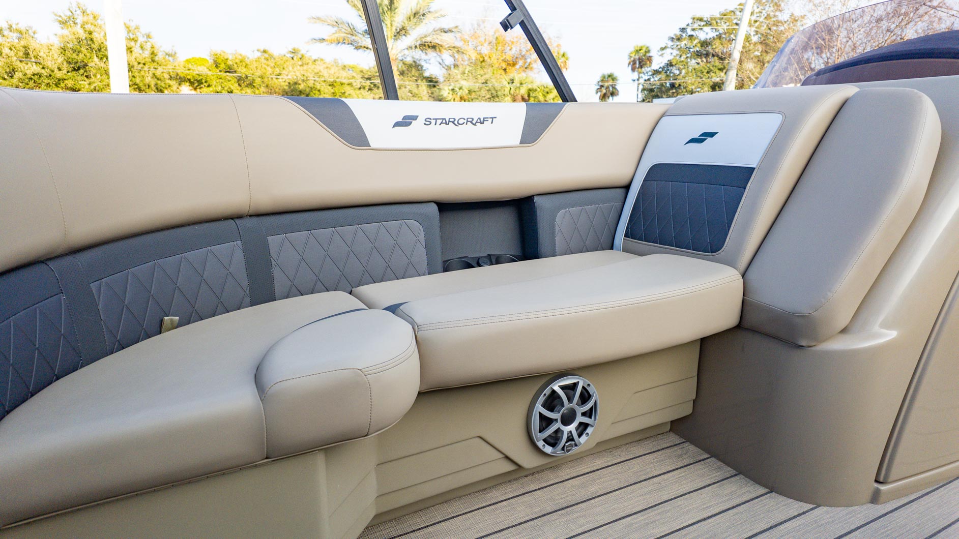 The Starcraft SLS3 Q Tritoon, available at Bluewater Marine in Port Orange, is a luxury performance machine designed to elevate your time on the water. This 3-tube tritoon offers a perfect blend of style, speed, and comfort, whether you're seeking an adrenaline rush, entertaining guests, or simply relaxing in the sun. The boat's triple-pontoon design ensures a smooth, stable ride even on choppy water, while its luxurious quad-lounge seating and modern console layout provide a spacious and comfortable feel from the moment you step aboard.