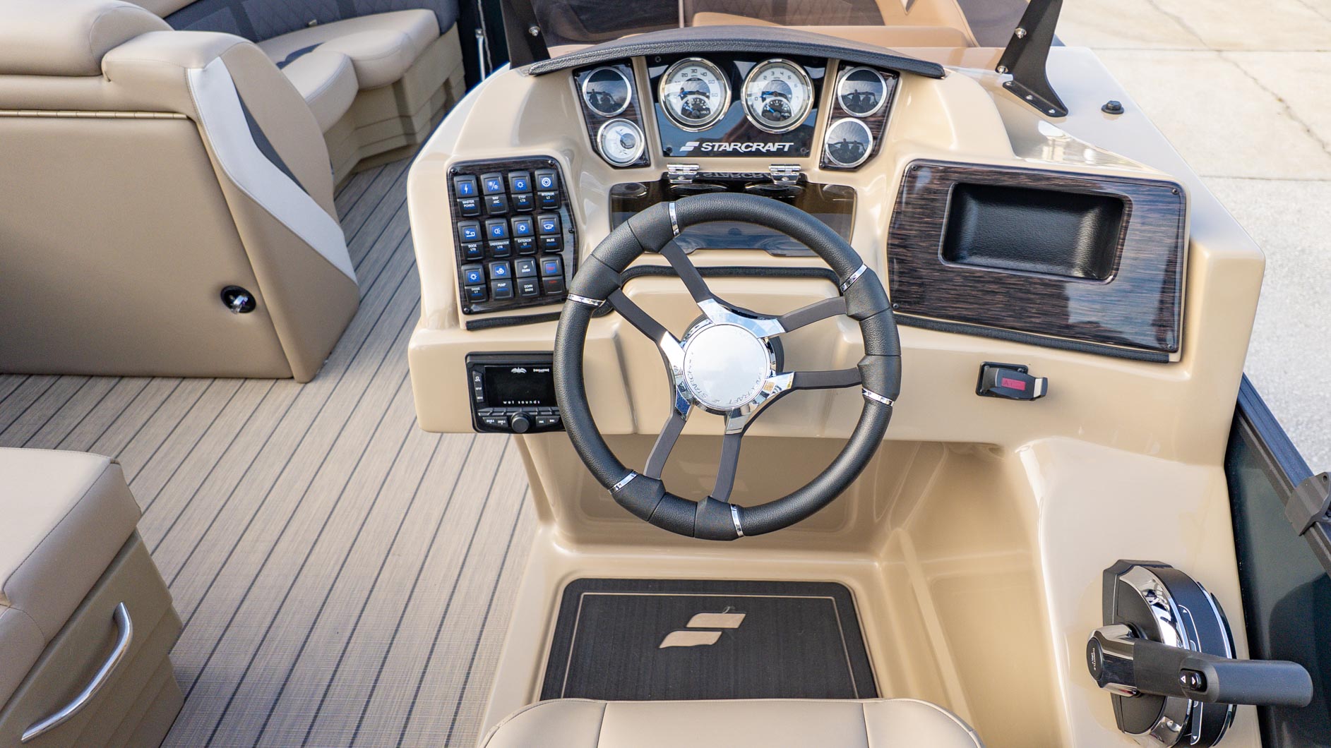Equipped with a powerful Mercury 250XL V8 outboard and a performance package featuring a full aluminum underskin and hydraulic steering, the Starcraft SLS3 Q delivers confident cruising and agile handling. This makes it perfect for towing tubes or simply enjoying a smooth ride down the Intracoastal.