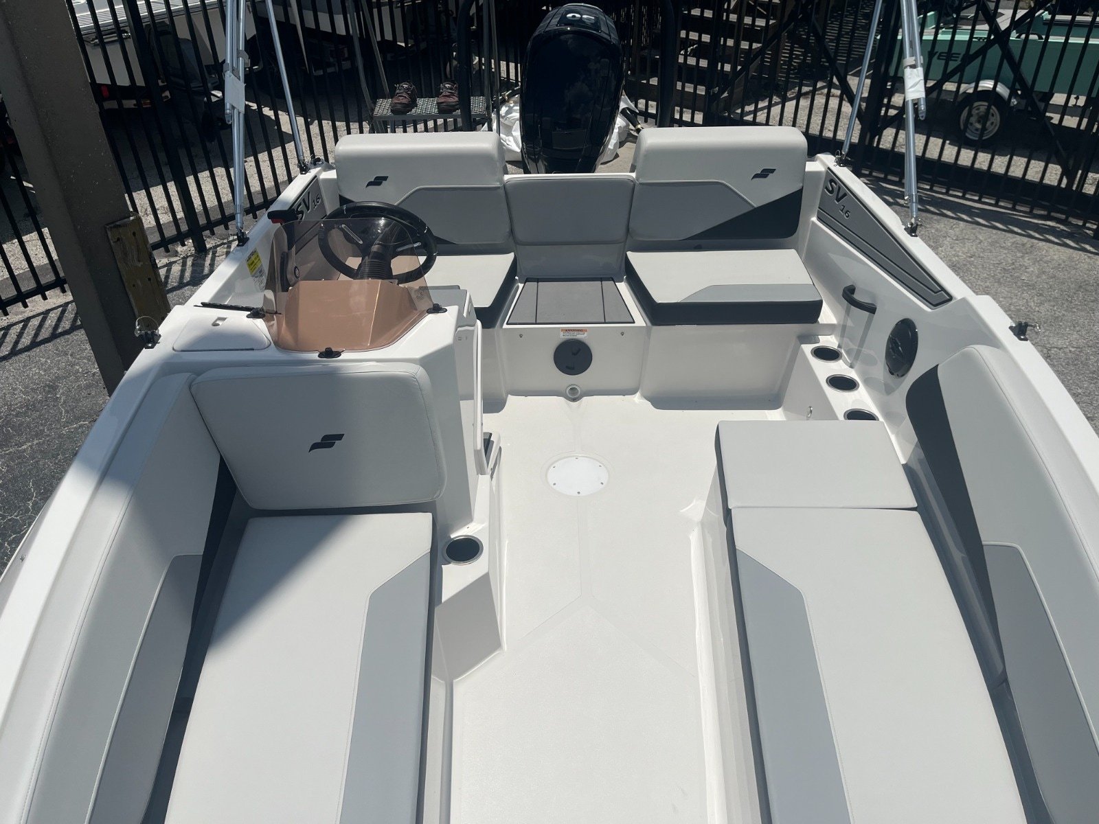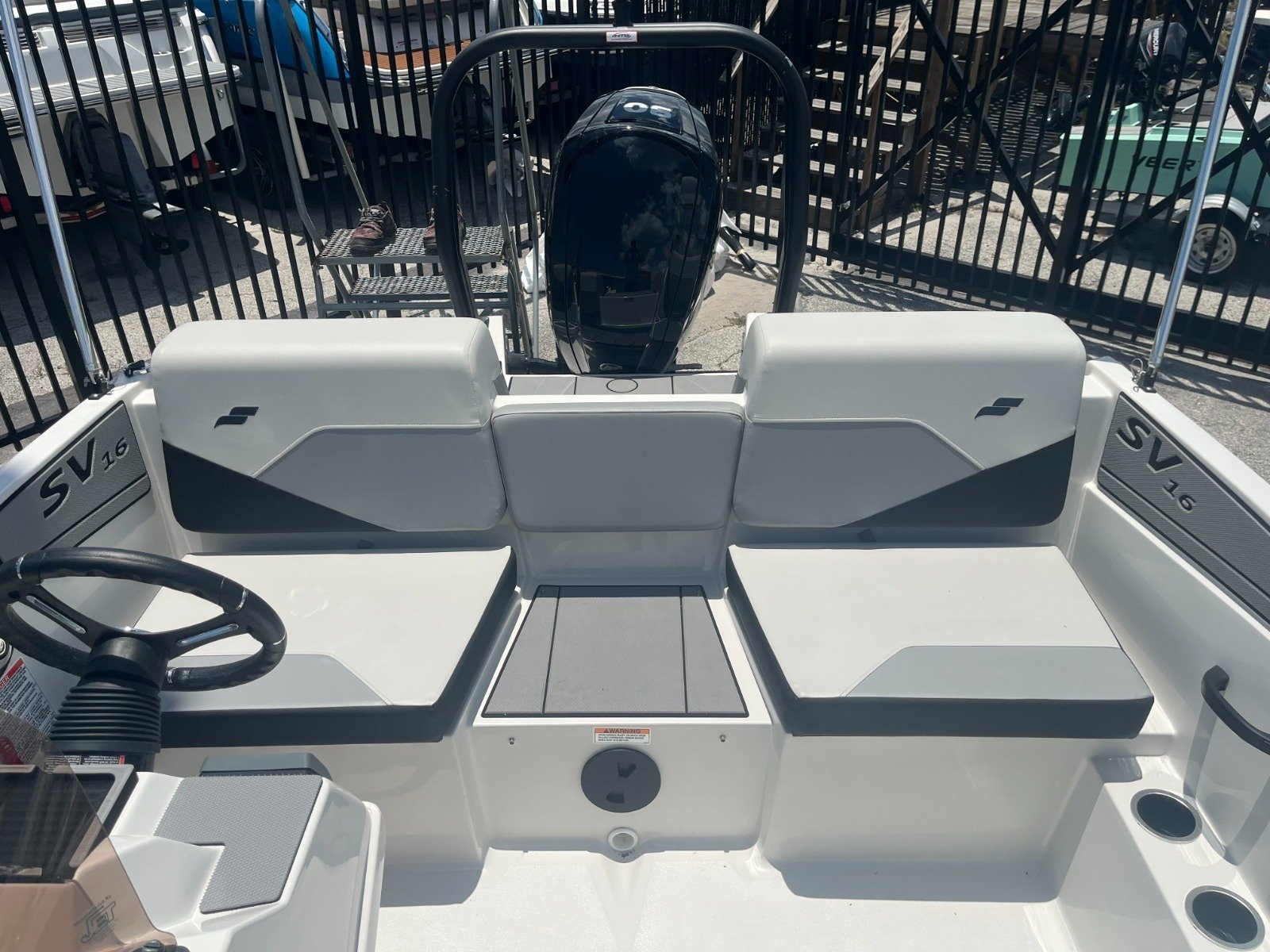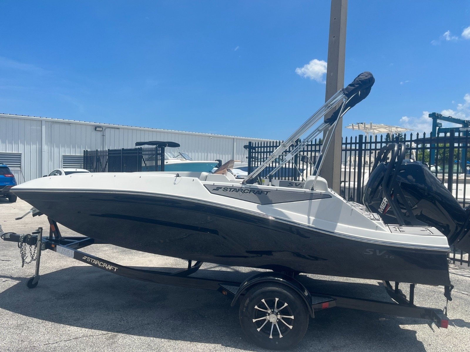 The Starcraft SV16 OB is a family-friendly deck boat that combines comfort, amenities, and affordability. It features a modified V-hull design, and a bi-level swim platform with a retractable boarding ladder. The boat is equipped with a Wet Sounds MC5 stereo and offers a comfortable ride with ample interior space. Powered by a Mercury 90 HP with insanely low hours, this boat is equipped to have all family and friends on the water hours of fun in the sun!