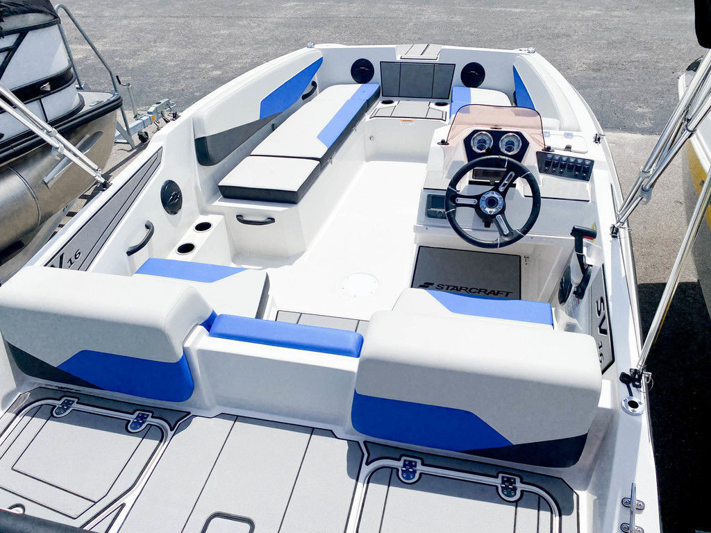 Introducing the new Starcraft SV 16 OB Deckboat—a perfect blend of affordability and family-friendly features. Designed to provide maximum enjoyment without breaking the bank, this boat runs smoothly with limited horsepower, making it an accessible choice for all boating enthusiasts. The SV 16 OB comes equipped with premium Wet Sounds MC5 stereo for crystal-clear sound, along with comfortable bow and stern platform mats for added convenience. For those seeking a bit more versatility, optional bow rails and ski tow are available to enhance your on-water adventures. Experience the ideal combination of value and performance with the Starcraft SV 16 OB Deckboat, where every outing becomes a memorable journey.