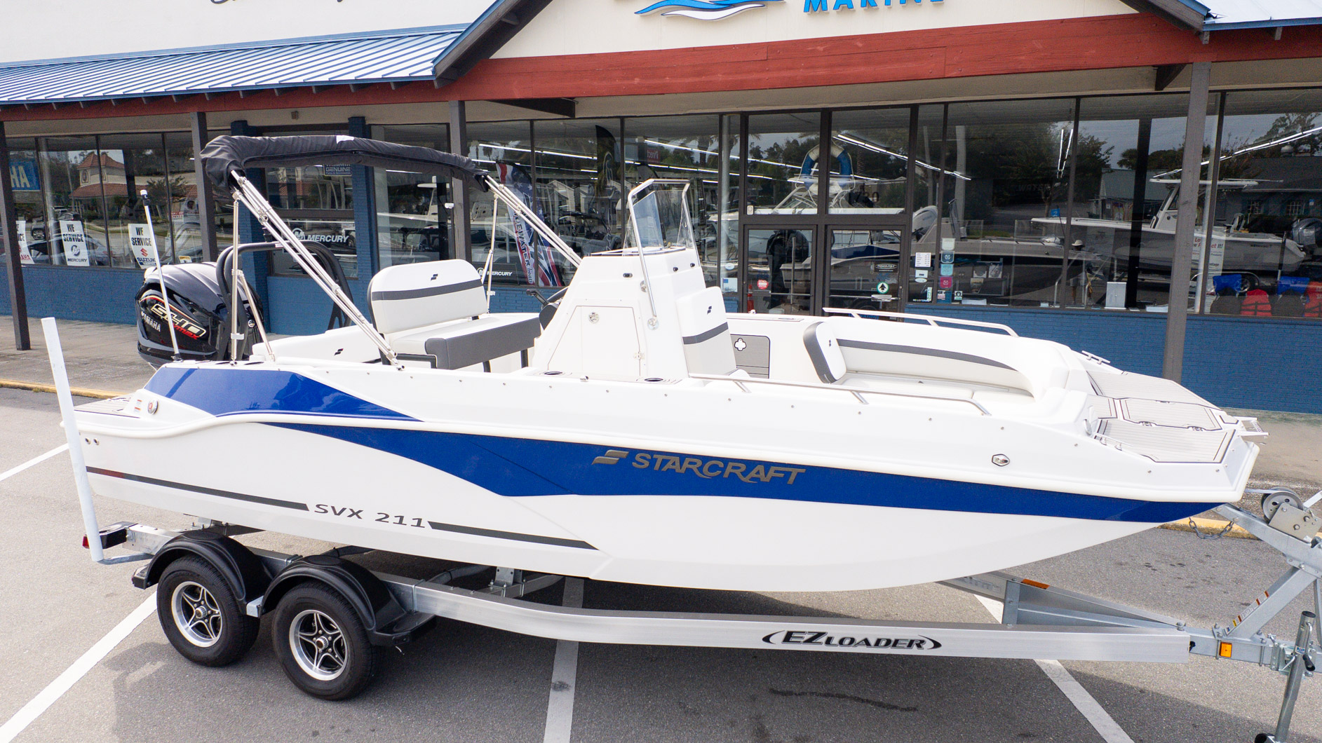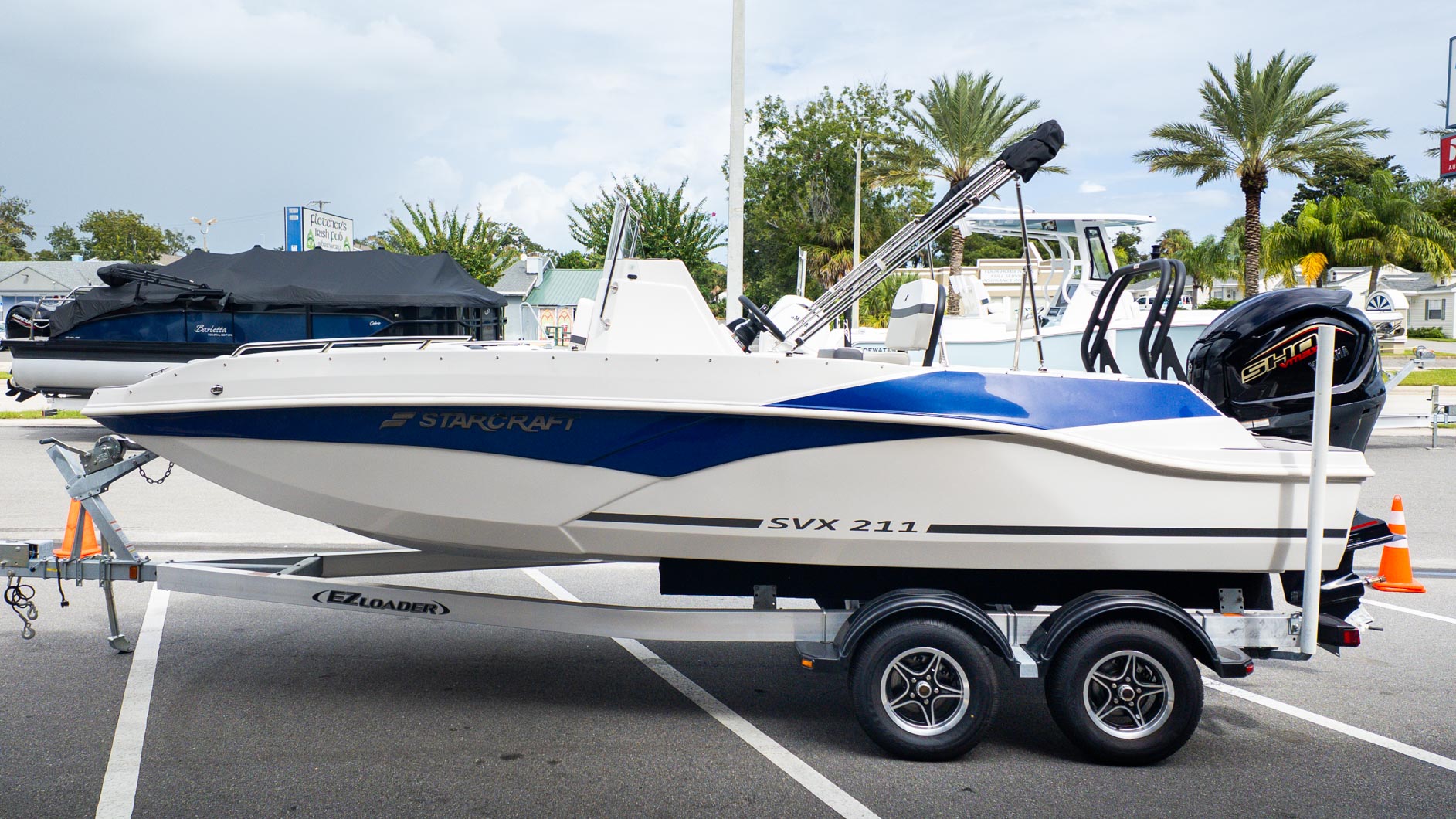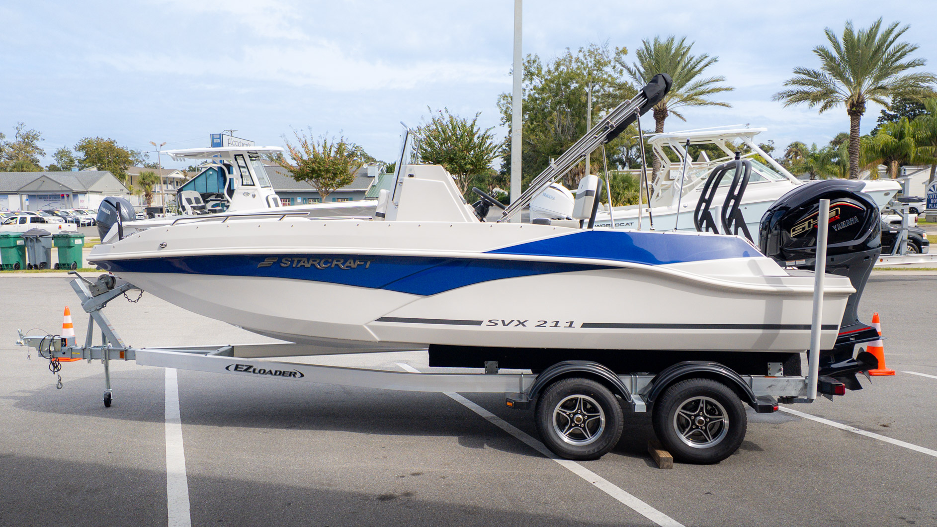 This vessel is designed for both thrilling and comfortable rides, powered by a reliable Yamaha outboard that delivers smooth acceleration and dependable performance. The durable stainless-steel hardware and full-length swim platforms add to its quality and functionality, providing easy access to and from the water. Whether you're pushing off from Daytona Beach or anchoring in New Smyrna, the Starcraft SVX211 provides the space, reliability, and style to make your time on the water unforgettable.