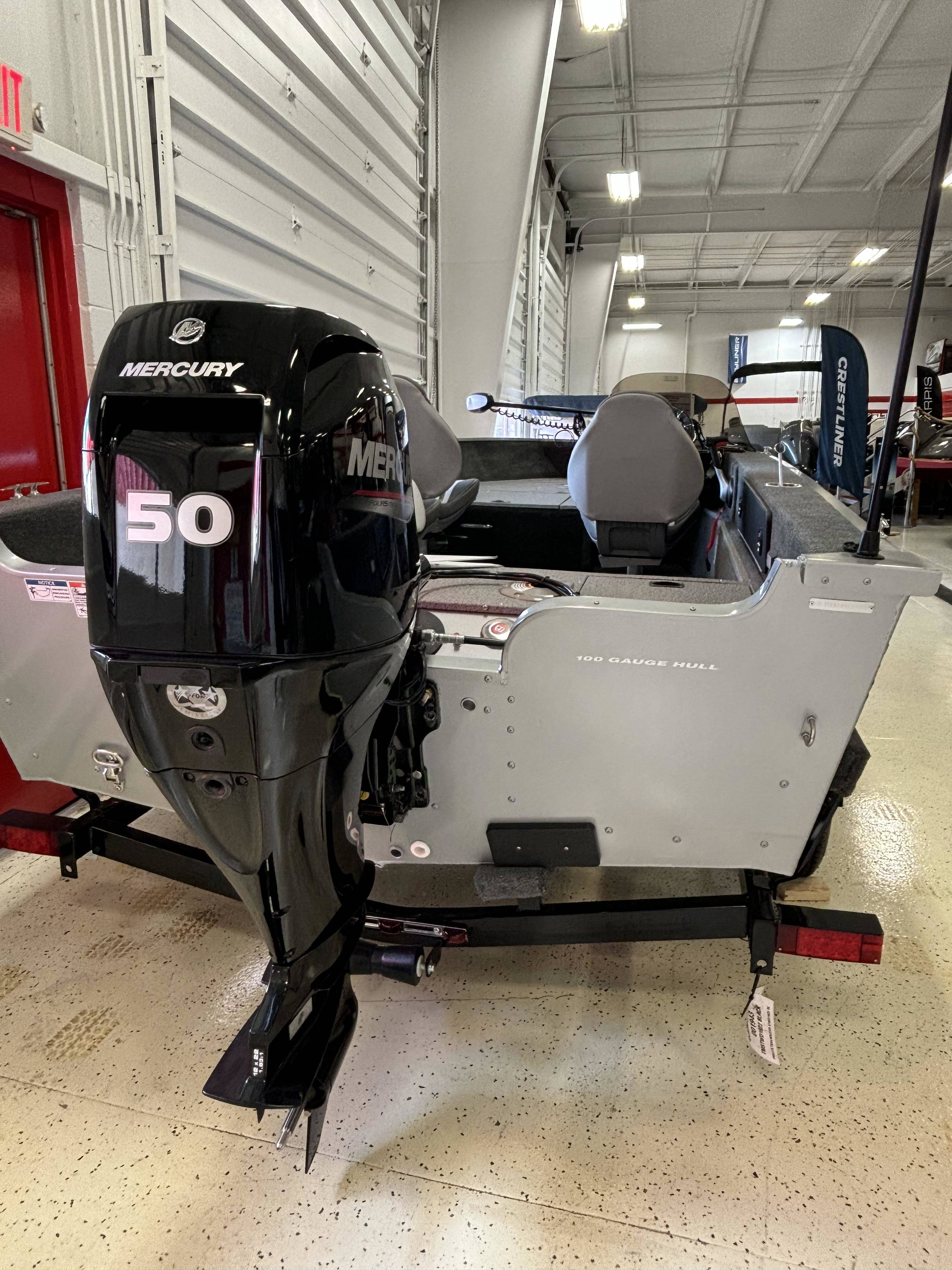 2025 Starweld 16 Fusion SC powered by a Mercury 50ELPT 4S EFI! Trailer included.Factory Installed Options:Exterior- silver metallic with matte black accentsPD55 DSC/FP 54" trolling motor and bracketTrailerable ratchet cover2 bank DC direct battery charger36" cargo netsSpare tire