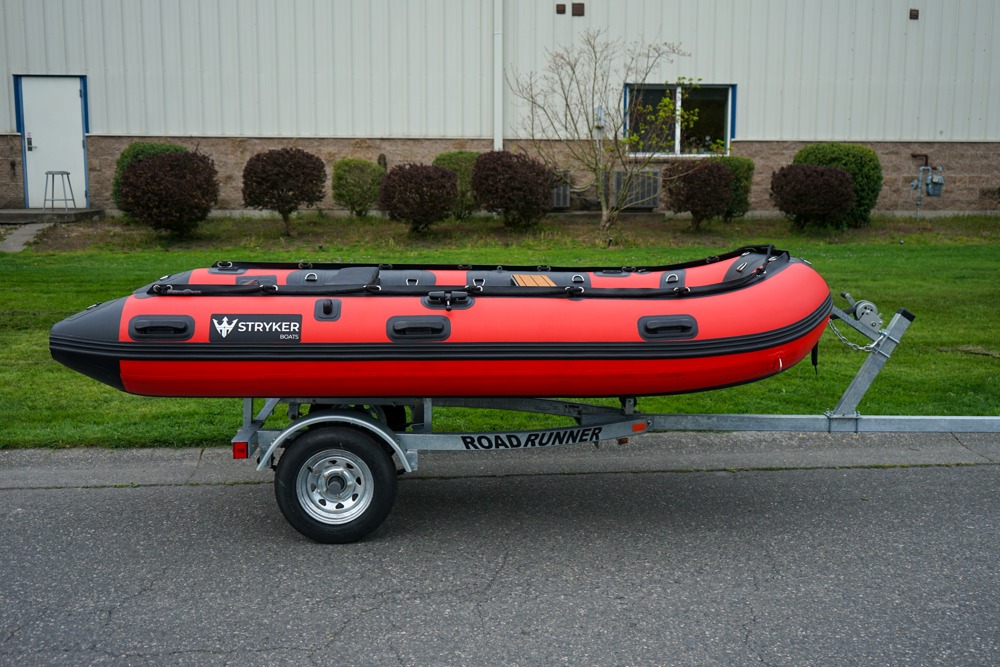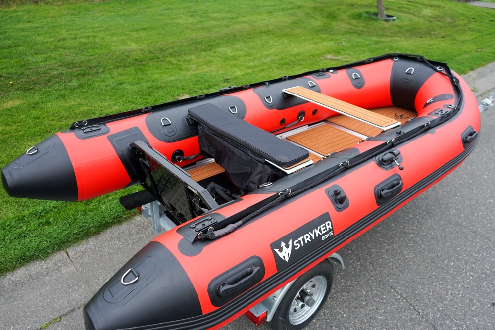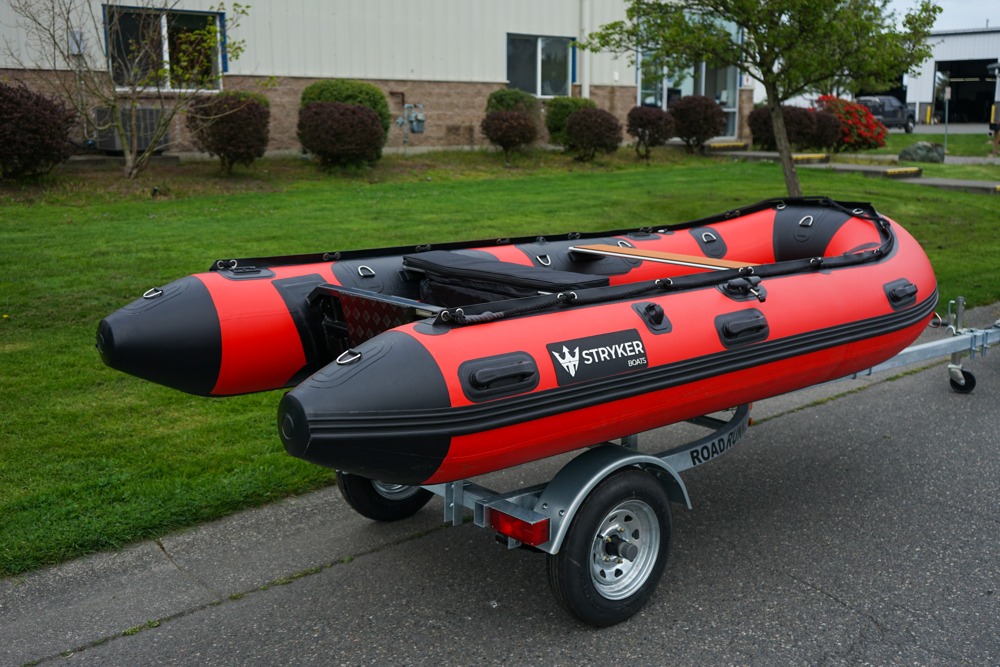 Stryker LX 360 – Adventure-Ready Inflatable with Rugged Versatility The Stryker LX 360 is a mid-sized soft-bottom inflatable designed for anglers, explorers, and weekend warriors alike. With ample space, premium materials, and a tough build, it strikes the perfect balance between portability and performance on the water. With a maximum load capacity of 1,803 lbs, it’s ready for gear, crew, and adventure, wherever the journey takes you.BOAT ONLY - $3,888MERC 2.5HP - $965MERC 3.5HP - $1,125YAMAHA 4HP - $1,405Can Be Purchased Separately. Key Features:German Mehler PVC + Thermo-Welded SeamsMade from high-grade German Mehler fabric and assembled using thermo-welded seams, ensuring superior durability.Stryker Shield® Hull ProtectionA full-length 8″ wide protection strip runs beneath the tubes and keel, reinforcing high-wear areas for added confidence during launches, landings, and beaching.One-Piece Welded Aluminum TransomCrafted from a single piece of marine-grade aluminum, this transom is wood-free and reinforced for optimal strength, compatible with short shaft outboards or electric motors.5 Pre-Installed Scotty® BasesEquipped with five factory-installed Scotty® bases, allowing instant setup for 30+ accessories including rod holders, downriggers, or navigation gear.Reinforced Fiberglass Bow BoardA solid fiberglass bow board adds durable structure to the front of the boat, providing superior strength and longevity, durable and long-lasting.Aluminum or Air Floor OptionsChoose between a heavy-duty interlocking aluminum floor for maximum rigidity or a high-pressure air floor for lightweight convenience and fast setup.Stryker Boats 5 year manufacturer warranty.SIZEOverall Length: 360cm or 11′ 7″Inside Length: 240cm or 7′ 9″Overall Width: 172cm or 5′ 6″Inside Width: 80cm or 2′ 6″Shipping Weight: Air Floor 168 lbs, Aluminum Floor 203 lbsTube Diameter: 46 cm or 1′ 5″# of Air Chambers: 4PVC Thickness: 1.2mm & .9mmDimensions of Boat in Bag: 53 x 29 x 19″Dimensions of Aluminum Floor in Bag: 46 x 28 x 6″CAPACITYMax Load: 818kg or 1803lbsMax # people: 7Max Motor: 25 HPMax Motor Weight: 104kg or 229lbsTransom Height: 15″Max Tube Pressure: 3.6 psiIncludedFoot PumpRepair Kit2 x Aluminum Bench SeatBoat BagFloor bag (for aluminum floor models only)Aluminum Oars Master Marine Boat Center | To learn more about this listing, give us a CALL or TEXT at (360) 336-2176, email us at sales@mastermarine.com, or visit our website at mastermarine.com.