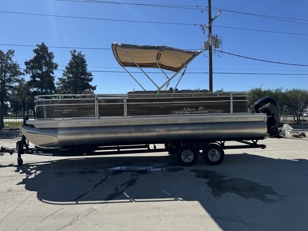 The SPORTFISH™ 24 XP3 comes standard with a 150hp Mercury® L FourStroke outboard motor and has a recommended maximum 250hp rating.