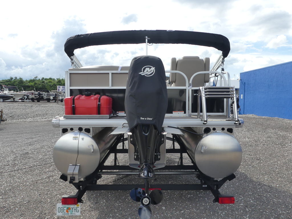 The PARTY BARGE® 16 DLX comes standard with a 20hp Mercury® ELPT FourStroke outboard motor and has a recommended maximum 50hp rating.