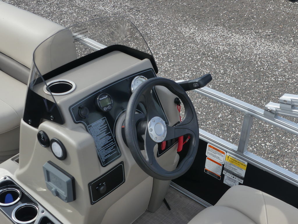 The most compact pontoon boat in the SUN TRACKER® family makes towing a breeze. Its deck has plenty of room for a crew of 7 friends and family. Let them kick back on the 3 luxurious corner lounges while the pilot sits at the helm in the swiveling captain’s chair. Each seat is wrapped in luxurious and durable vinyl. The wraparound fence sports a port wheelchair-accessible gate. You’ll also find gates at the fore and rear boarding platforms.