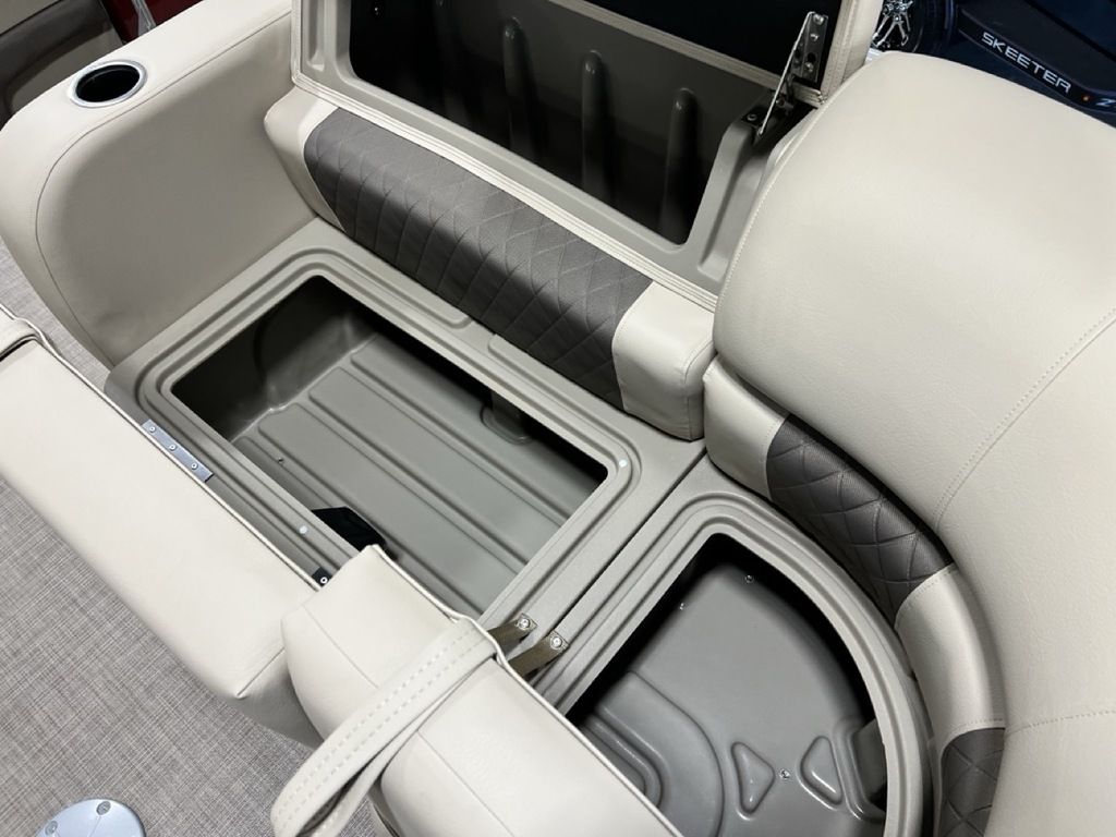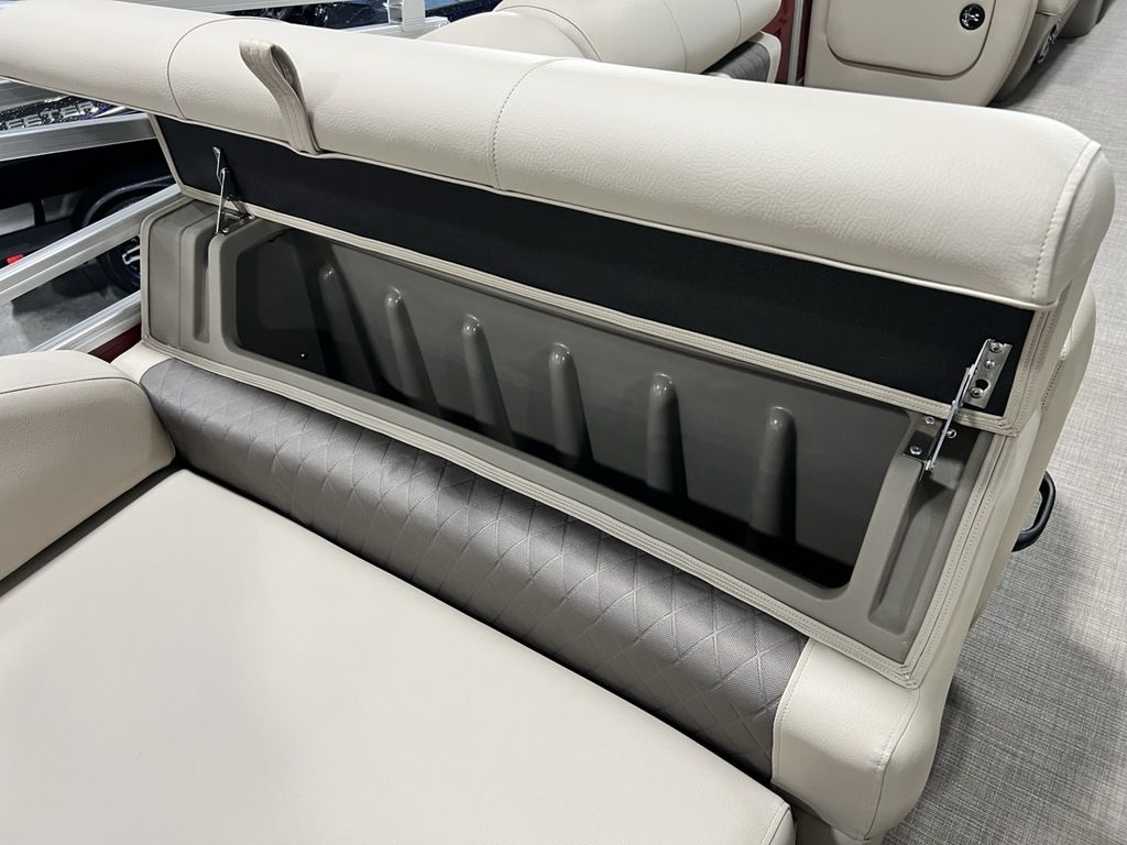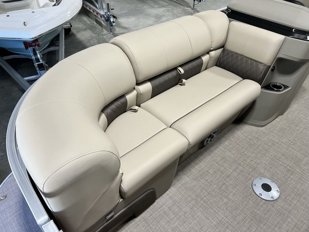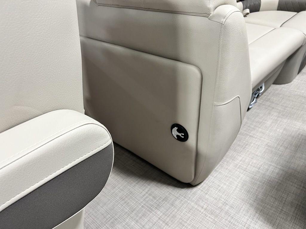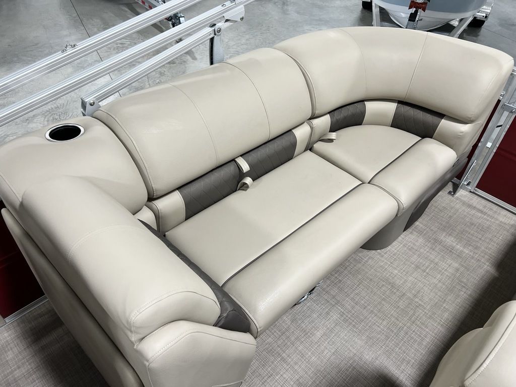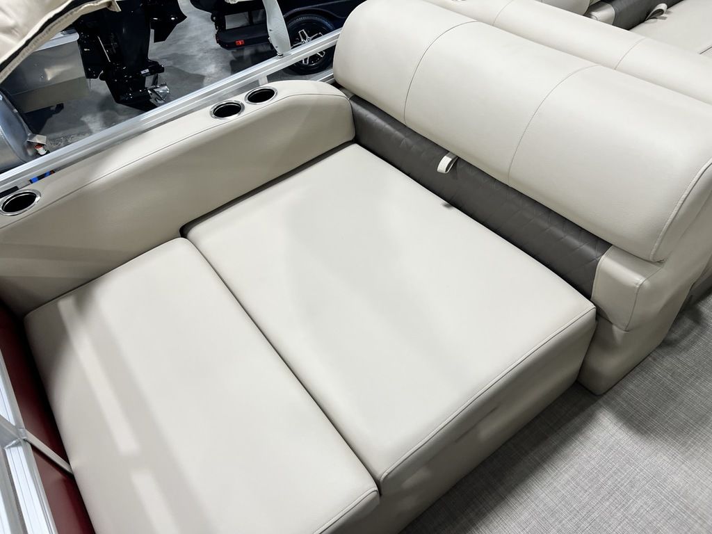 2025 Sun Tracker Party Barge® 22 RF DLXThe “RF” in its name stands for “rear facing,” which means the PARTY BARGE® 22 RF DLX replaces the aft port couch with a double-wide, rear-facing lounge—the perfect spot for relaxing with close friends and family members. This boat offers so much more than just that super-comfortable, perfectly-positioned lounging spot, though! There are three other couches throughout, all with the STOW MORE™ seat storage system, which combines underseat and seat-back compartments to provide huge amounts of space. It also offers a new stereo, new 10' SUN TRACKER® QuickLift™ bimini top, cooler storage, and a rear-boarding swim platform with a NEW 4-step telescoping ladder and grab rails.