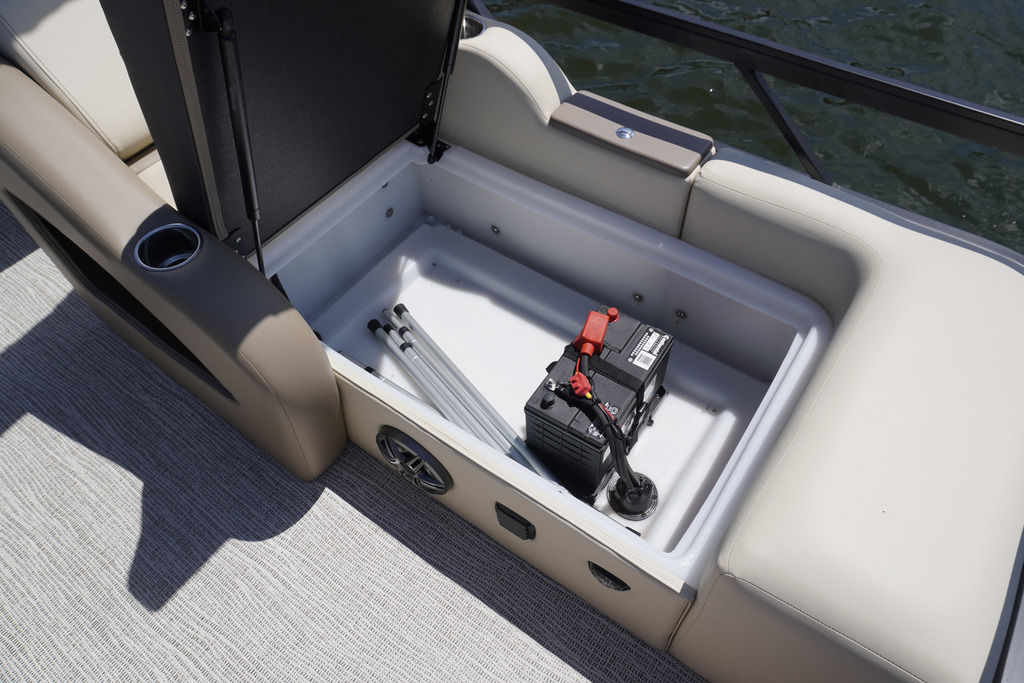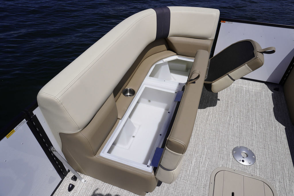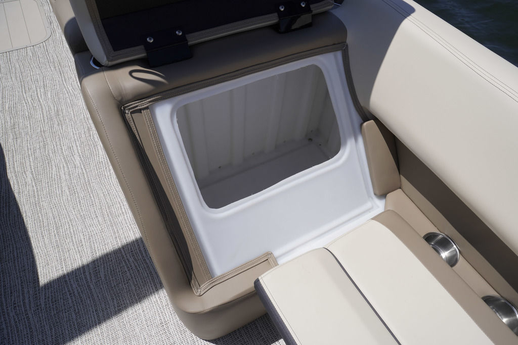 Built-in cooler under starboard bow corner cushion