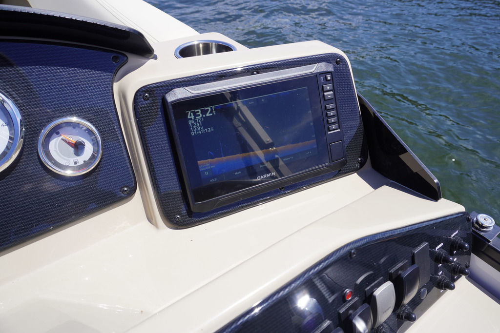 Console with speedometer, tachometer, trim, and fuel gauge