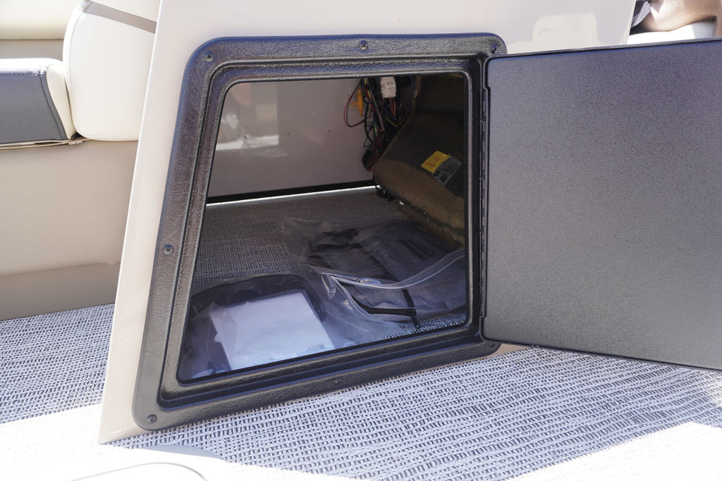 Built-in cooler under starboard bow corner cushion