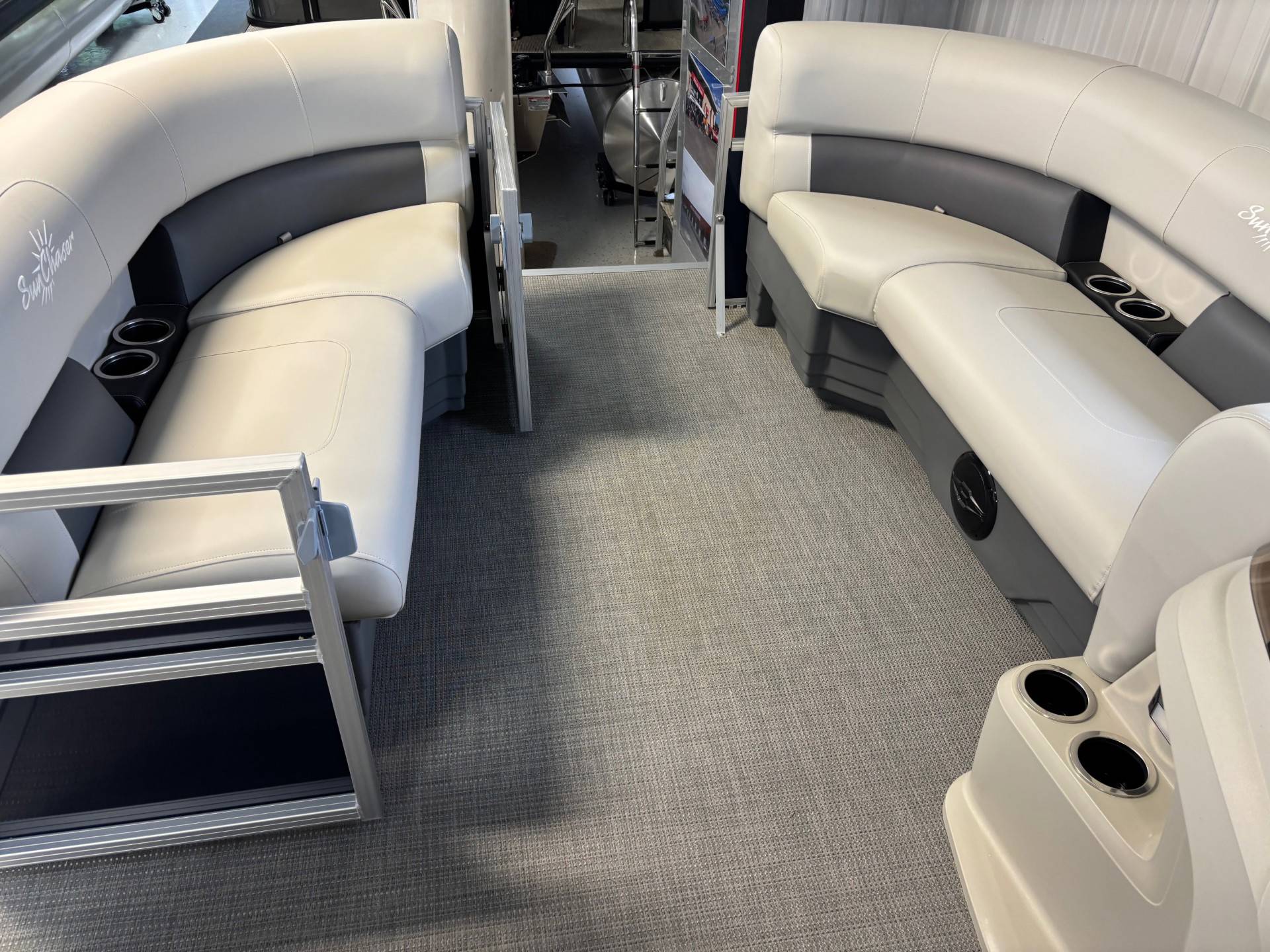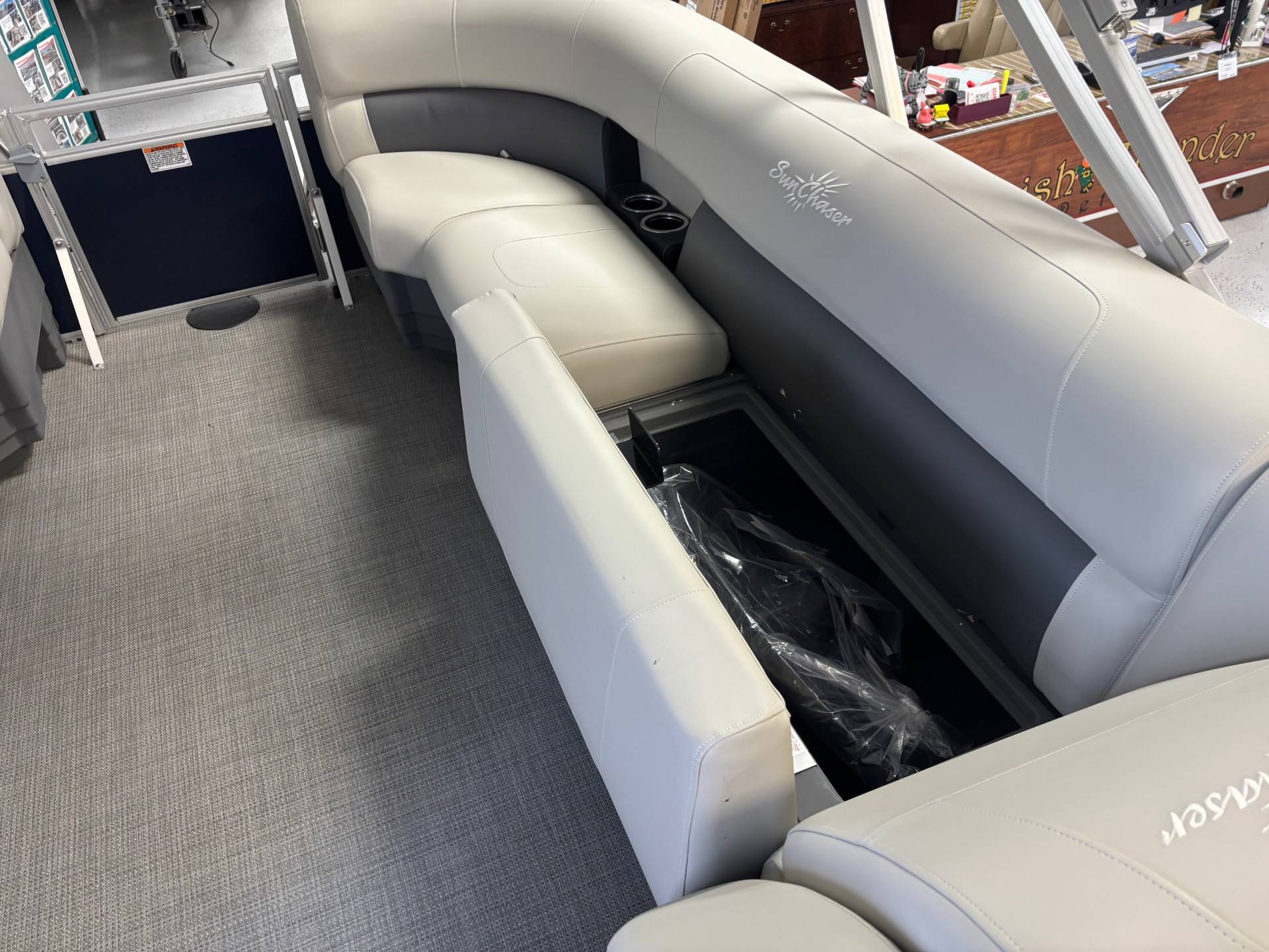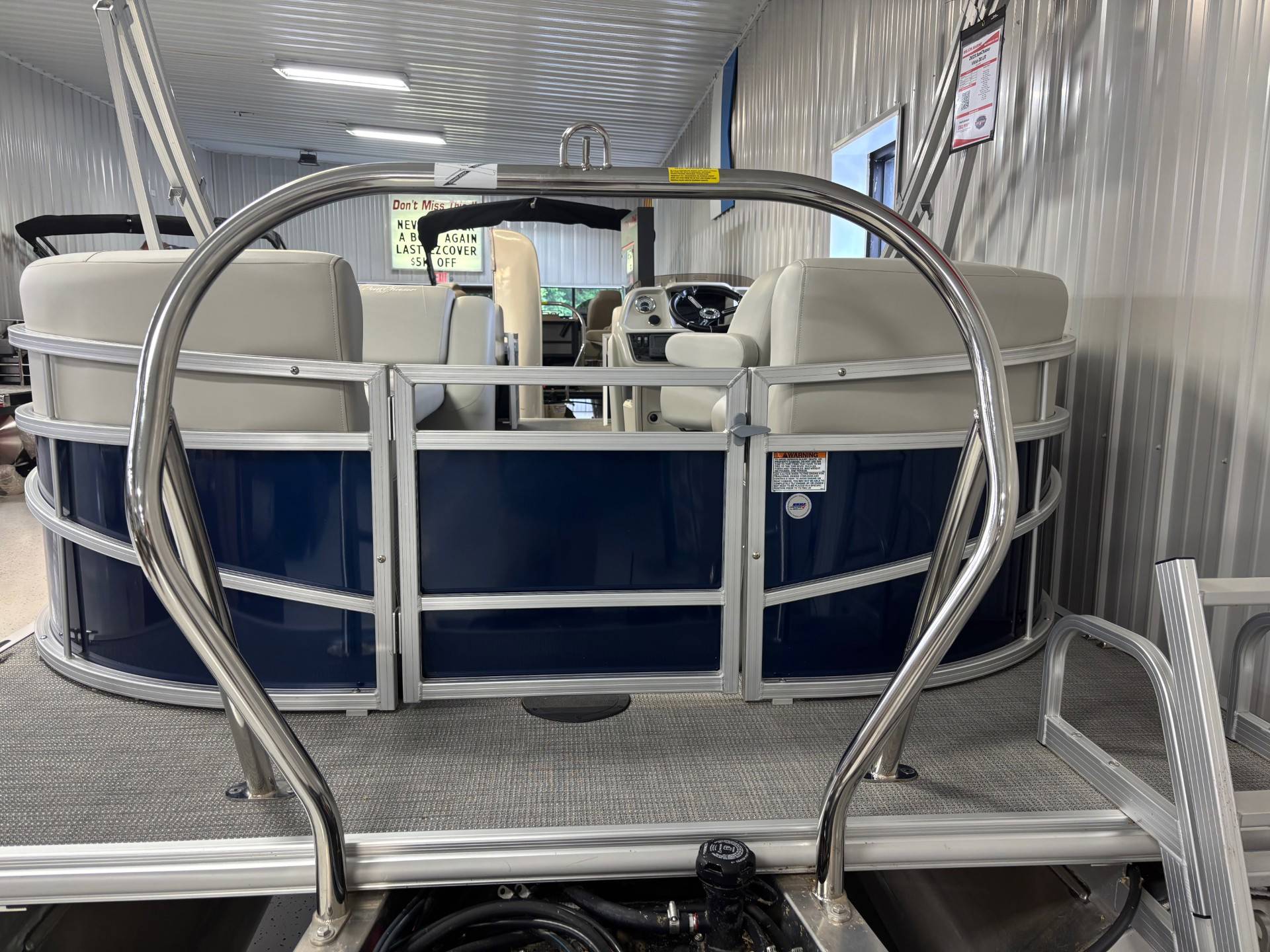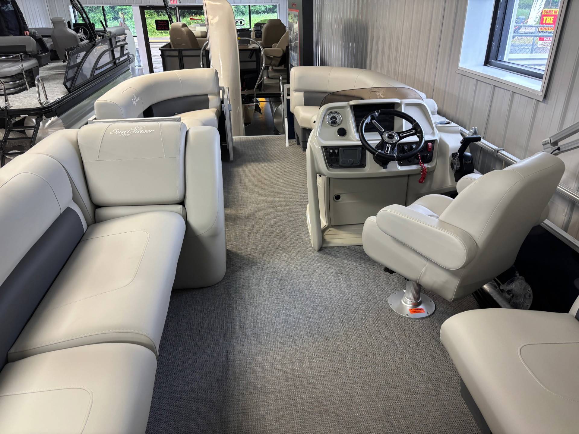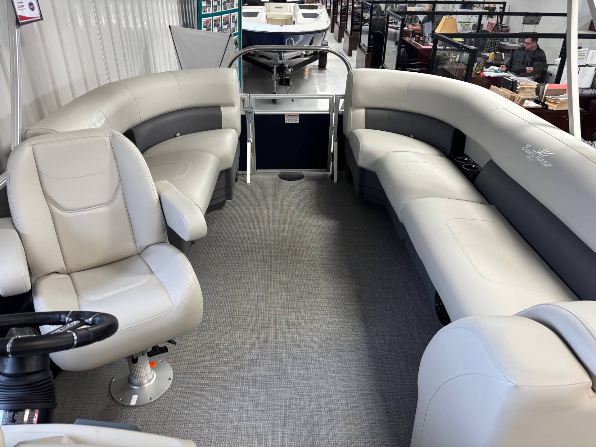 2025 SunChaser Vista 20 LR powered by a Yamaha F90LB EngineFactory Installed Options:Exterior- blueInterior- grayTube upgradeWindscreenSea weave gray flooringFull front gateLow back helm seatTilt steeringBlue bimini topBlue playpen coverWet sounds MC5 radioTransom mount ski towSelva steering wheel5 step aluminum ladderGray table kit