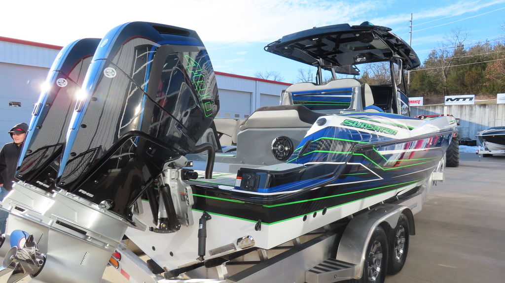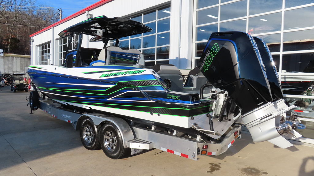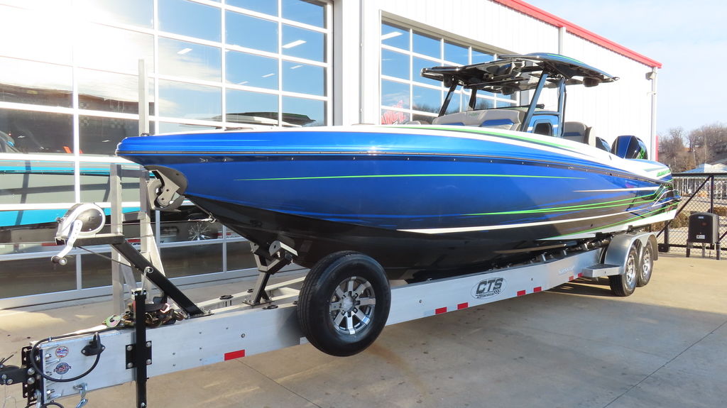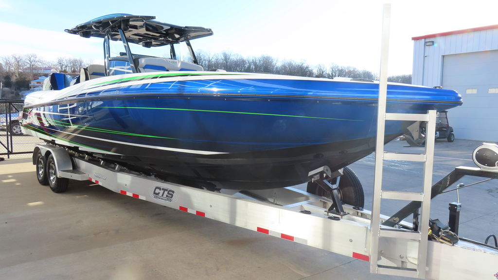 2025 Sunsation 32CCX powered by twin Mercury Racing 400R V10s with only 10 hours. LOADED!!, Dual Garmin 8616 GPS, 9" Simrad, Bow Garmin control, stage 3 Fusion/JL Audio stereo, LED trim tab indicators, Isotta steering wheel with tilt, Hydro foam flooring, Upgraded Interior with Alcantara accents, Sionyx Night vision, underwater LED lights, Full blackout package, Cabin A/C with dash blowers, LED Light bar, windlass anchor, Chill plate in cooler, factory two piece full covers including TTop cover. CTS TRAILER INCLUDED!