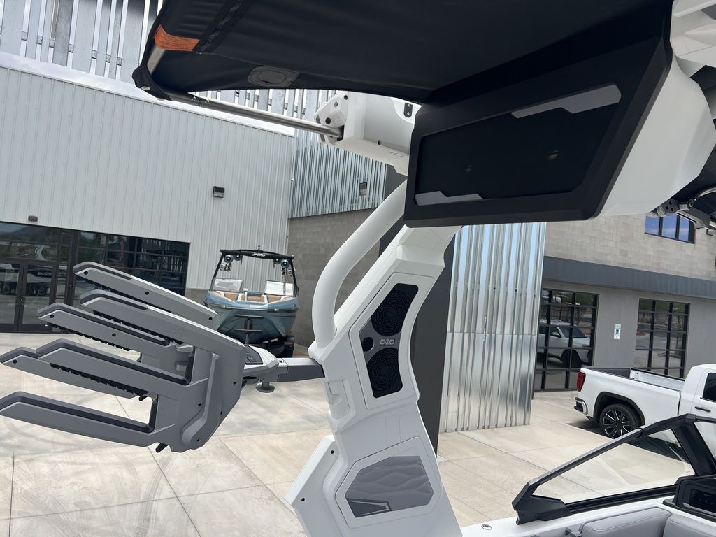 THE SUPRA TOWERDesigned with meticulous attention to detail, this tower represents superior engineering, offering enhanced functionality and style. It comes equipped standard with new ClampForceTM board racks, providing convenient and secure storage for your wakeboards. Bimini storage has been improved for easy access and a cleaner look.