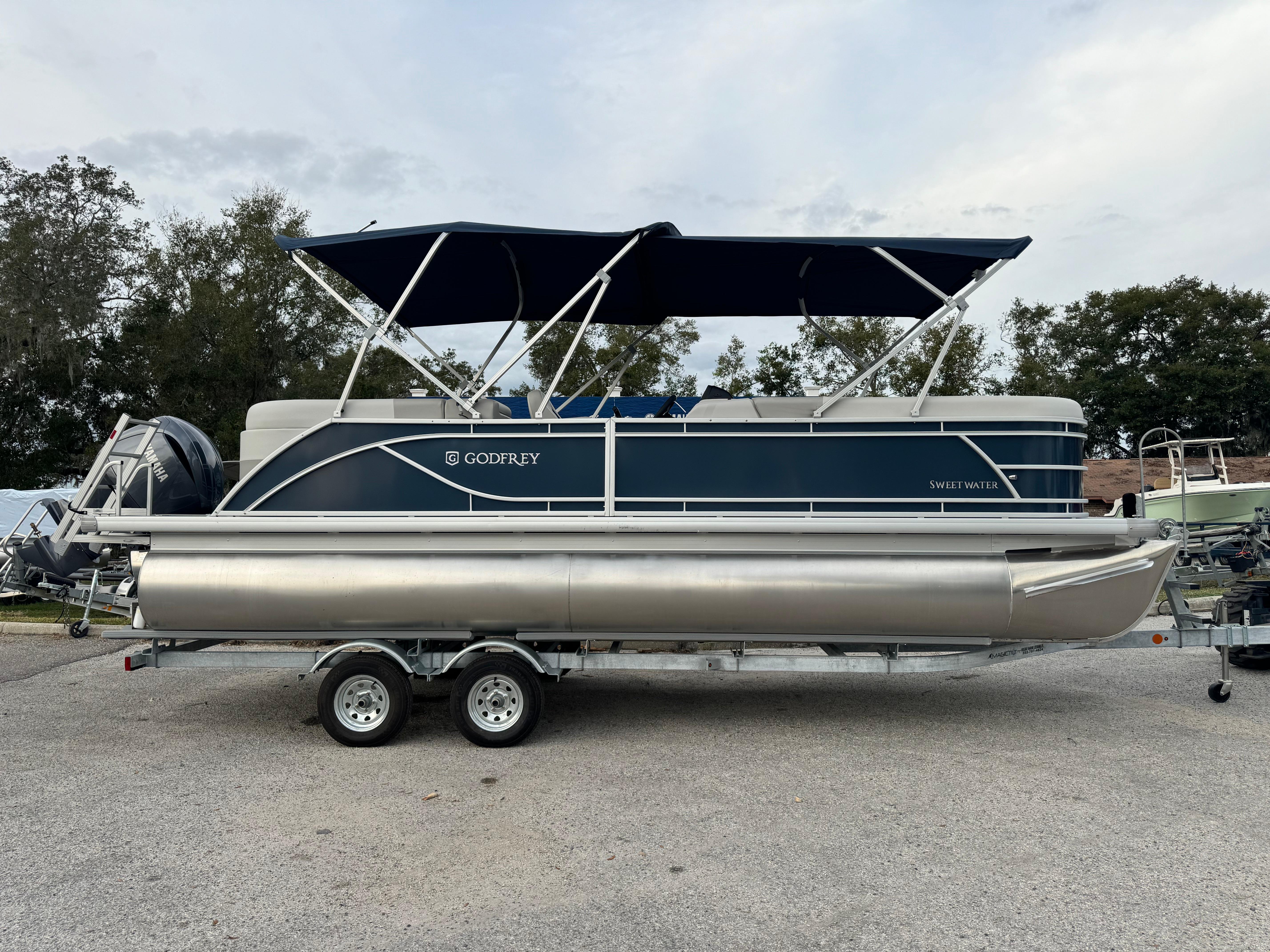 EASY FINANCING AVAILABLE! 2025 Sweetwater SW2286SB – Powered by Yamaha F150LC Introducing the 2025 Sweetwater SW2286SB, a premium pontoon boat designed for those who demand both style and performance. Paired with the powerful Yamaha F150LC engine, this boat offers incredible performance while ensuring smooth and comfortable rides for all your adventures on the water. Key Features: Triple Tube Design: Enjoy enhanced stability, performance, and agility with the triple tube setup, making it perfect for cruising, watersports, and fishing. Double Bimini Tops: Stay cool and shaded on sunny days with the dual bimini tops, offering excellent protection from the sun for everyone onboard. Changing Room: Provides privacy for changing or storing personal gear while out on the water. Lowrance Eagle 5 Fish Finder: Equipped with a Lowrance Eagle 5 for superior navigation and fish-finding capabilities, ensuring you spend more time catching and less time searching. Yamaha F150LC Engine: The reliable Yamaha F150LC engine offers power, efficiency, and durability, allowing for smooth cruising and fast acceleration. Specifications: Length: 22 feet 6 inches Beam Width: 8 feet 6 inches Weight: Approximately 3,100 lbs (dry weight) Max Capacity: 12 people or 2,300 lbs Fuel Capacity: 40 gallons Hull Material: Marine-grade aluminum with a triple tube configuration for superior performance and handling Seating: Spacious, plush seating throughout the boat for maximum comfort on long trips Color: Blue (customizable color options available) Storage: Ample storage compartments for fishing gear, personal items, and more The Sweetwater SW2286SB offers the perfect combination of luxury, performance, and practicality. Whether you're out on the lake for a relaxing day with family, a fishing trip, or enjoying watersports, this boat is built to handle it all with ease and comfort. Don’t miss out on this incredible opportunity! Contact us today to learn more about the 2025 Sweetwater SW2286SB and take advantage of our easy financing options to get you on the water!