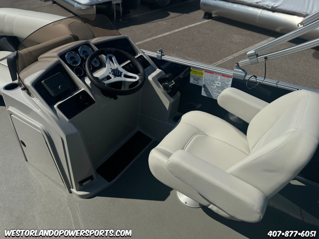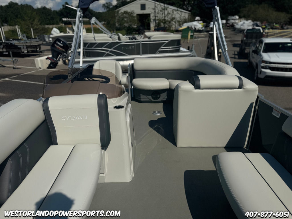 The Sylvan Mirage 818 Cruise epitomizes the quintessential pontoon experience, blending comfort and functionality seamlessly. With two front wrap-around couches, passengers are invited to unwind in luxury while taking in the breathtaking vistas. At the rear, the L-group seating creates a convivial atmosphere, perfect for socializing and making memories with loved ones. Anchoring the vessel is the full fiberglass console, a hub of convenience offering ample storage space for essentials, ensuring a clutter-free environment. Completing the package is the bimini top, providing essential shade on sunny days, allowing everyone aboard to relax in comfort. From tranquil cruises to lively gatherings, the Sylvan Mirage 818 Cruise promises unforgettable pontoon adventures on the water.
