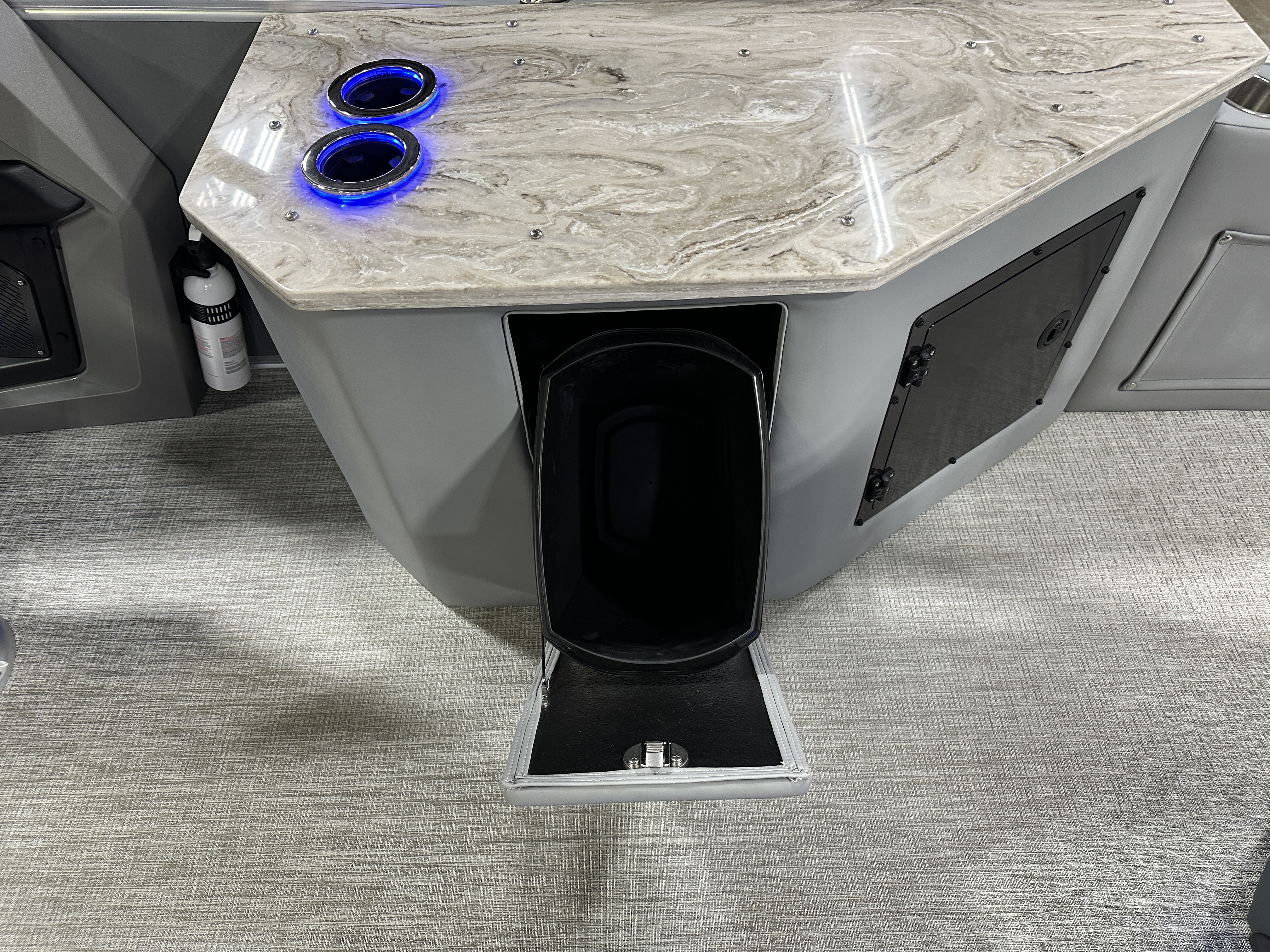Badging), Starboard Aft Storage Center w/Garbage Can & Cup Holders, Lillipad