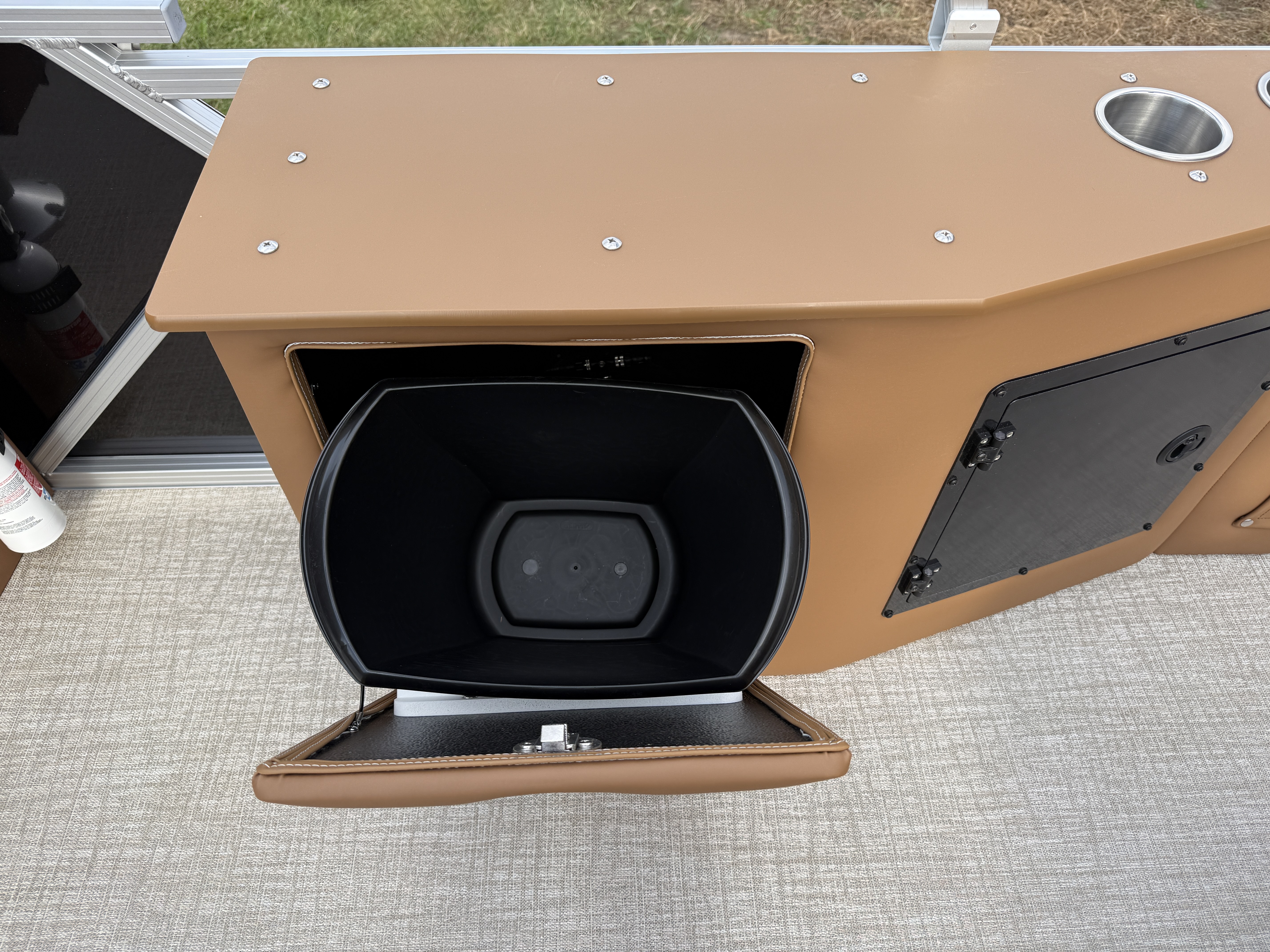 Special Badging), Starboard Aft Storage Center w/Garbage Can & Cup Holders, SST
