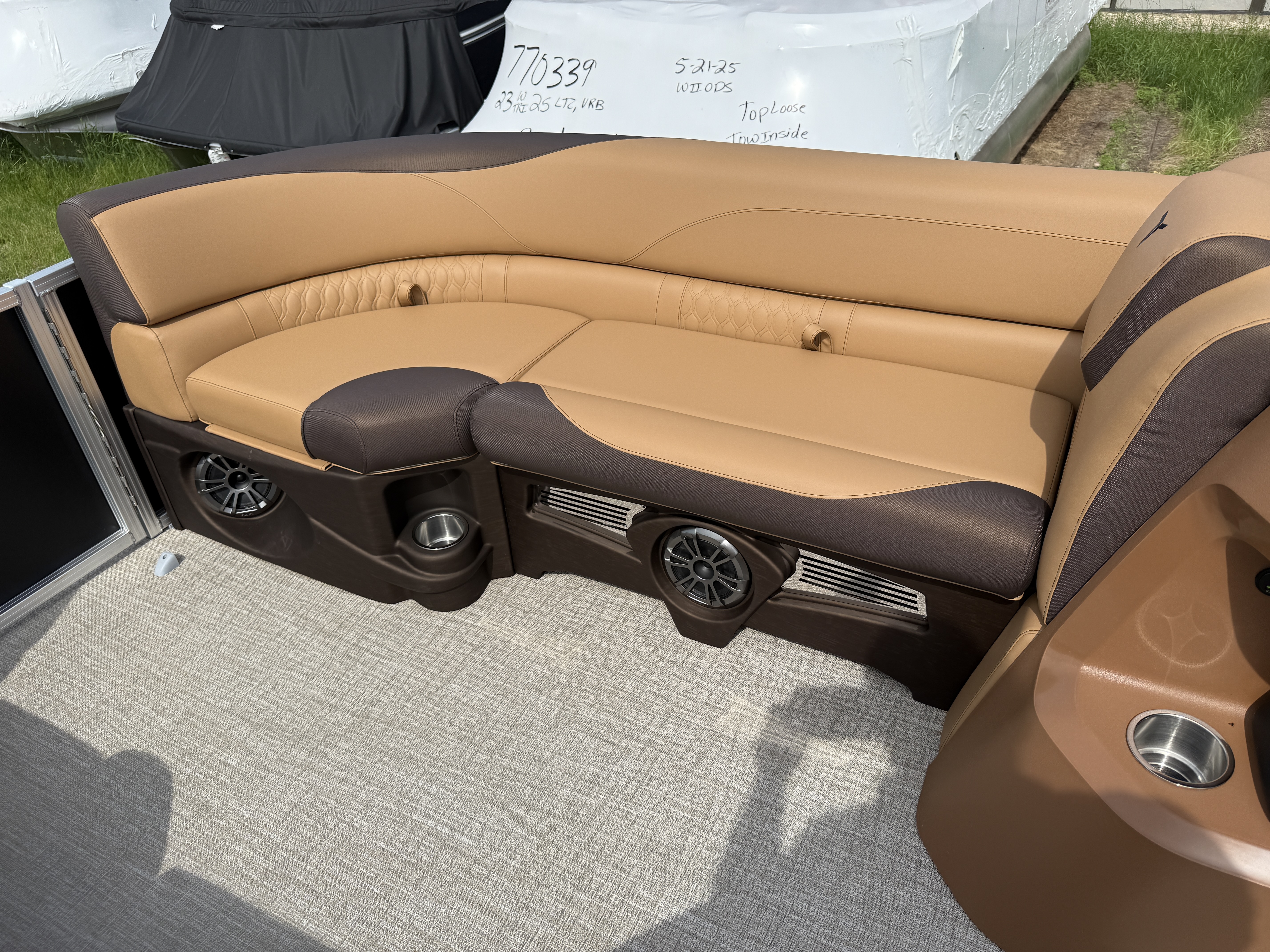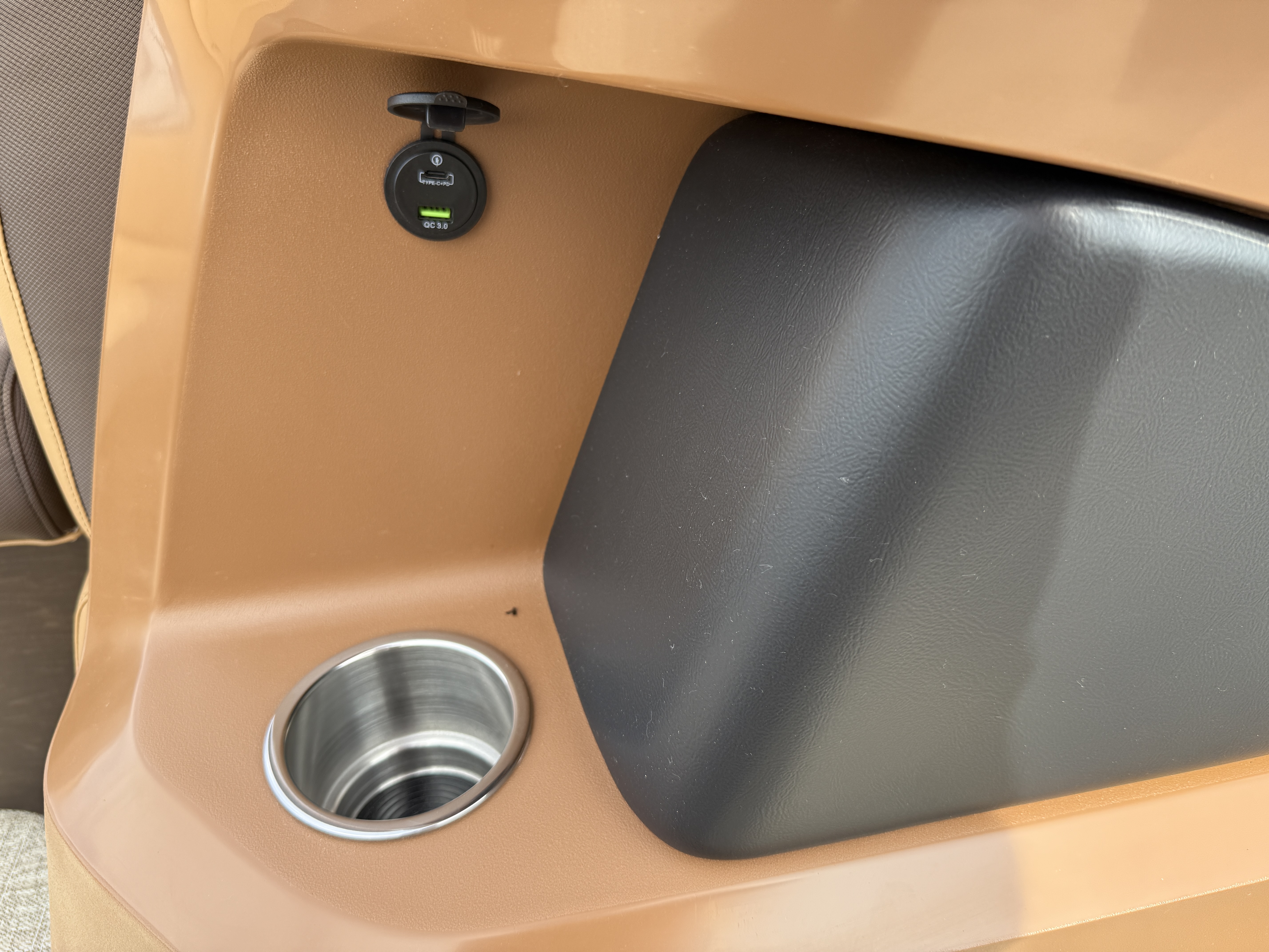 Multiple Cup Holders, 25" Tubes, 10' Bimini Top, Gated Aft, Cognac Interior