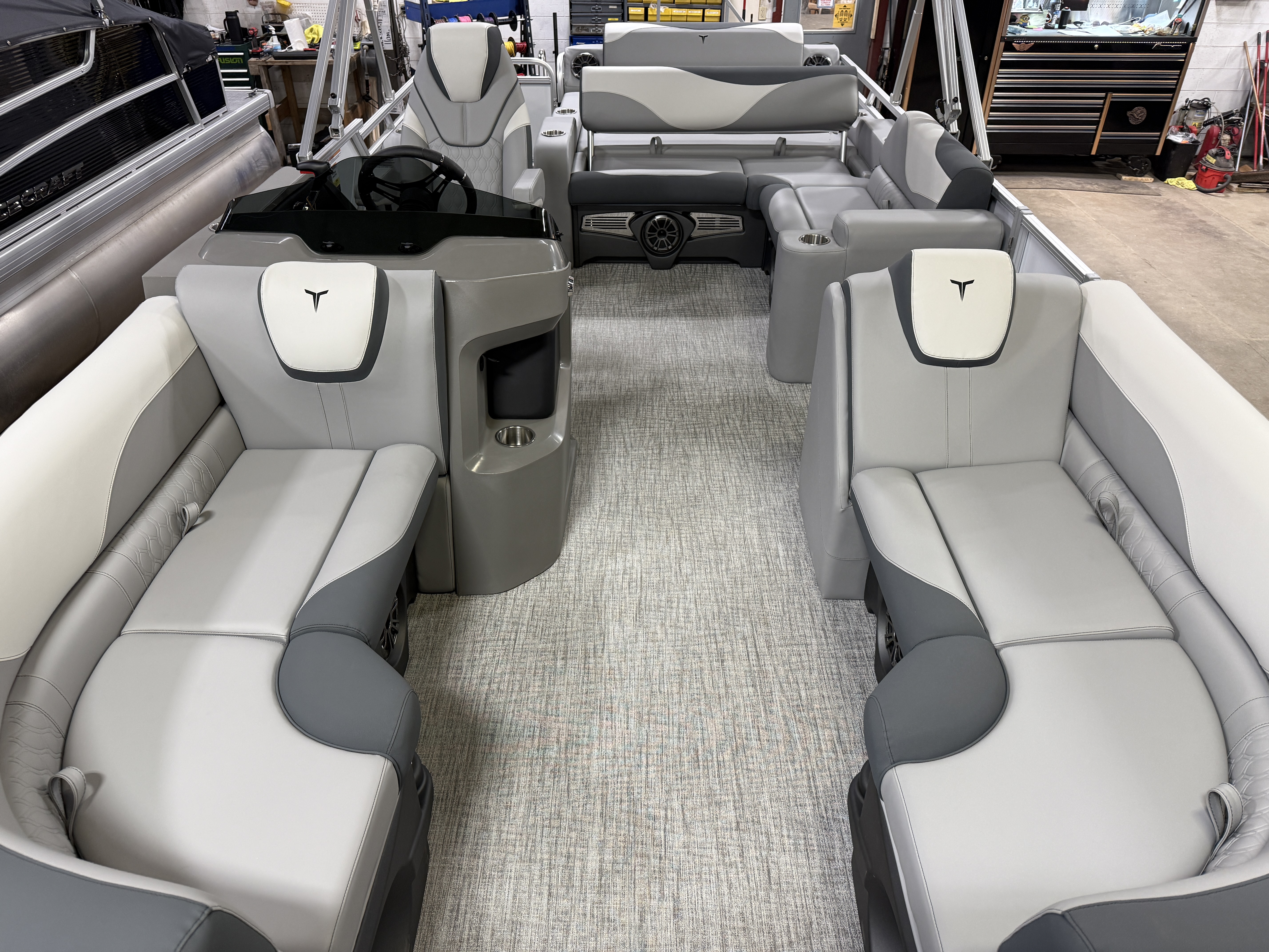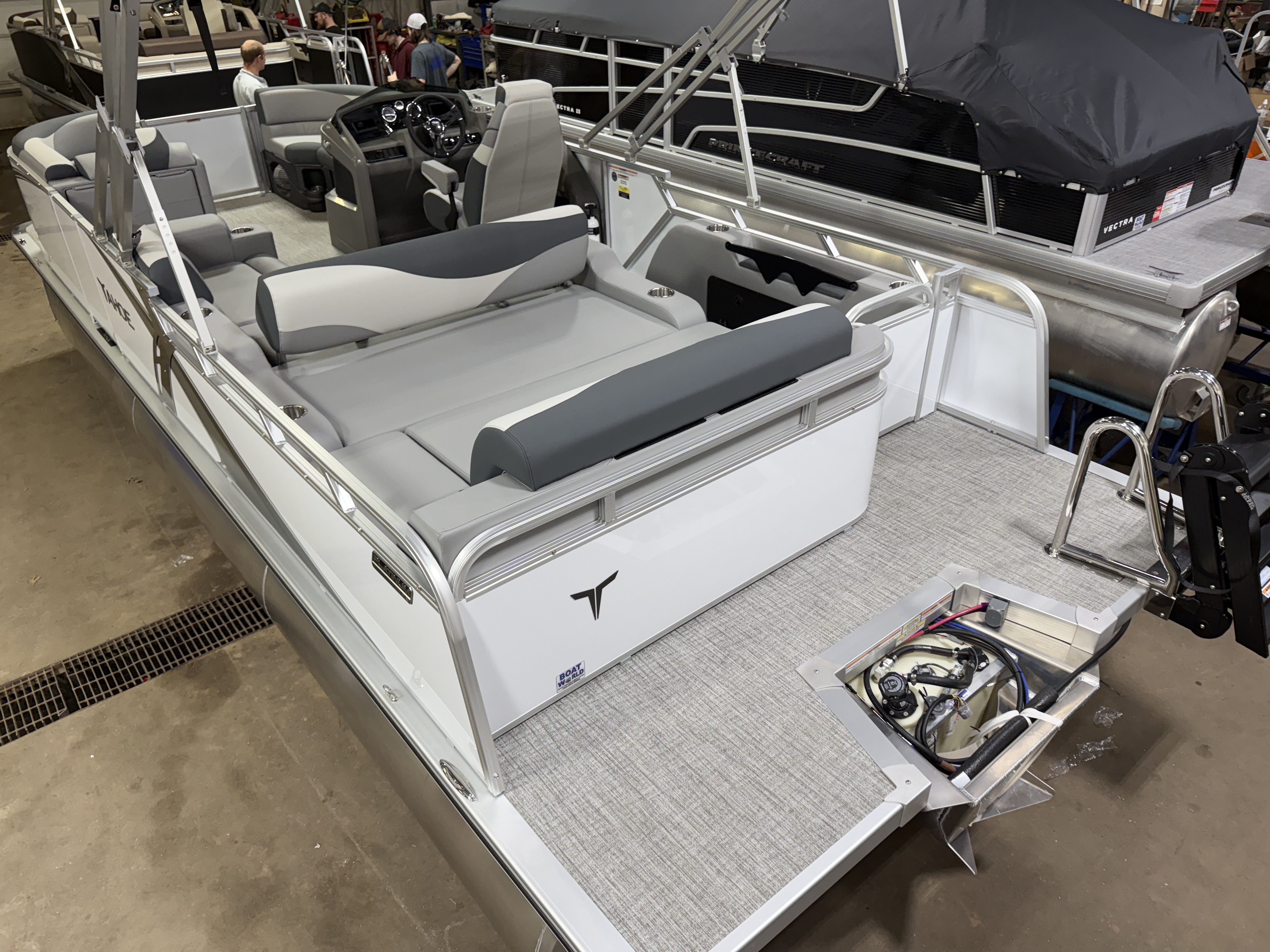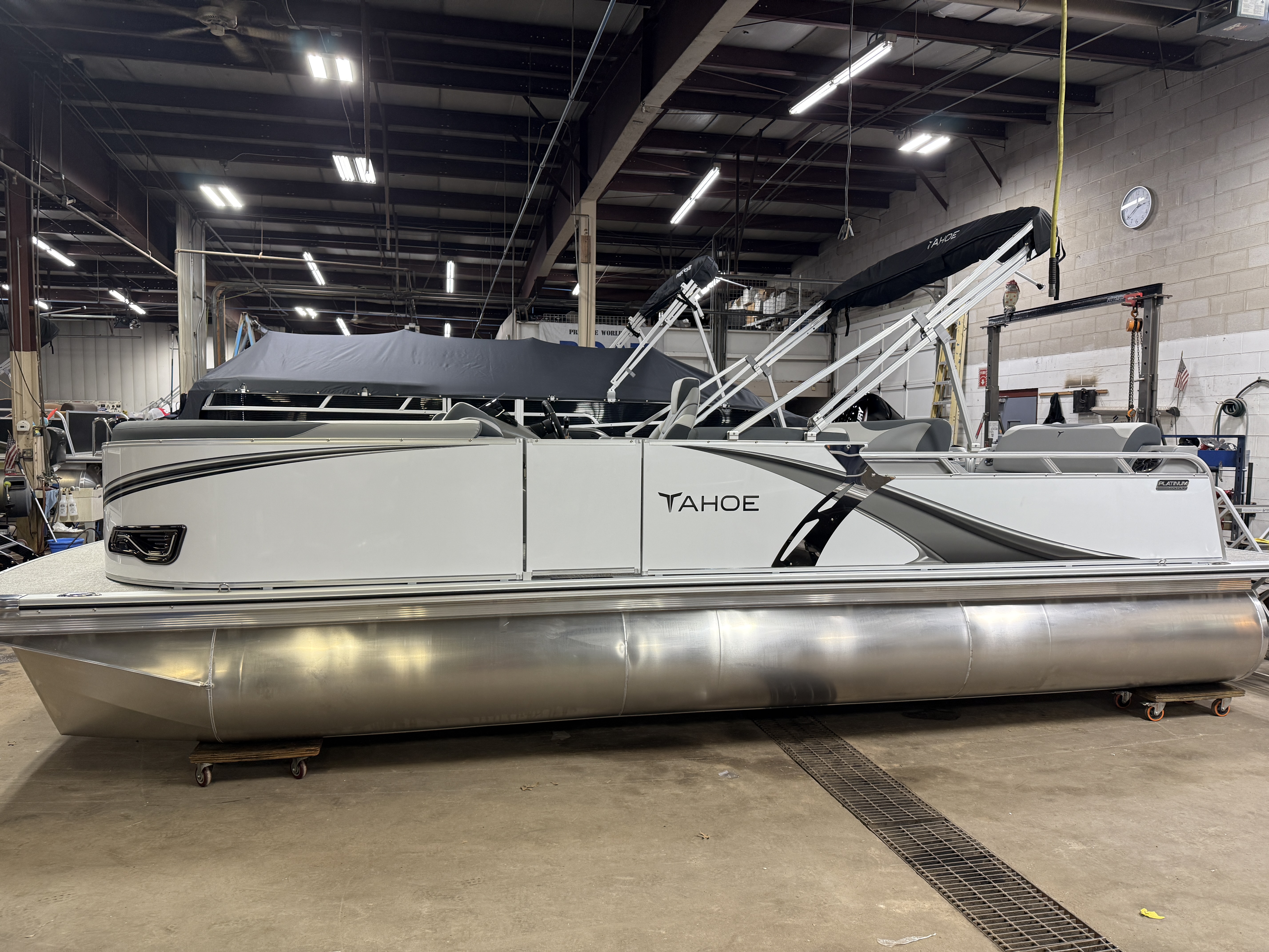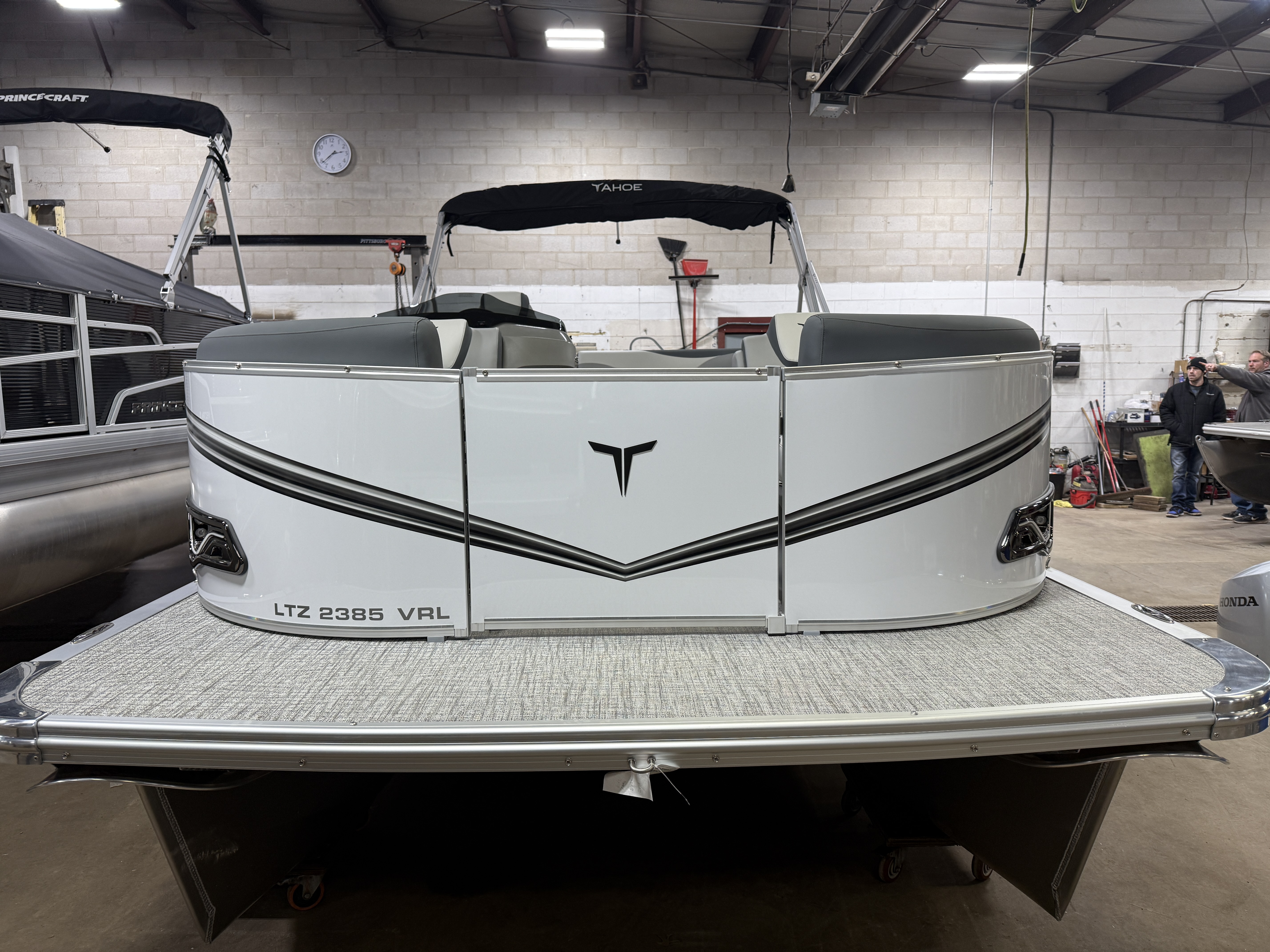 2025 Tahoe LTZ 2385 Versatile Rear Lounger (VRL) Pontoon Powered By Honda. This 23' Pontoon Has Front Lounge Seating With Storage, Admiral Reclining Captain's Chair, Versatile Rear Lounge Seating With Storage & Built In Speakers, Gated Aft, Riptide Shadow Vinyl Flooring, Graphite Interior Package, Platinum Package (LED Chrome Smoked Docklights, Polished Corner Caps, Mooring Cover, Garmin 52CV GPS Depth Finder, Pull Up Cleats, Vent Covers For Cladding), Gauge Package w/Hour Meter, Bimini Top, New Battery, Side Storage Behind Captain's Chair, Built-In Gas Tank, Multiple Cup Holders, Helm Side Storage, Fusion Bluetooth Radio w/6 Speakers & Amp, Lillipad Easy Step Ladder, Tilt Steering, Bow & Aft USB Charging Ports, Front And Rear Deck, New Battery, Charcoal Seat Cladding. Rated For 11 People.