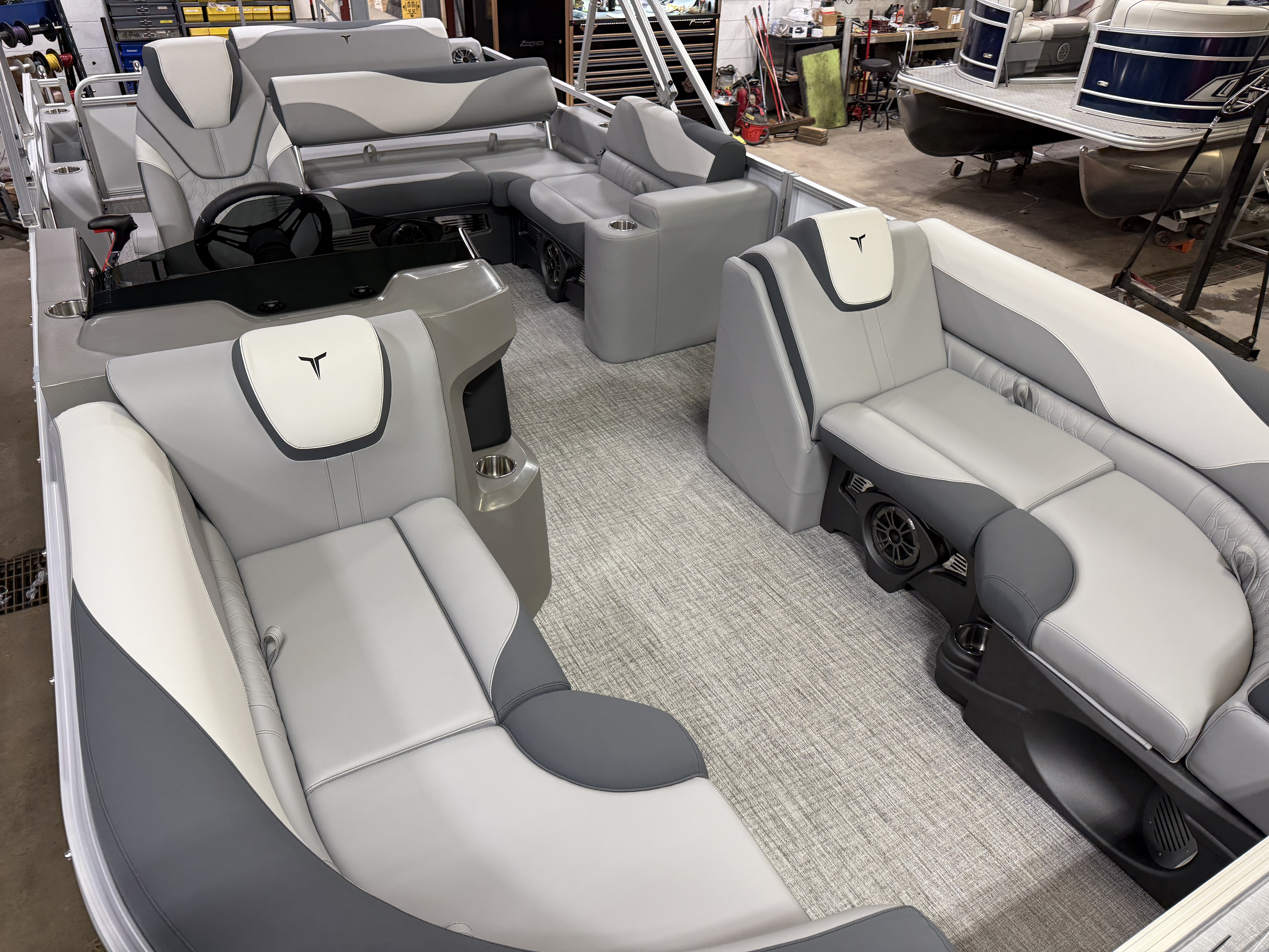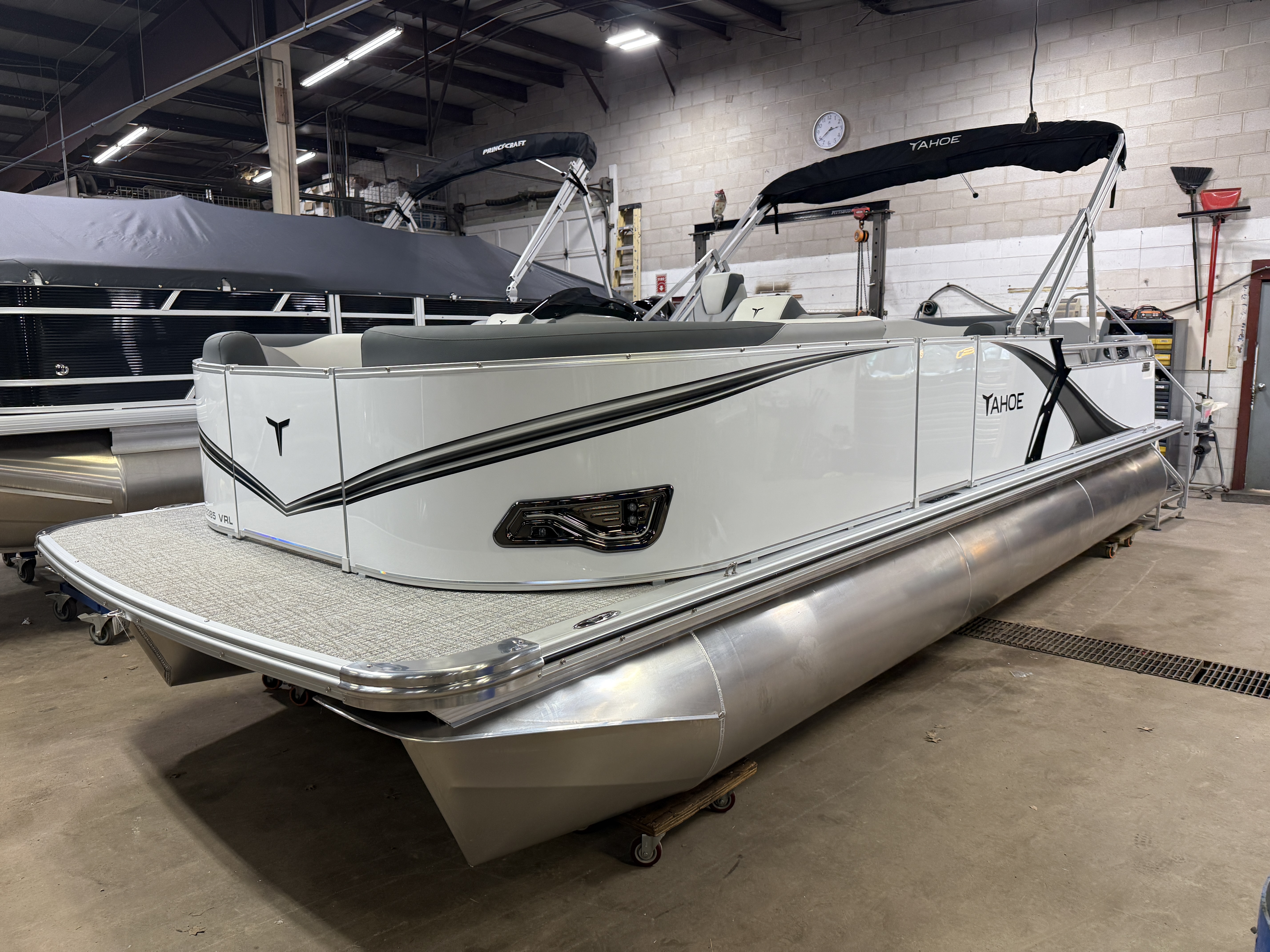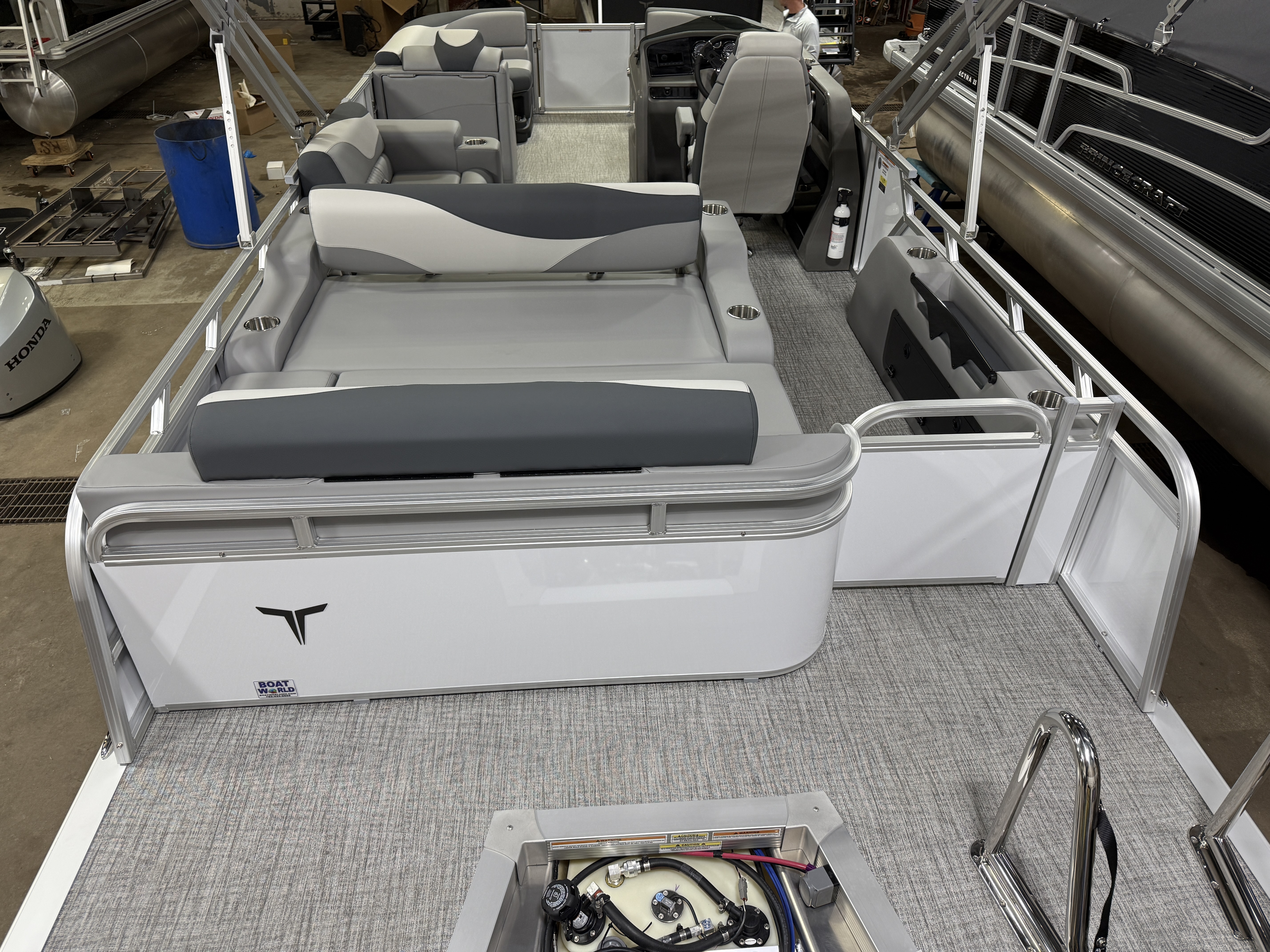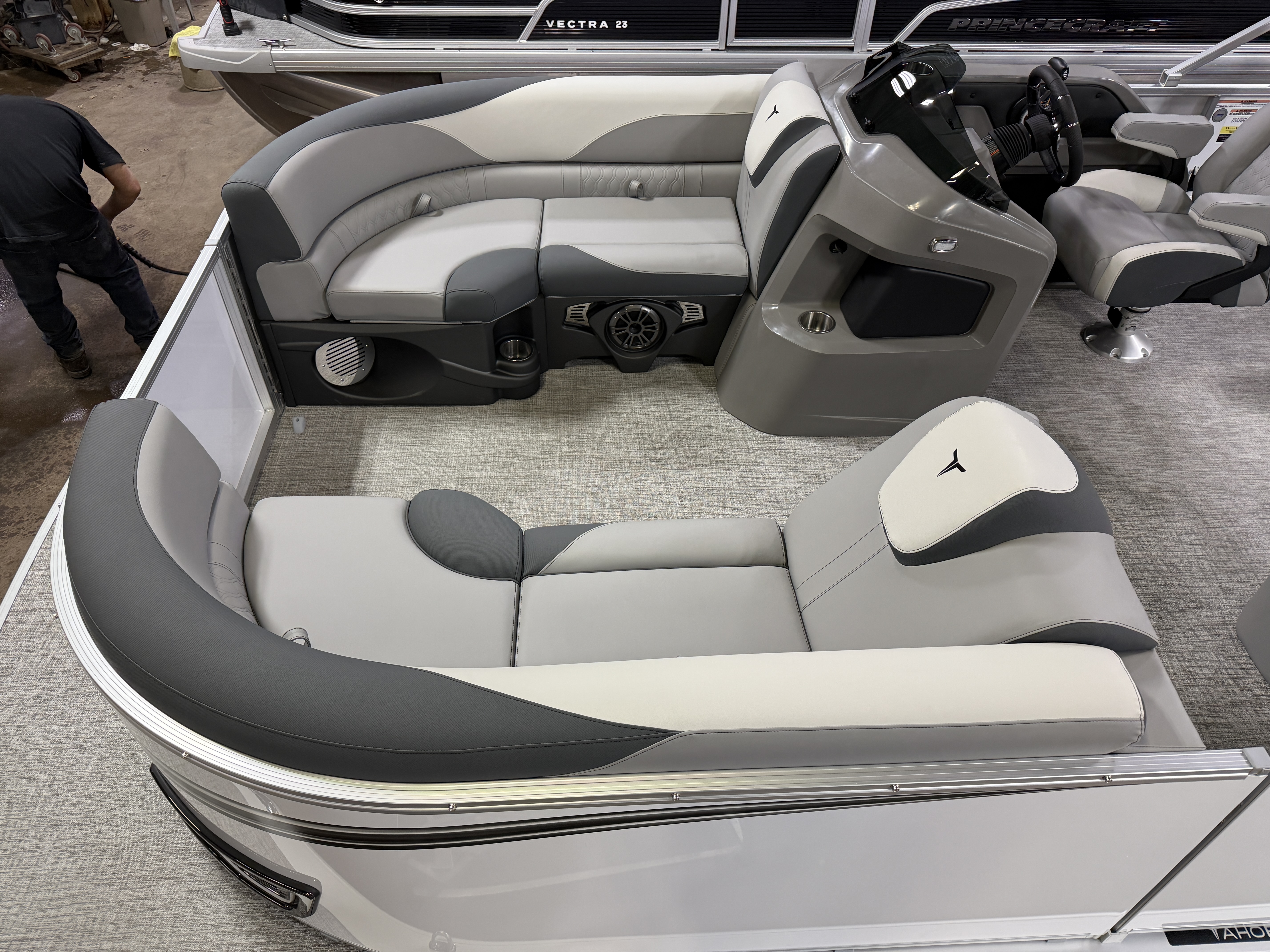 2025 Tahoe LTZ 2385 Versatile Rear Lounger (VRL) Pontoon Powered By Honda. This 23' Pontoon Has Front Lounge Seating With Storage, Admiral Reclining Captain's Chair, Versatile Rear Lounge Seating With Storage & Built In Speakers, Gated Aft, Riptide Shadow Vinyl Flooring, Graphite Interior Package, Platinum Package (LED Chrome Smoked Docklights, Polished Corner Caps, Mooring Cover, Garmin 52CV GPS Depth Finder, Pull Up Cleats, Vent Covers For Cladding), Gauge Package w/Hour Meter, Bimini Top, New Battery, Side Storage Behind Captain's Chair, Built-In Gas Tank, Multiple Cup Holders, Helm Side Storage, Fusion Bluetooth Radio w/6 Speakers & Amp, Lillipad Easy Step Ladder, Tilt Steering, Bow & Aft USB Charging Ports, Front And Rear Deck, New Battery, Charcoal Seat Cladding. Rated For 11 People.