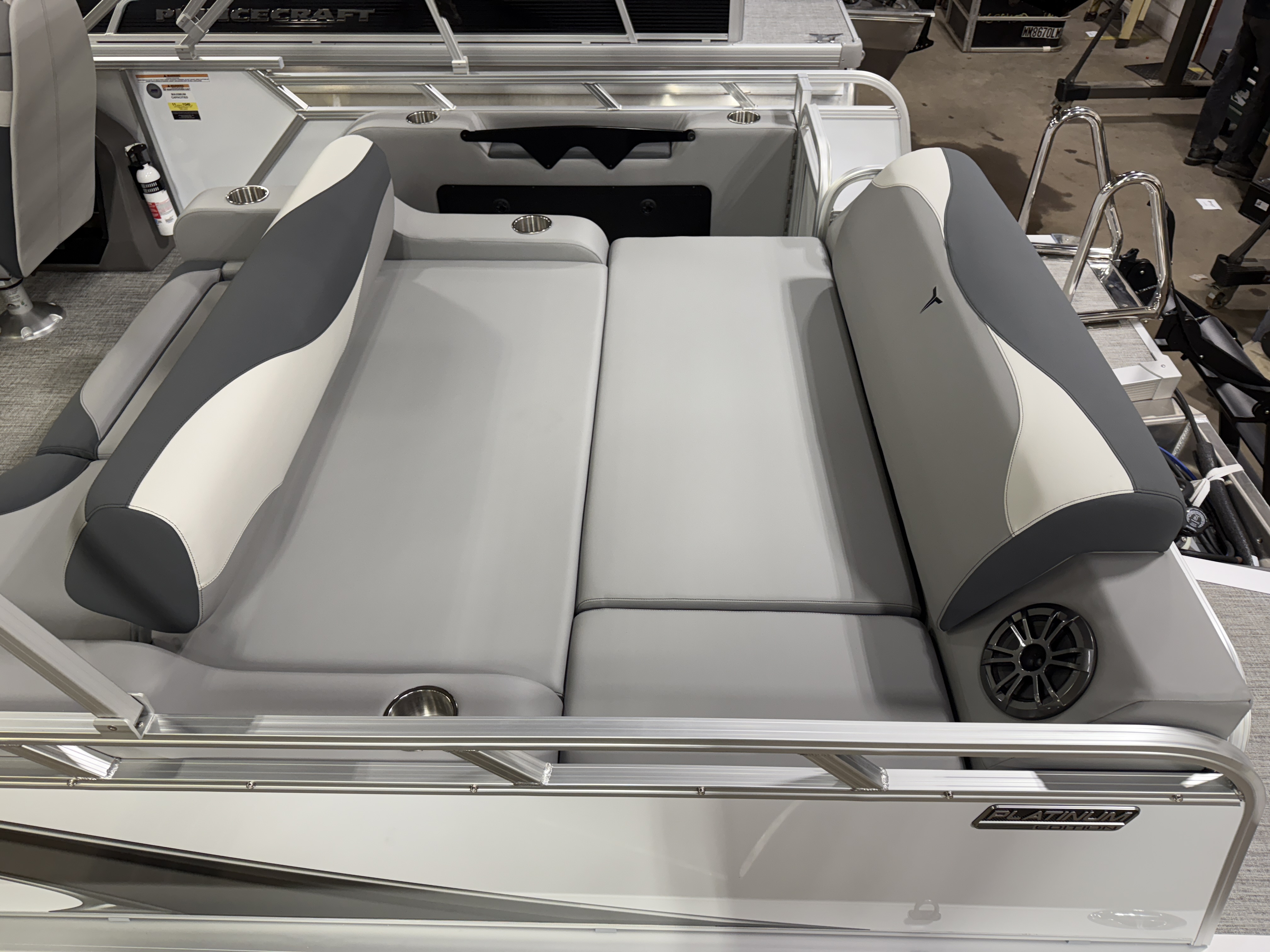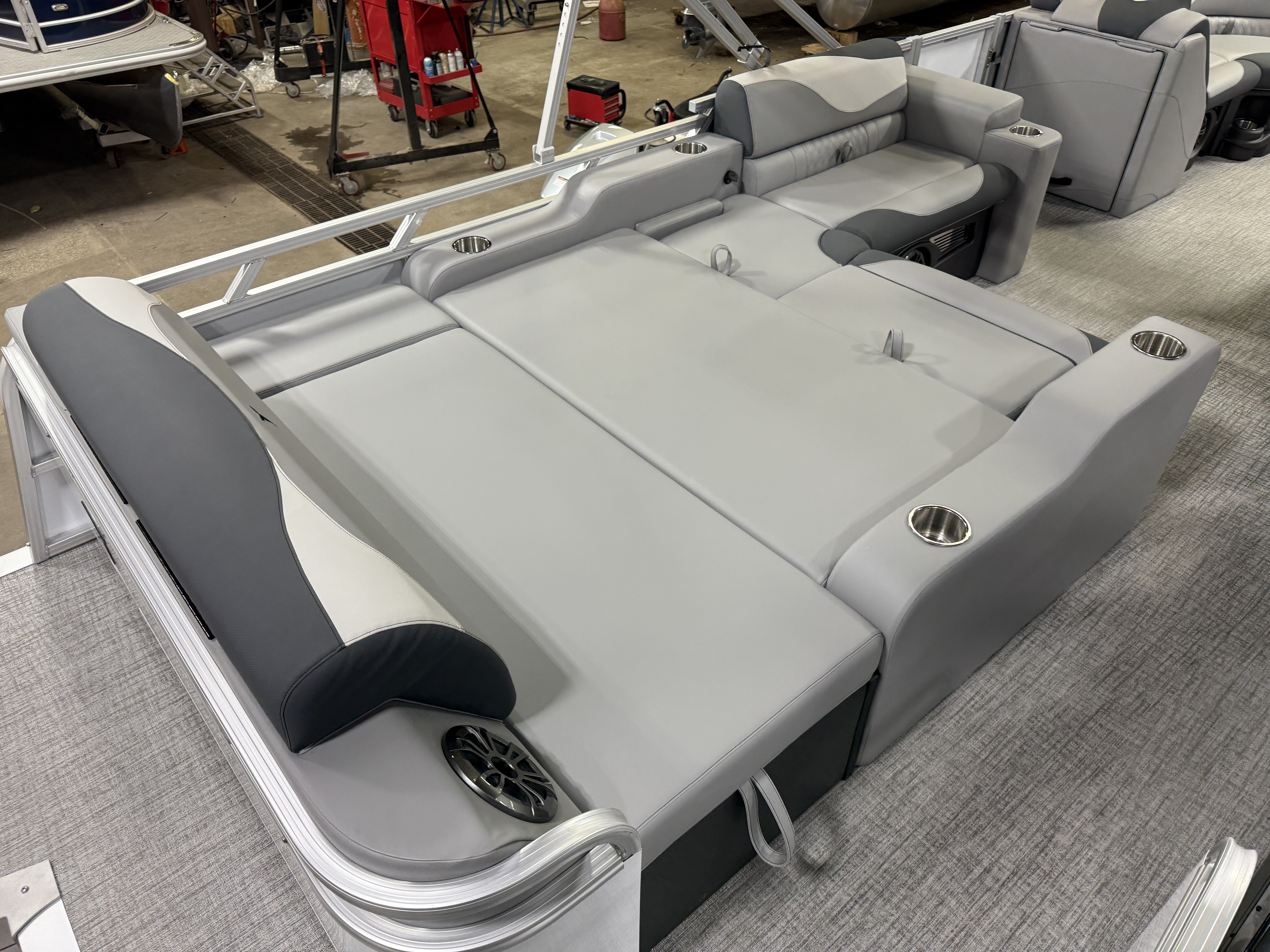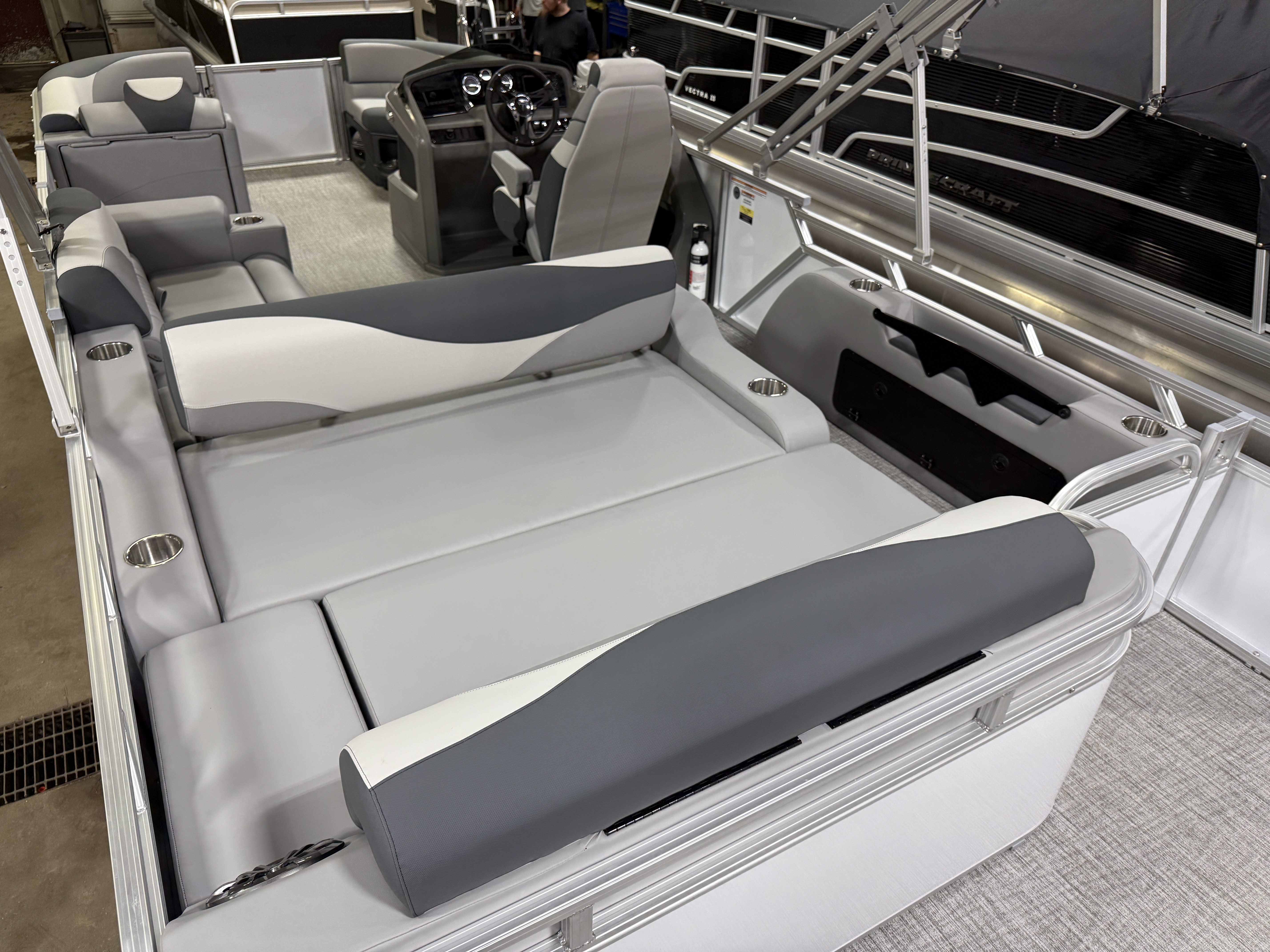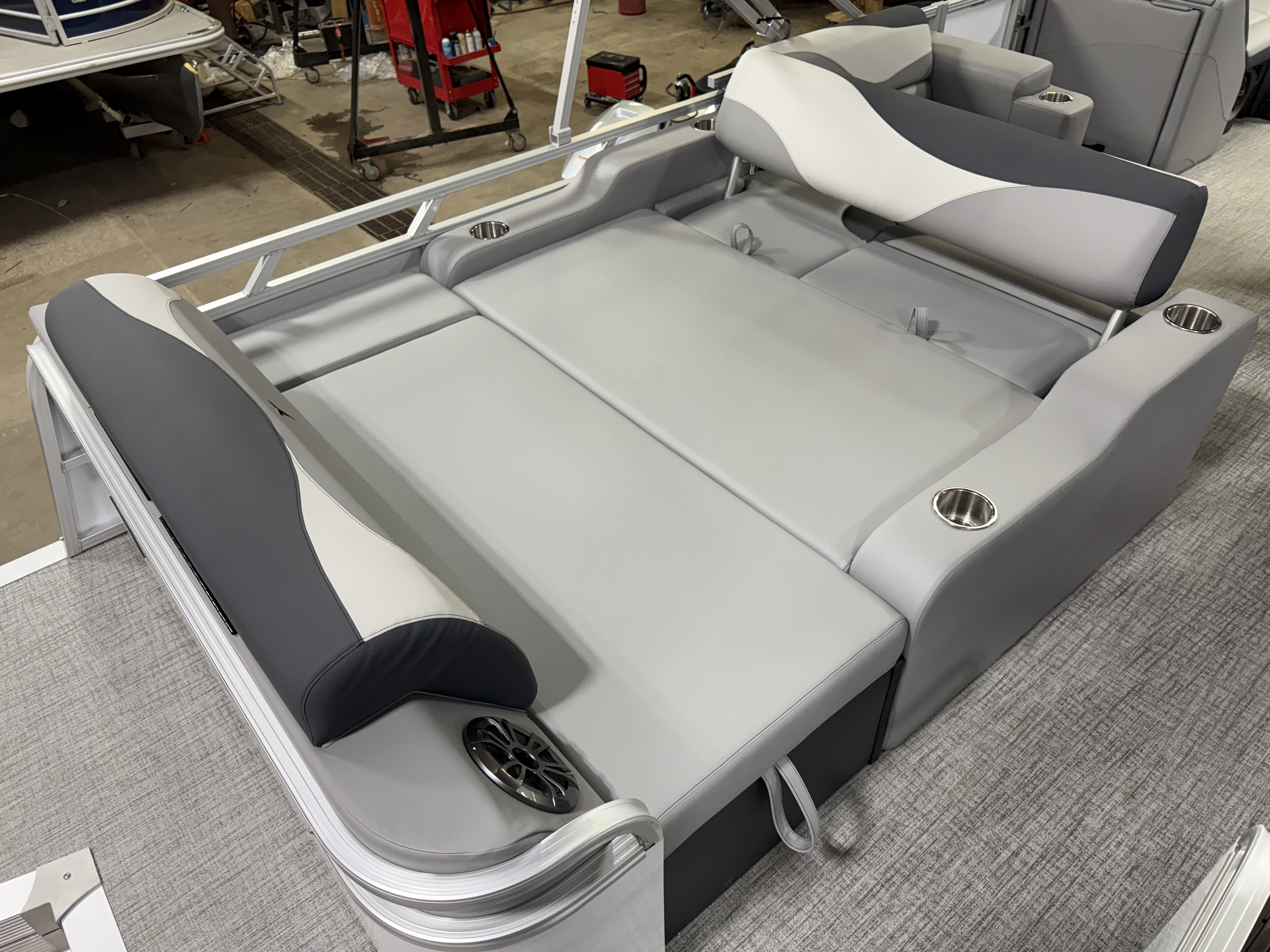 2025 Tahoe LTZ 2385 Versatile Rear Lounger (VRL) Pontoon Powered By Honda. This 23' Pontoon Has Front Lounge Seating With Storage, Admiral Reclining Captain's Chair, Versatile Rear Lounge Seating With Storage & Built In Speakers, Gated Aft, Riptide Shadow Vinyl Flooring, Graphite Interior Package, Platinum Package (LED Chrome Smoked Docklights, Polished Corner Caps, Mooring Cover, Garmin 52CV GPS Depth Finder, Pull Up Cleats, Vent Covers For Cladding), Gauge Package w/Hour Meter, Bimini Top, New Battery, Side Storage Behind Captain's Chair, Built-In Gas Tank, Multiple Cup Holders, Helm Side Storage, Fusion Bluetooth Radio w/6 Speakers & Amp, Lillipad Easy Step Ladder, Tilt Steering, Bow & Aft USB Charging Ports, Front And Rear Deck, New Battery, Charcoal Seat Cladding. Rated For 11 People.