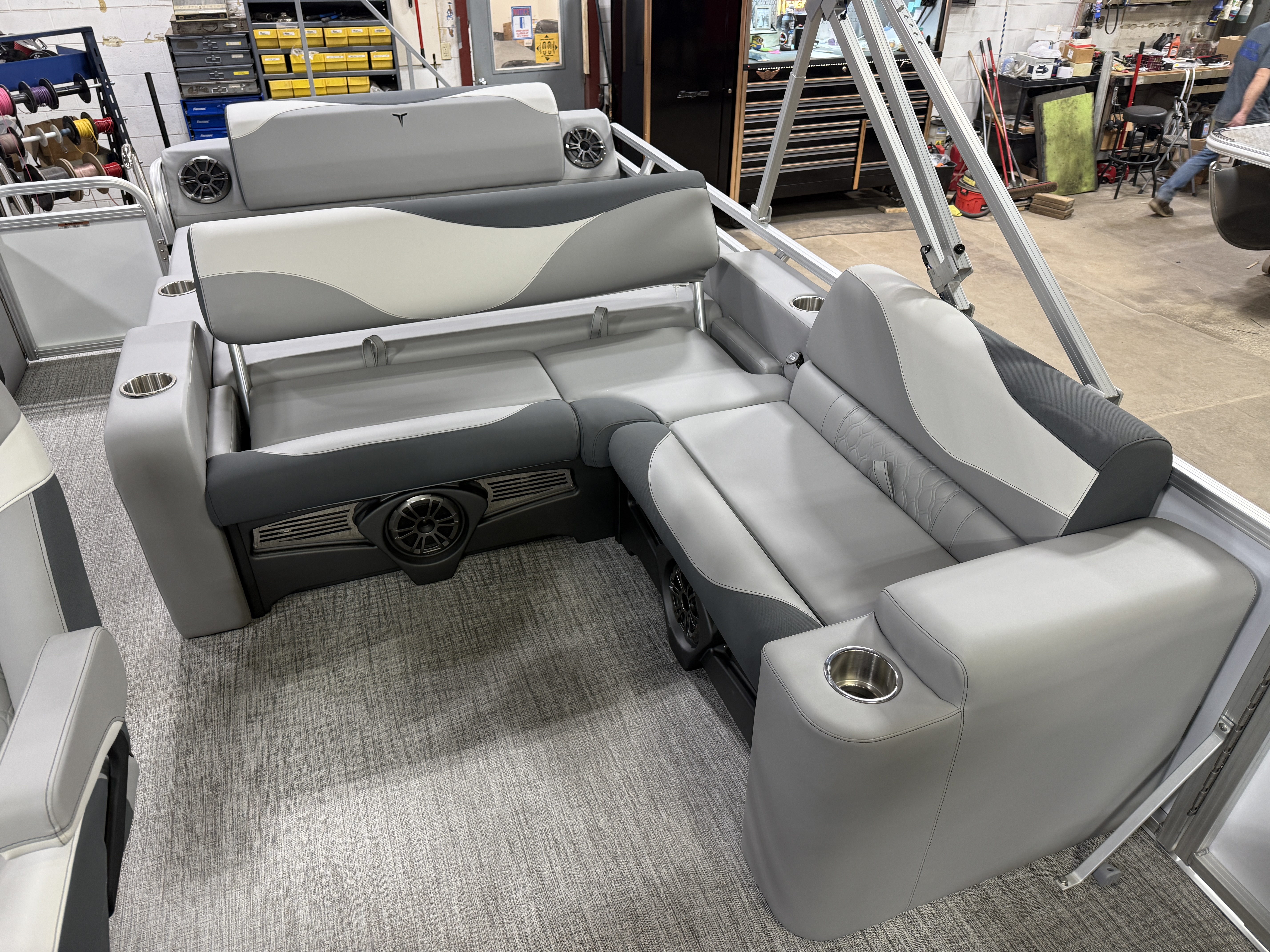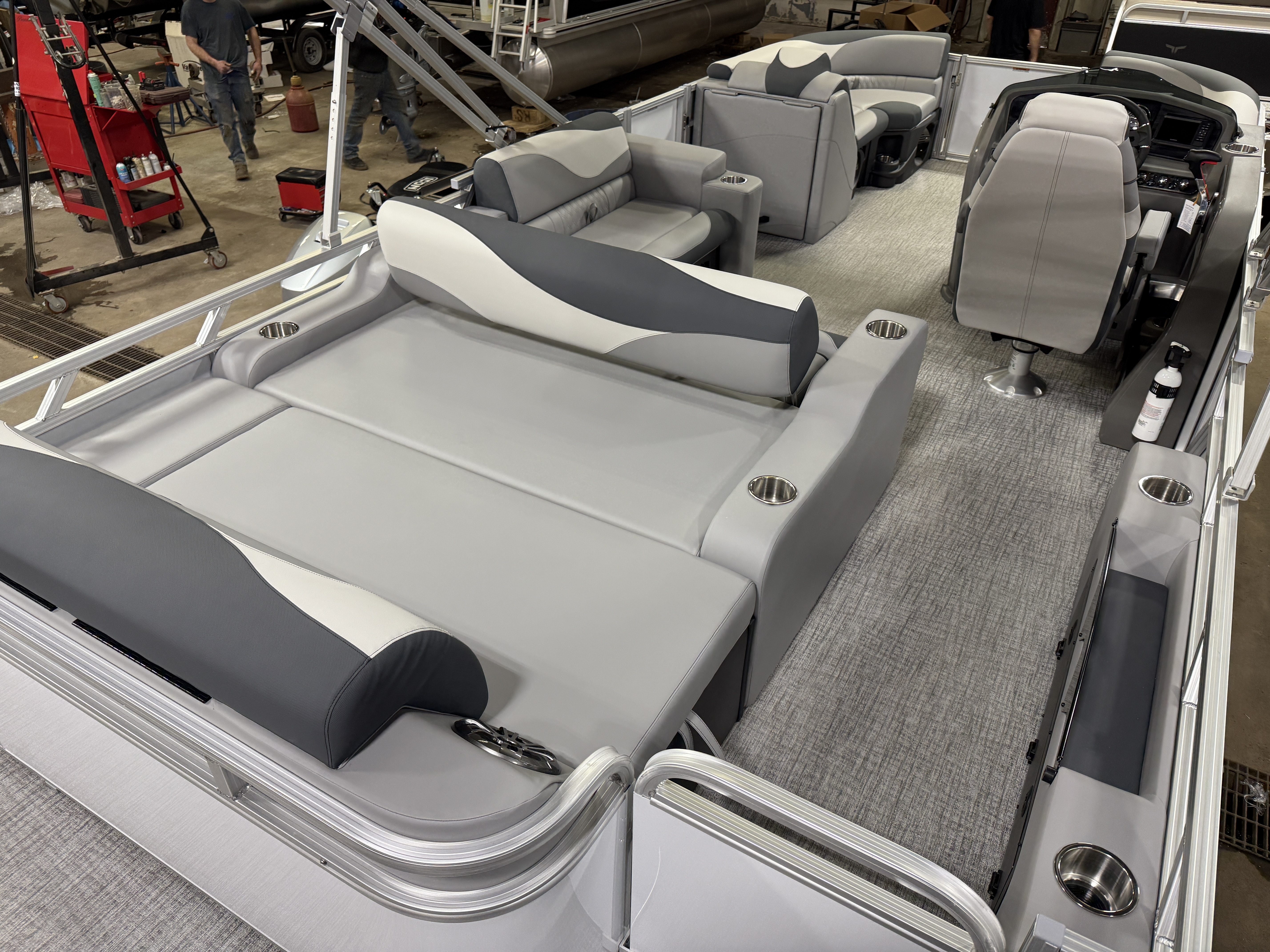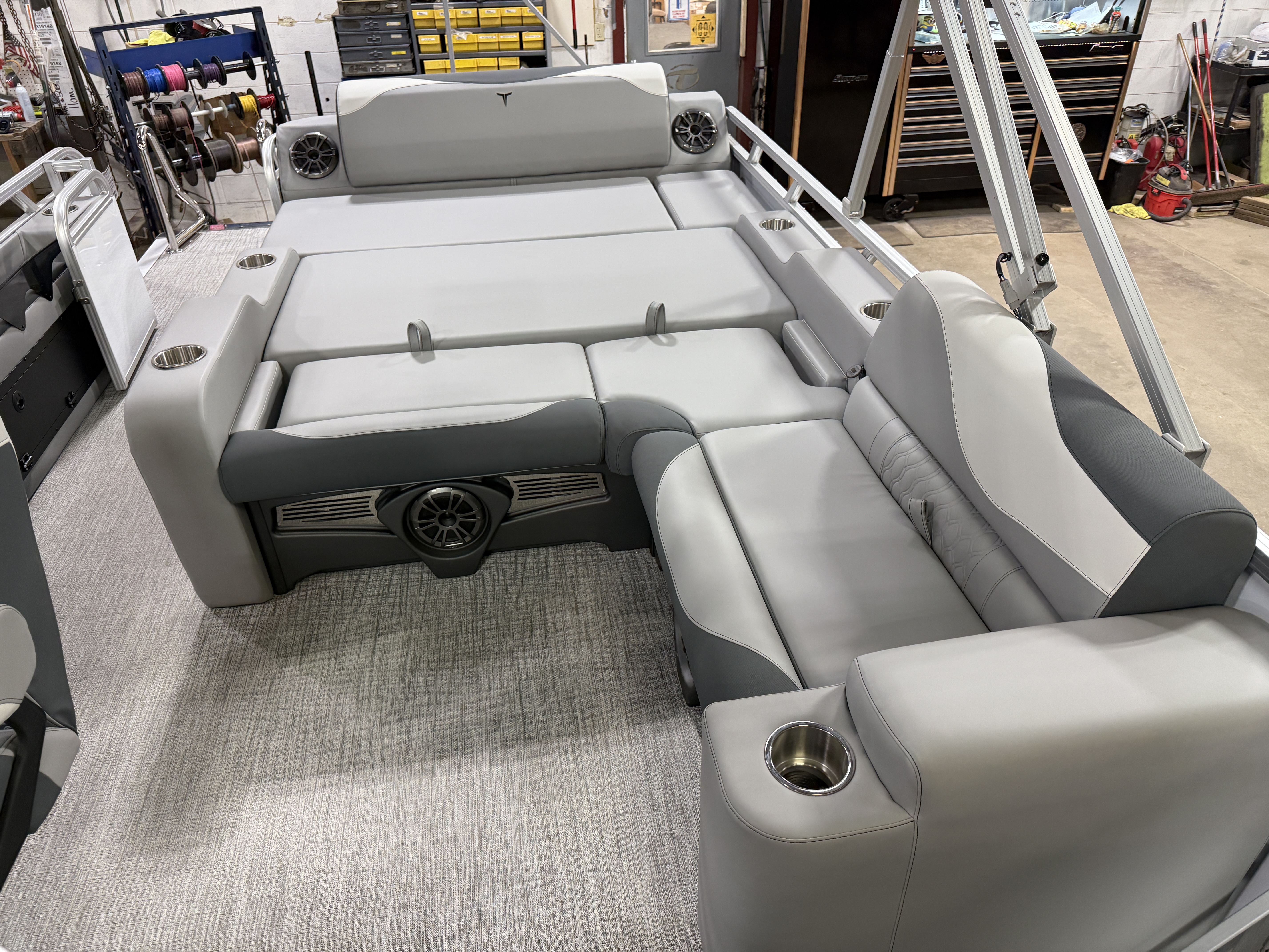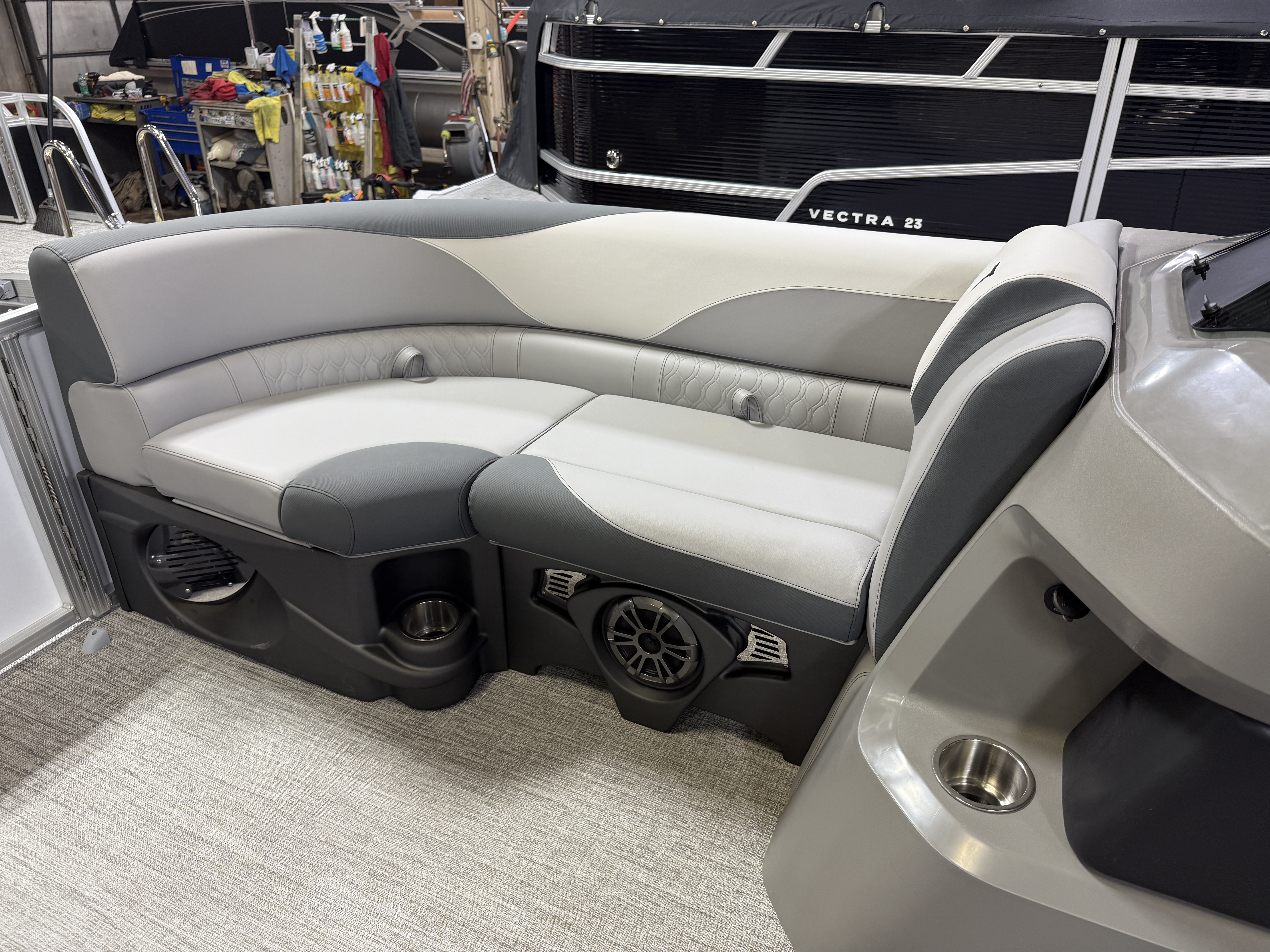 2025 Tahoe LTZ 2385 Versatile Rear Lounger (VRL) Pontoon Powered By Honda. This 23' Pontoon Has Front Lounge Seating With Storage, Admiral Reclining Captain's Chair, Versatile Rear Lounge Seating With Storage & Built In Speakers, Gated Aft, Riptide Shadow Vinyl Flooring, Graphite Interior Package, Platinum Package (LED Chrome Smoked Docklights, Polished Corner Caps, Mooring Cover, Garmin 52CV GPS Depth Finder, Pull Up Cleats, Vent Covers For Cladding), Gauge Package w/Hour Meter, Bimini Top, New Battery, Side Storage Behind Captain's Chair, Built-In Gas Tank, Multiple Cup Holders, Helm Side Storage, Fusion Bluetooth Radio w/6 Speakers & Amp, Lillipad Easy Step Ladder, Tilt Steering, Bow & Aft USB Charging Ports, Front And Rear Deck, New Battery, Charcoal Seat Cladding. Rated For 11 People.