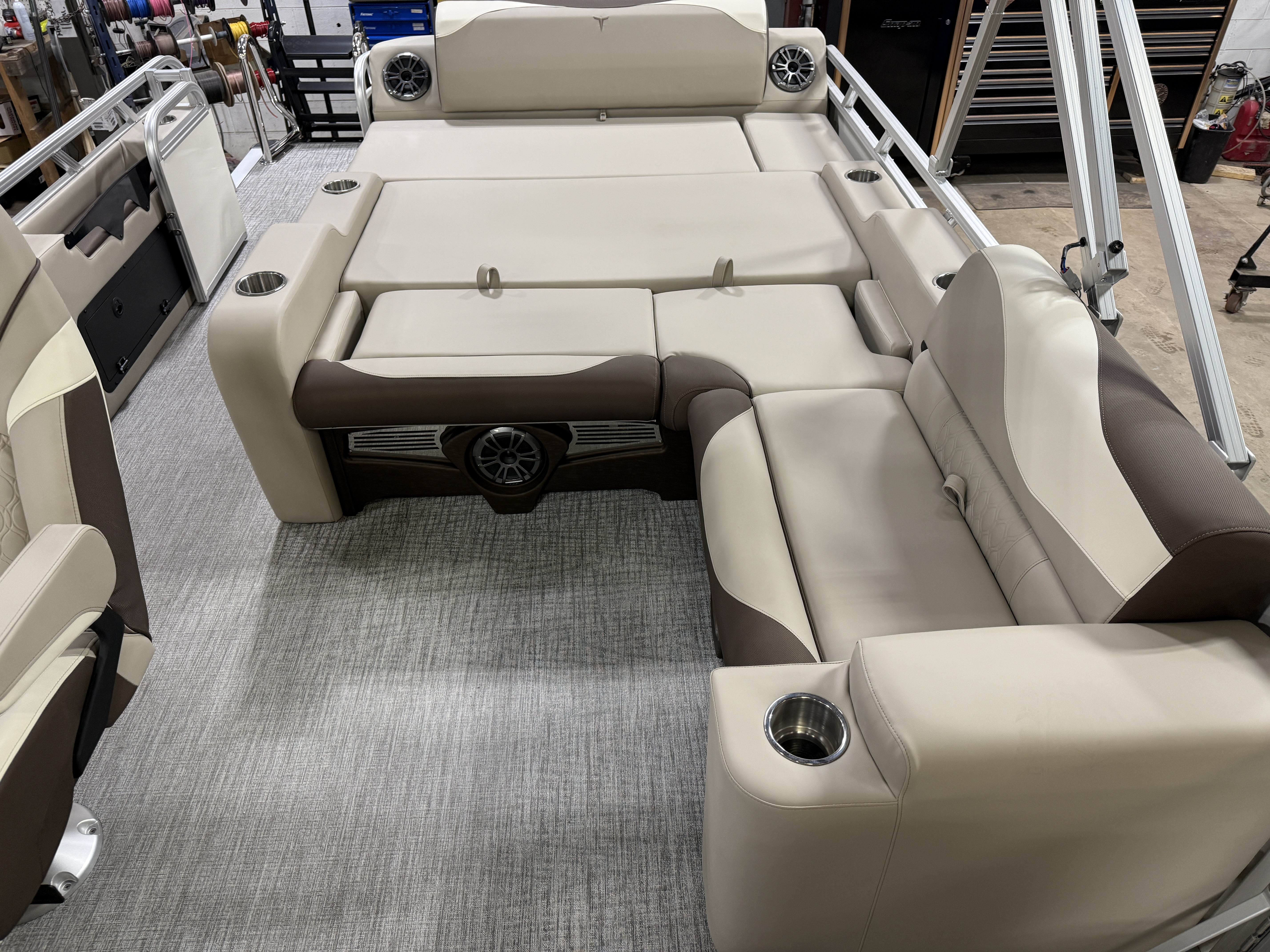 23' Pontoon Has Front Lounge Seating With Storage, Admiral Reclining Captain's