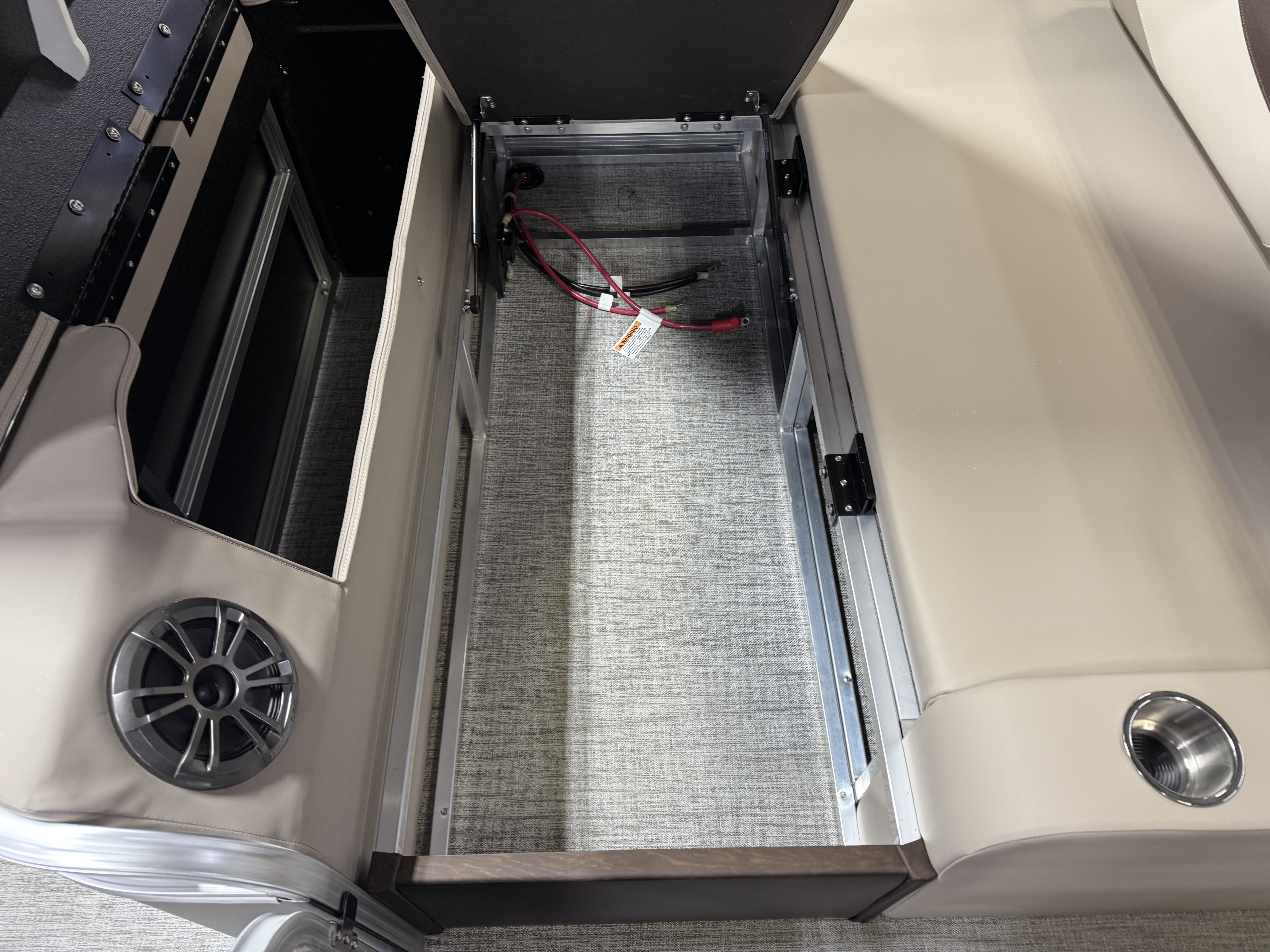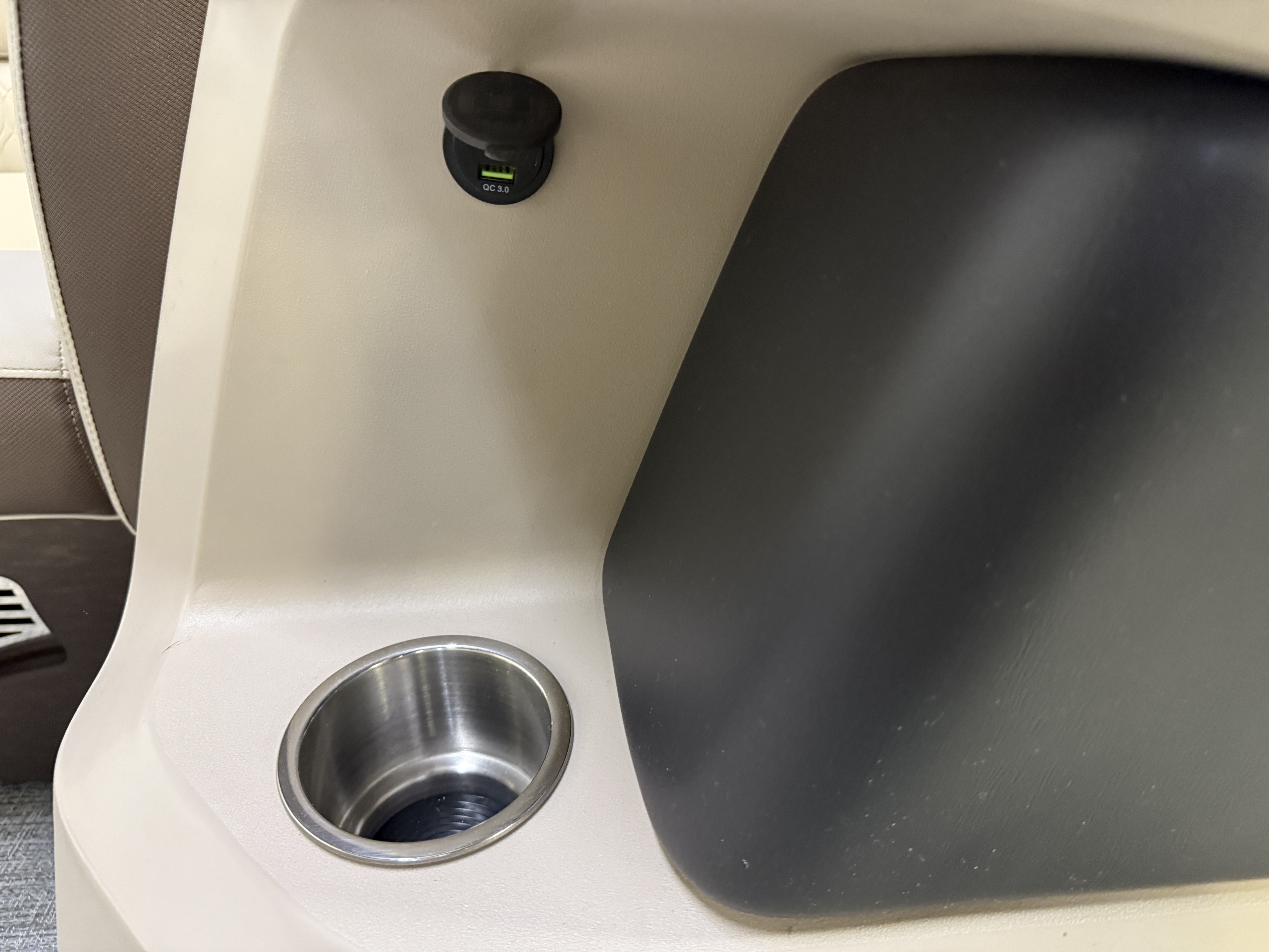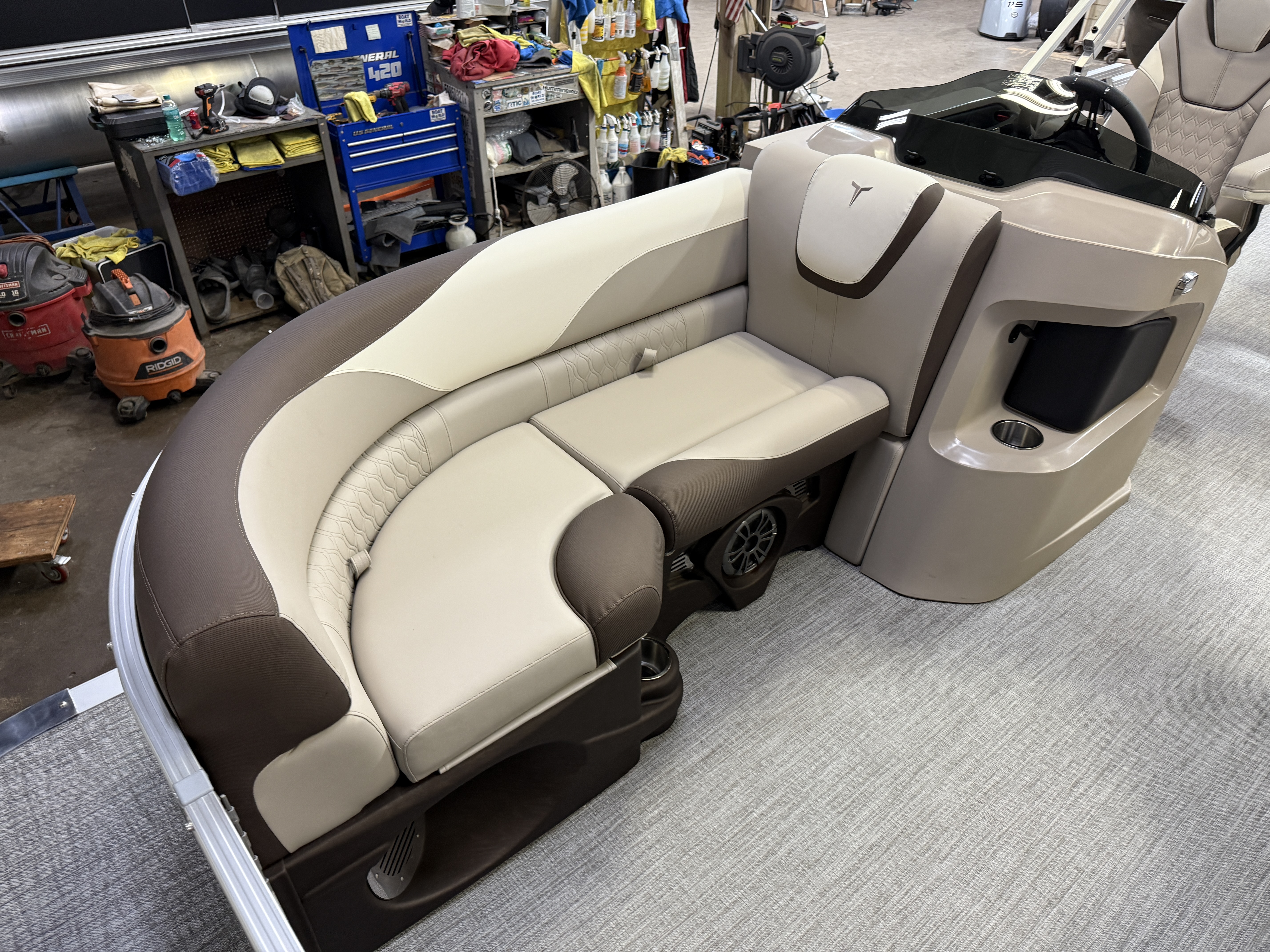 Captain's Chair, Built-In Gas Tank, Multiple Cup Holders, Helm Side Storage,