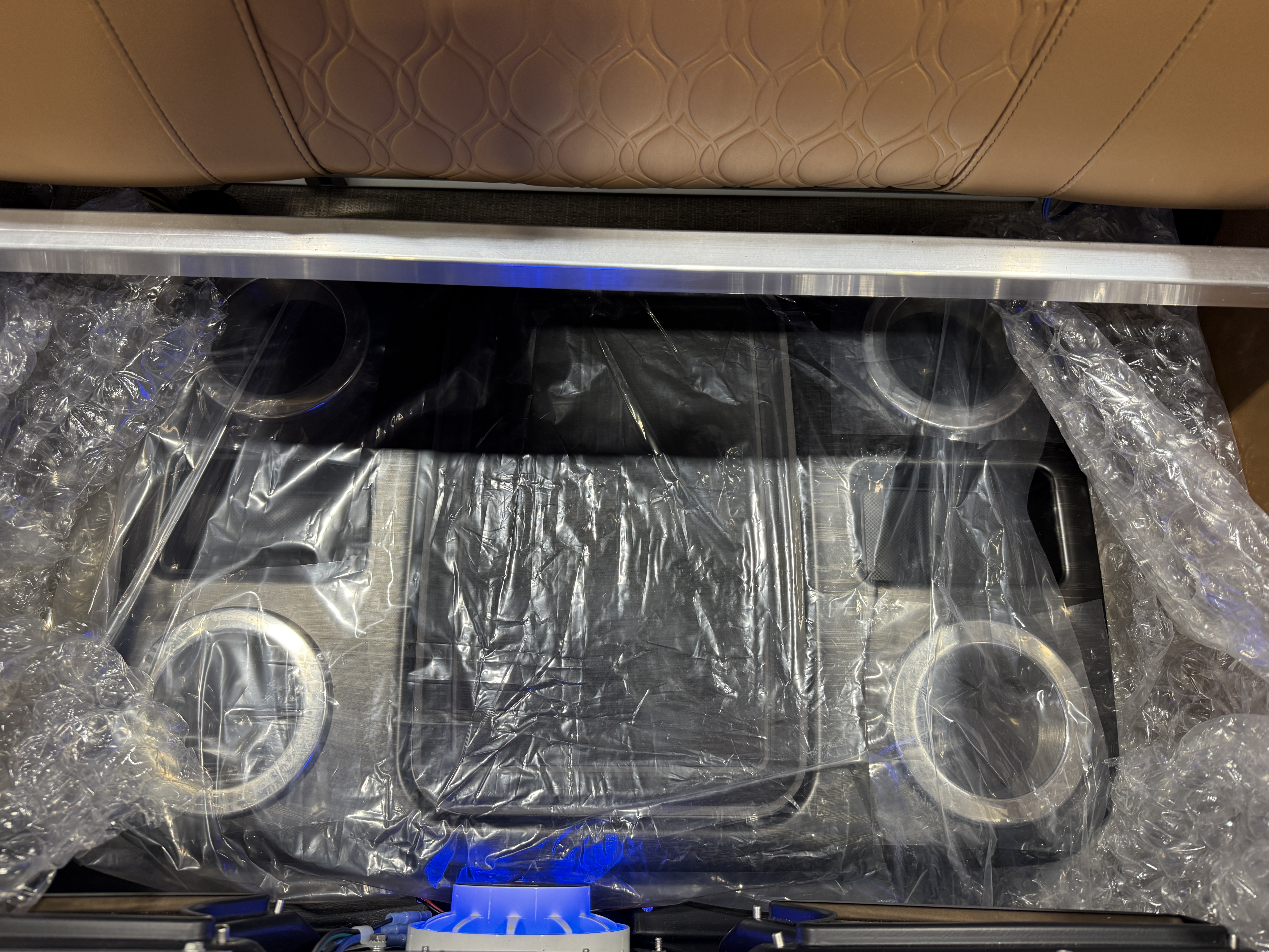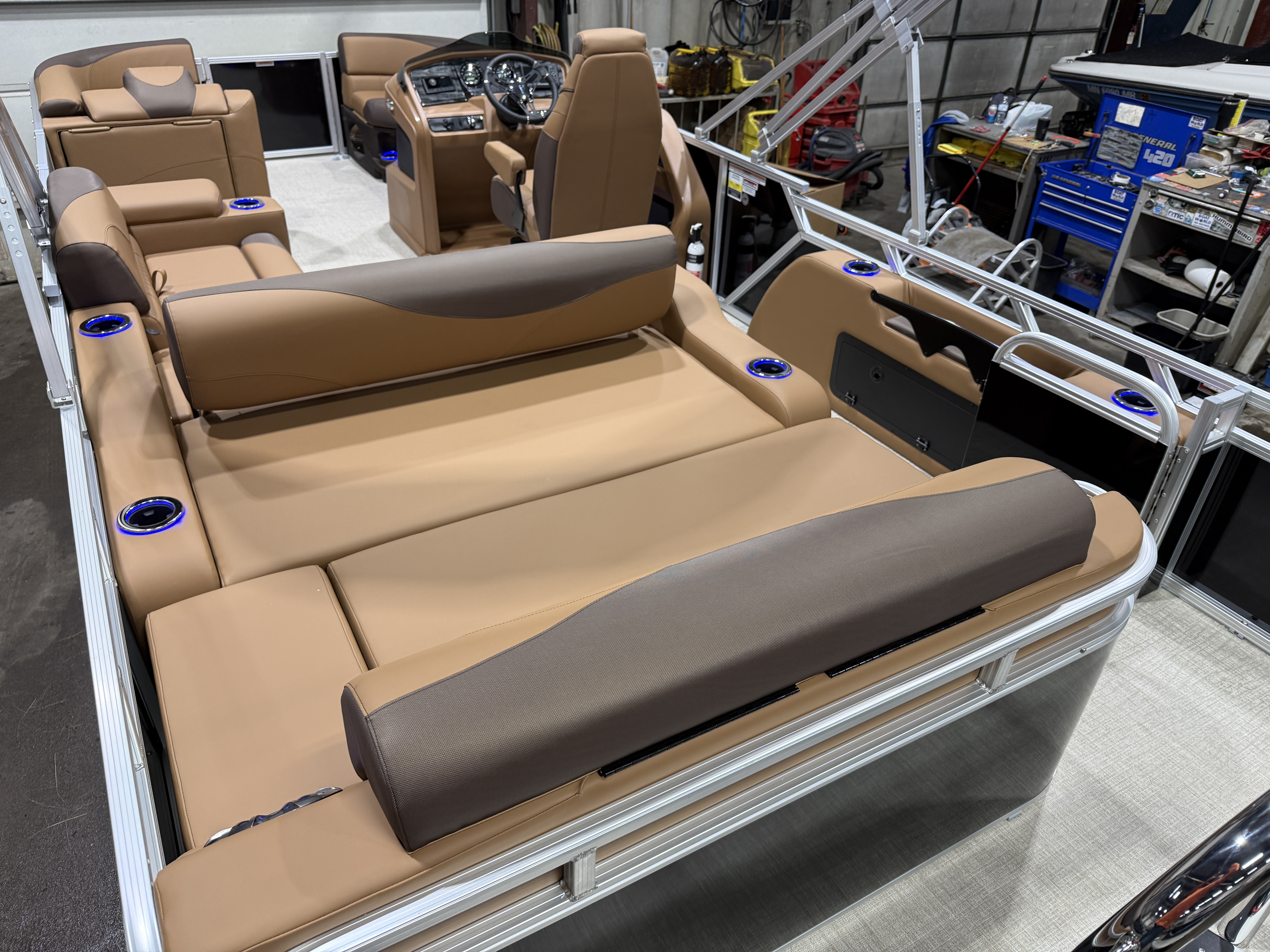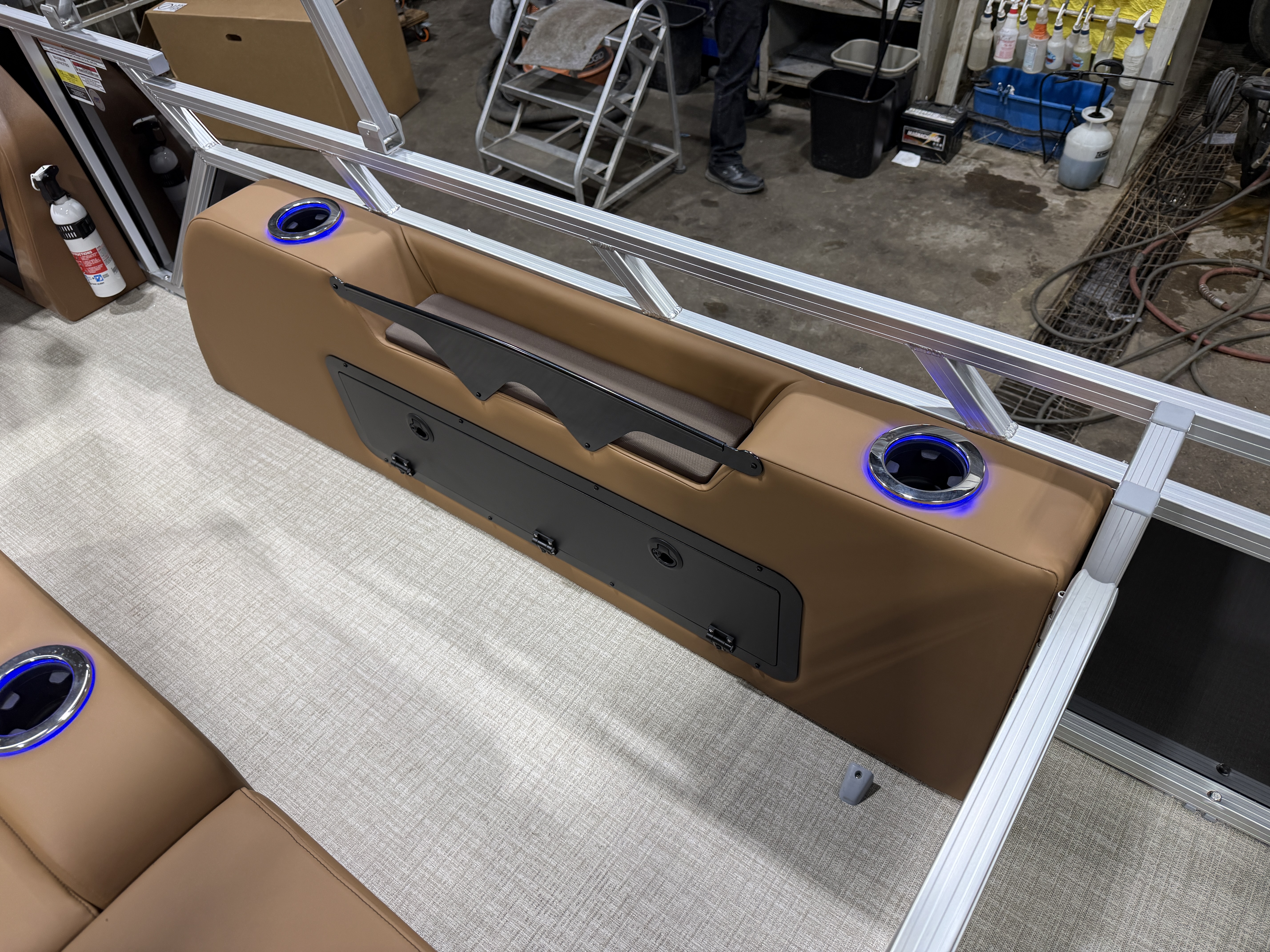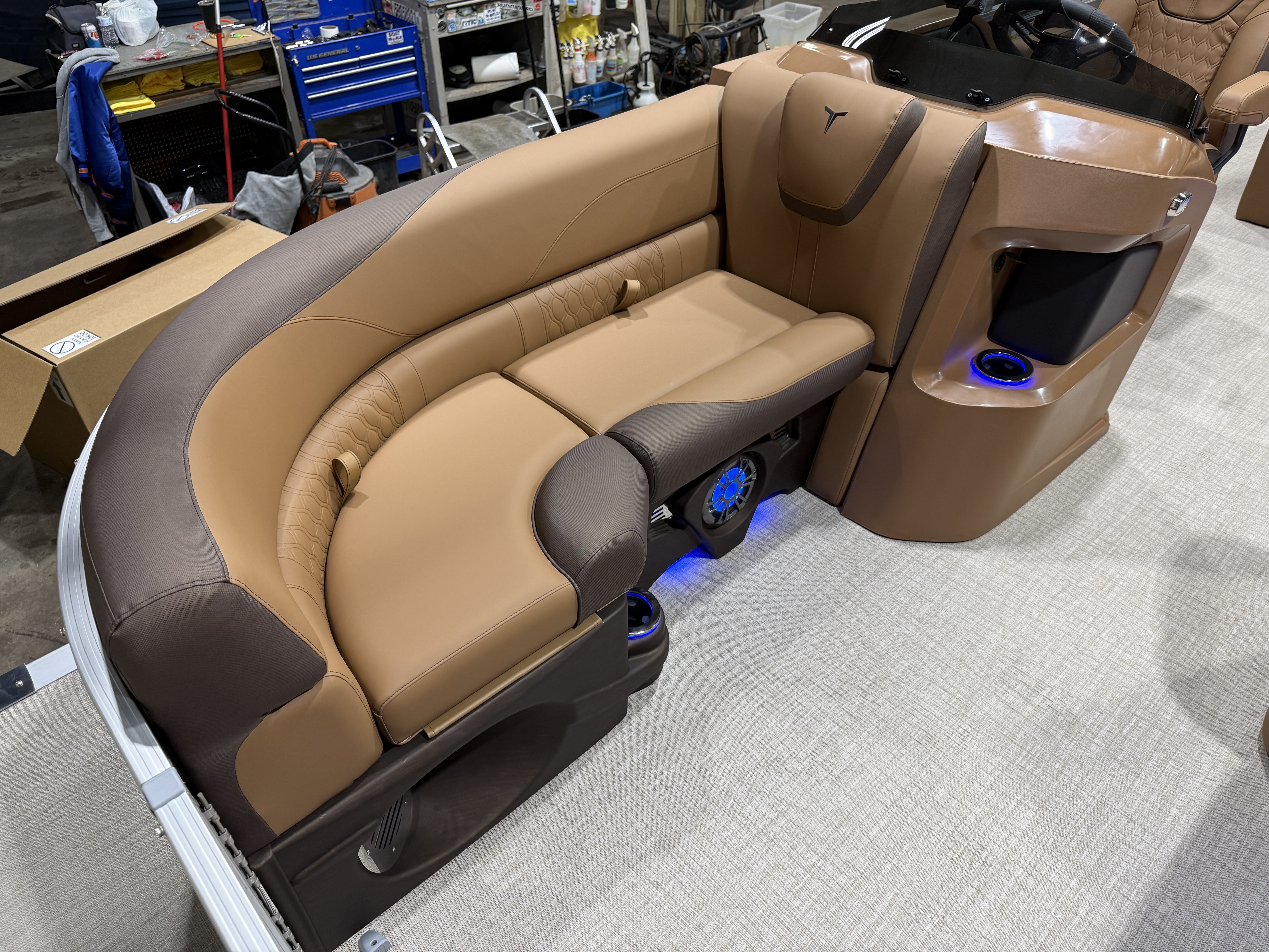 2026 Tahoe LTZ 2385 Versatile Rear Lounger (VRL) Tritoon Pontoon Powered By Honda. This 23' Tri-Toon Has Front Lounge Seating With Storage, Admiral Reclining Captain's Chair, Versatile Rear Lounge Seating With Storage & Built In Speakers, Gated Aft, Riptide Vinyl Flooring, Cognac Interior Package, Platinum Package (Ultrafine Touch Vinyl Upgrade, LED Chrome Smoked Docklights, Polished Corner Caps, Garmin 52CV GPS Depth Finder, Pull Up Cleats, Vent Covers For Cladding, Platinum Edition Special Badging), Gauge Package w/Hour Meter, Bimini Top, New Battery, Side Storage Behind Captain's Chair, Built-In 38 Gallon Gas Tank, Hydraulic Tilt Steering, Lifting Strakes, Underneath Aluminum Sheeting, Mooring Cover, Blue Ice Package (Lighted Cup Holders, Speakers & Mood Lighting), Ski Tow Bar, Multiple Cup Holders, Side Storage Behind Captain's Seat, Fusion Bluetooth Radio w/6 Speakers & Amp, Lillipad Easy Step Ladder, Tilt Steering, Bow & Aft USB Charging Ports, On/Off Battery Switch, Smoked Chrome Logos, Nice Front And Rear Deck, New Battery, Brushed Bronze Seat Cladding. Rated For 12 People.