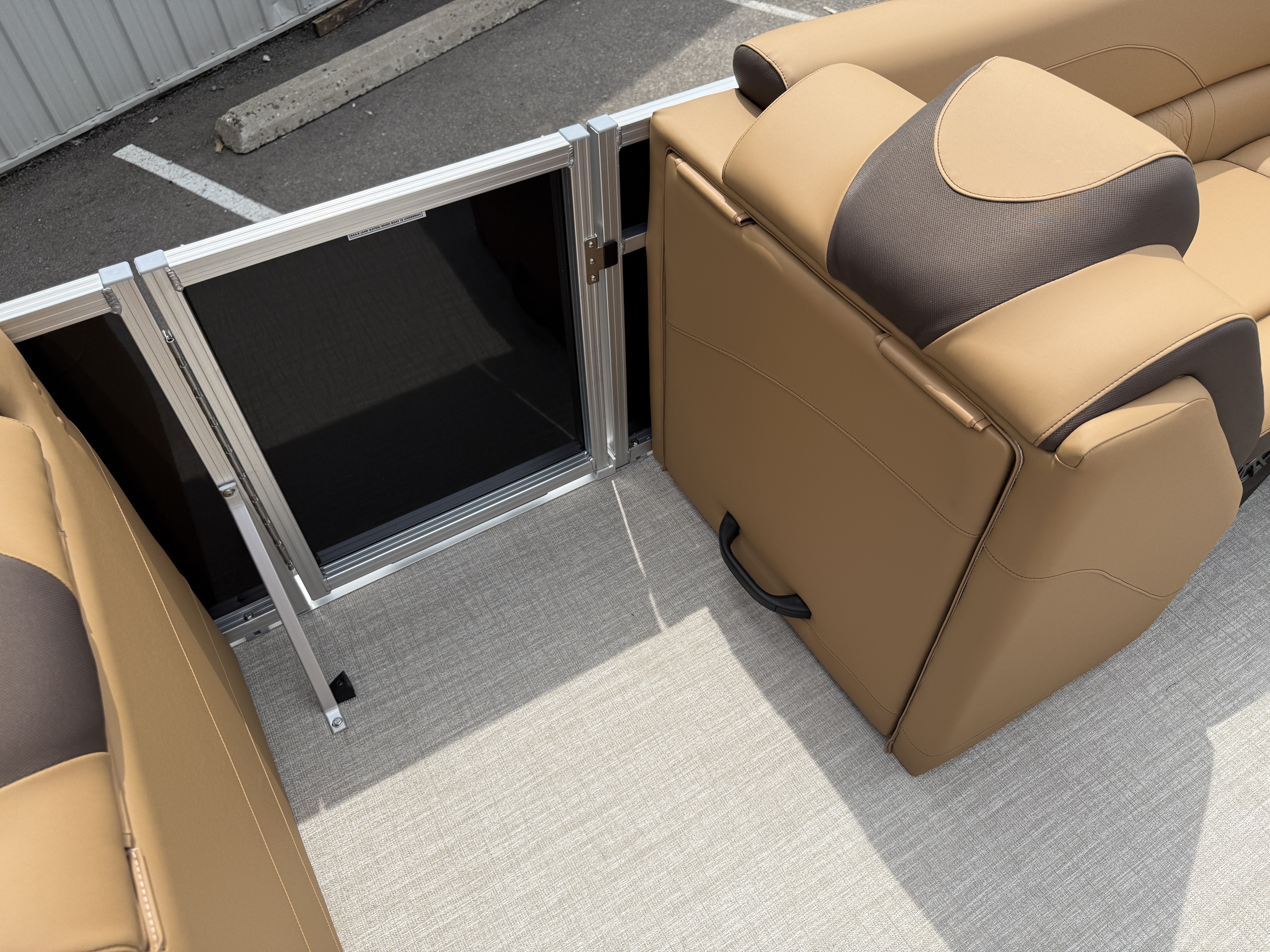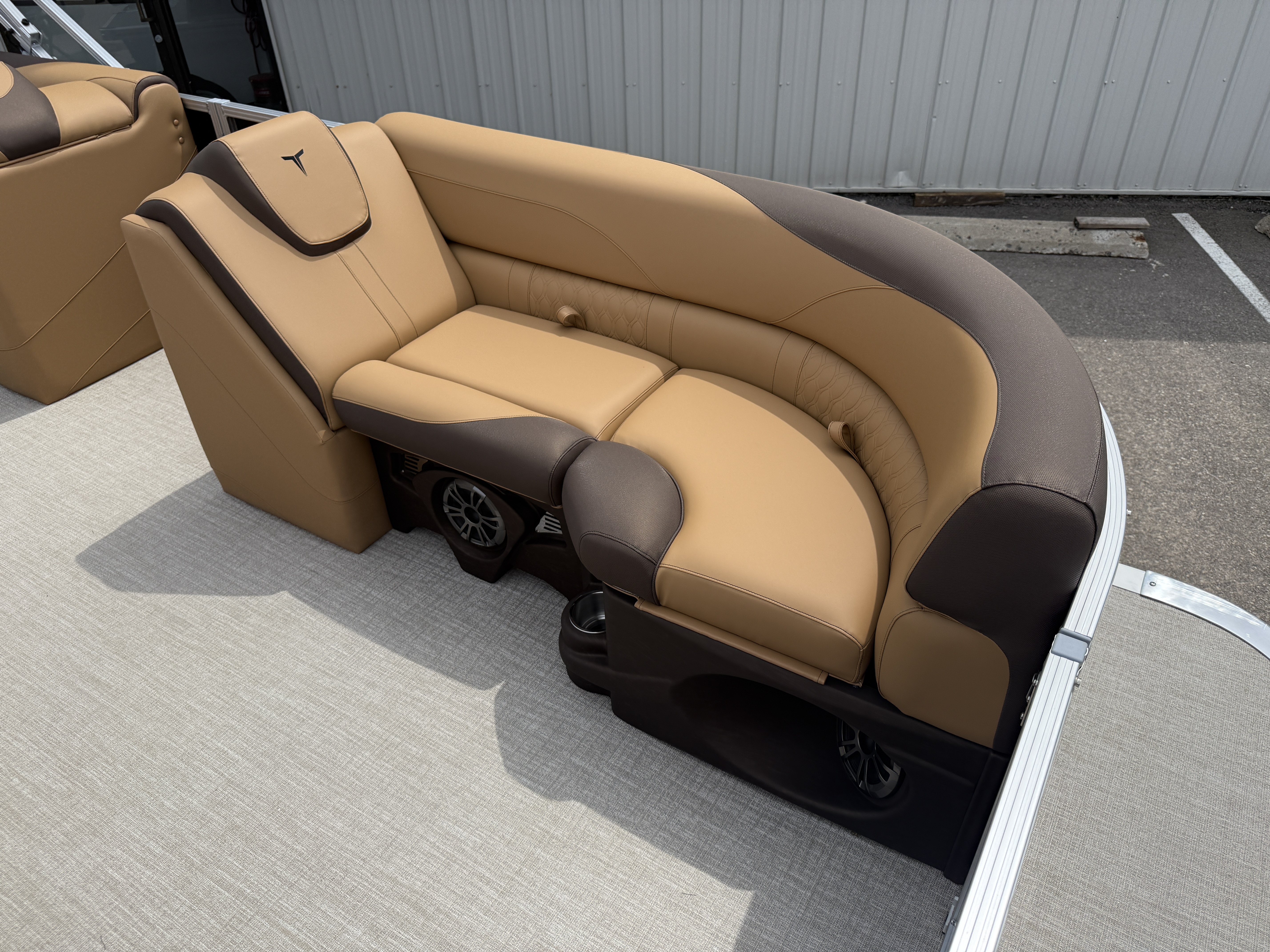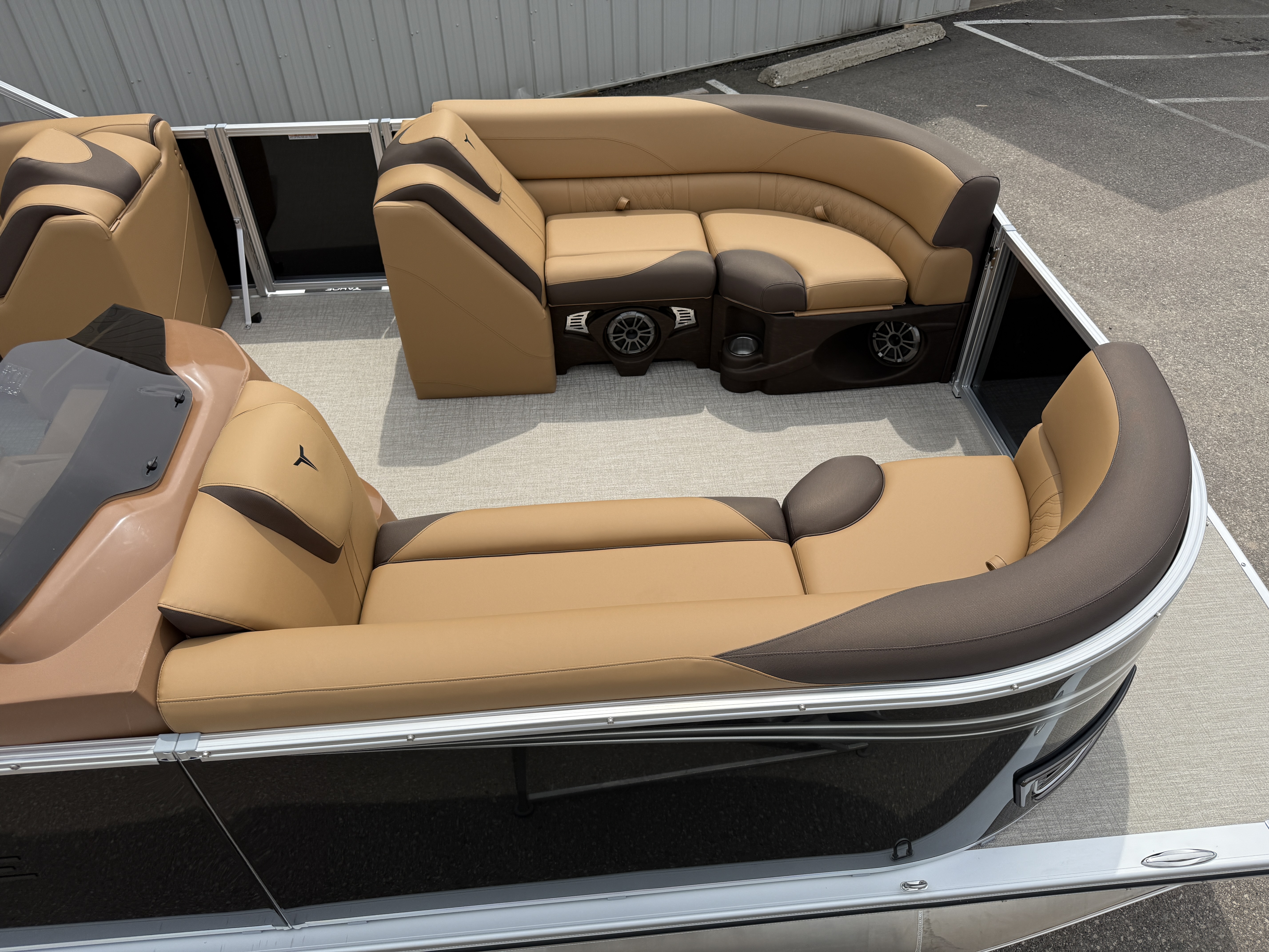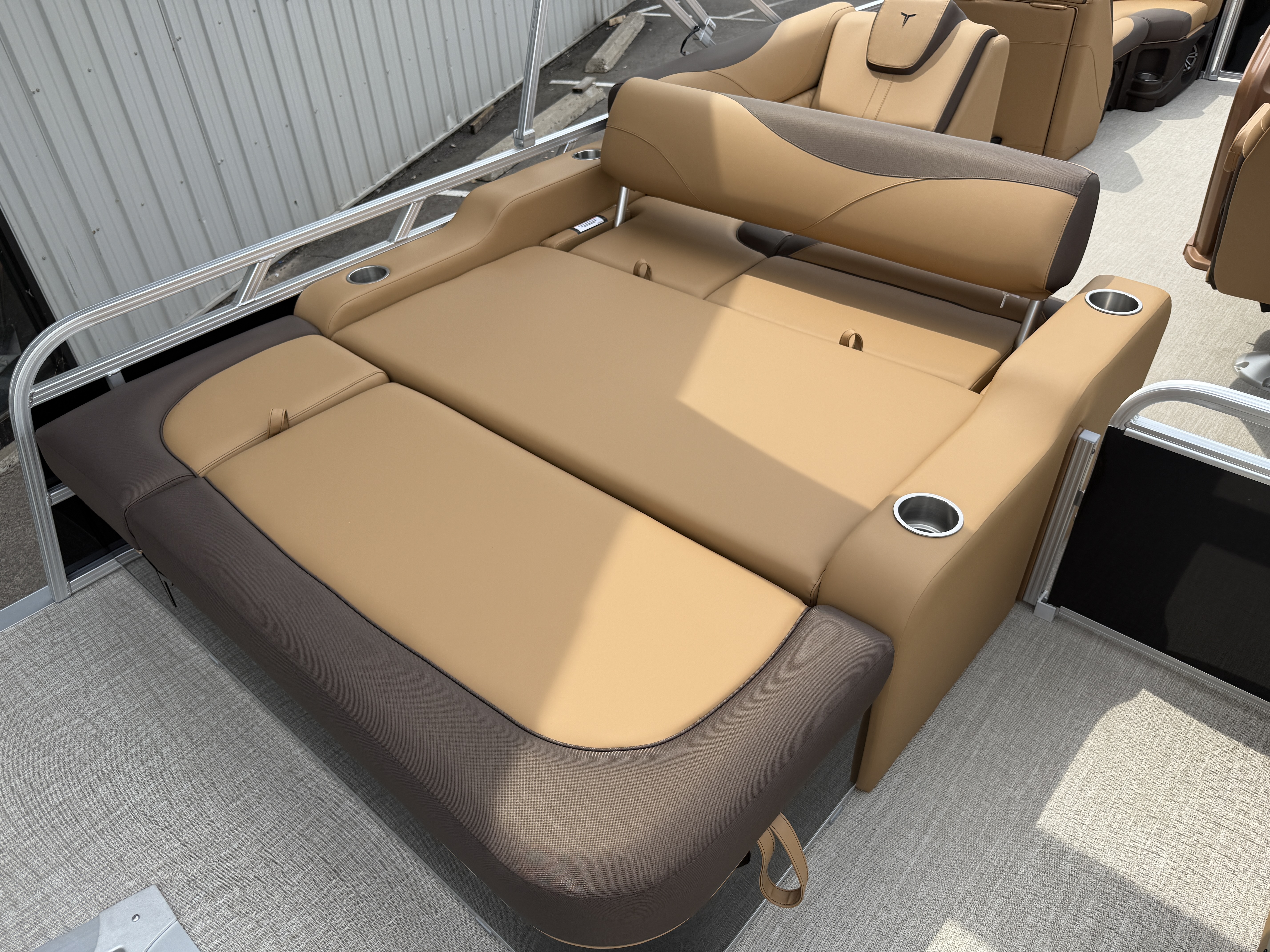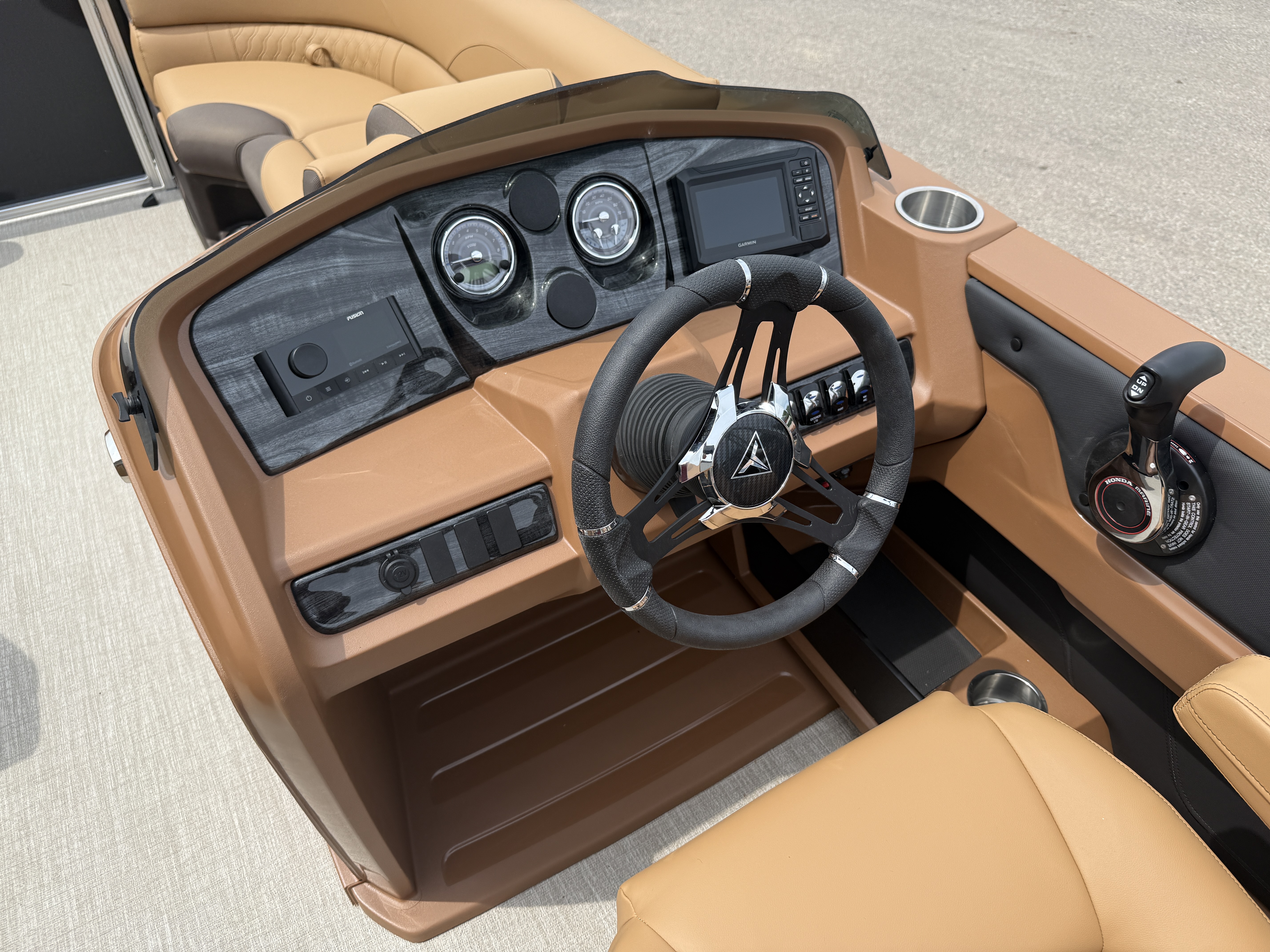 2025 Tahoe LTZ 2385 Versatile Rear Bench (VRB) Swingback Pontoon & Honda 4-Stroke EFI. This Pontoon Has Front Chaise Lounge Seating With Storage, Wrap Around Seating With Storage, Admiral Reclining Captain's Chair, Seating That Turns Into A Bed Or Rear Facing Bench Seating, Rear Swim Deck, Riptide Dune Vinyl Flooring, LTZ Platinum Package (Mooring Cover, Garmin 52CV GPS Depth Finder, Pull-Up Cleats, LED Smoked Chrome Docking Lights, Vent Covers For Cladding) Table, Bluetooth Radio w/6 Speakers, Multiple Cup Holders, 25" Tubes, 10' Bimini Top, Gated Aft, Cognac Interior Package, Bow & Aft USB Charging Ports, Lillipad Easy Step Ladder, Side Storage Behind Captain's Seat, Front Deck. Rated For 11 People.
