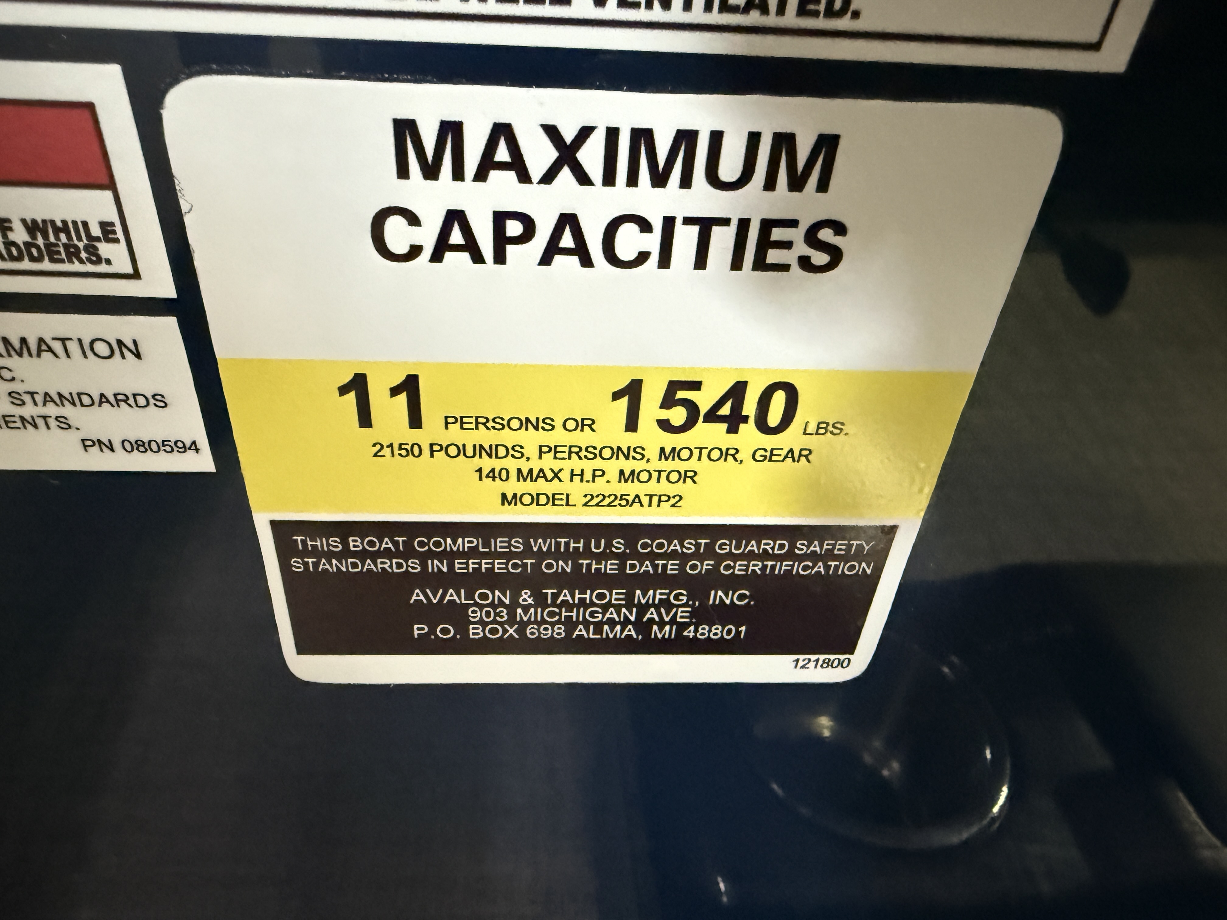 Storage Behind Captain's Seat, Front Deck. Rated For 11 People.