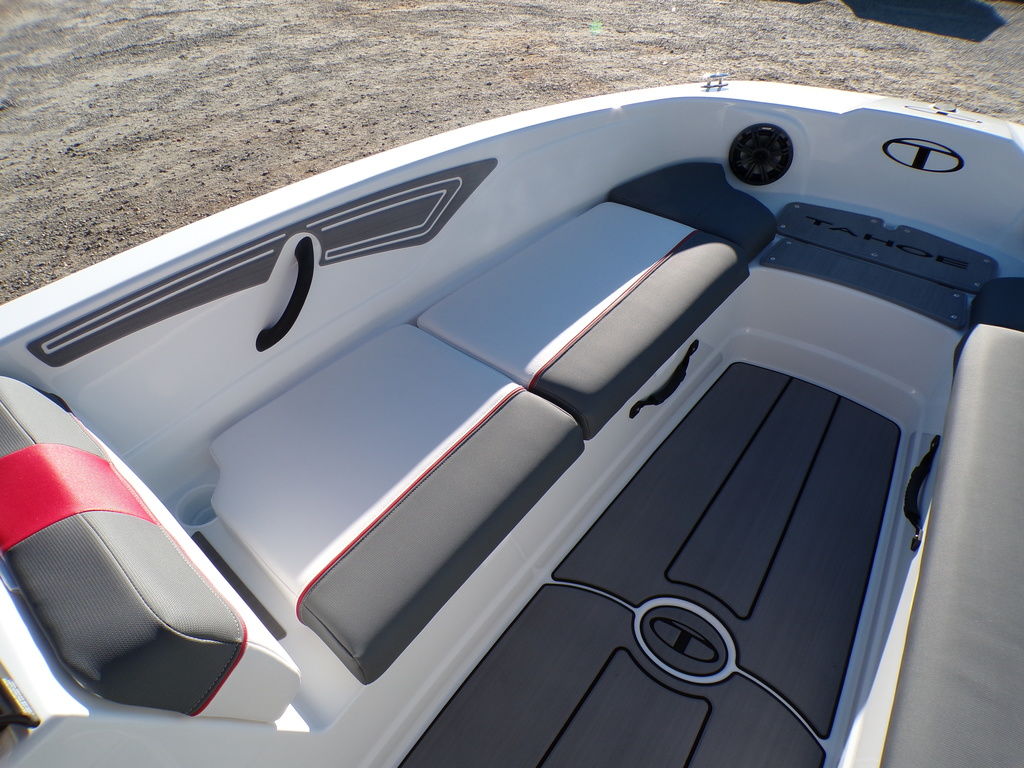 The AWARD WINNING TAHOE® T21 is a fullsize runabout that boasts exciting performance, standout-style, and all-day comfort. From the handcrafted composite construction to the custom seating, the T21 is designed to be a family-fun machine that’s ready for cruising sandbar picnic or watersports action. A standard Kicker® stereo and four speakers crank up the tunes while a new 8” touchscreen multifunction display keeps tabs on your outboard, speed and the water depth. Premium accents, ample amenities and guaranteed fun will have you looking for reasons to get to the lake.