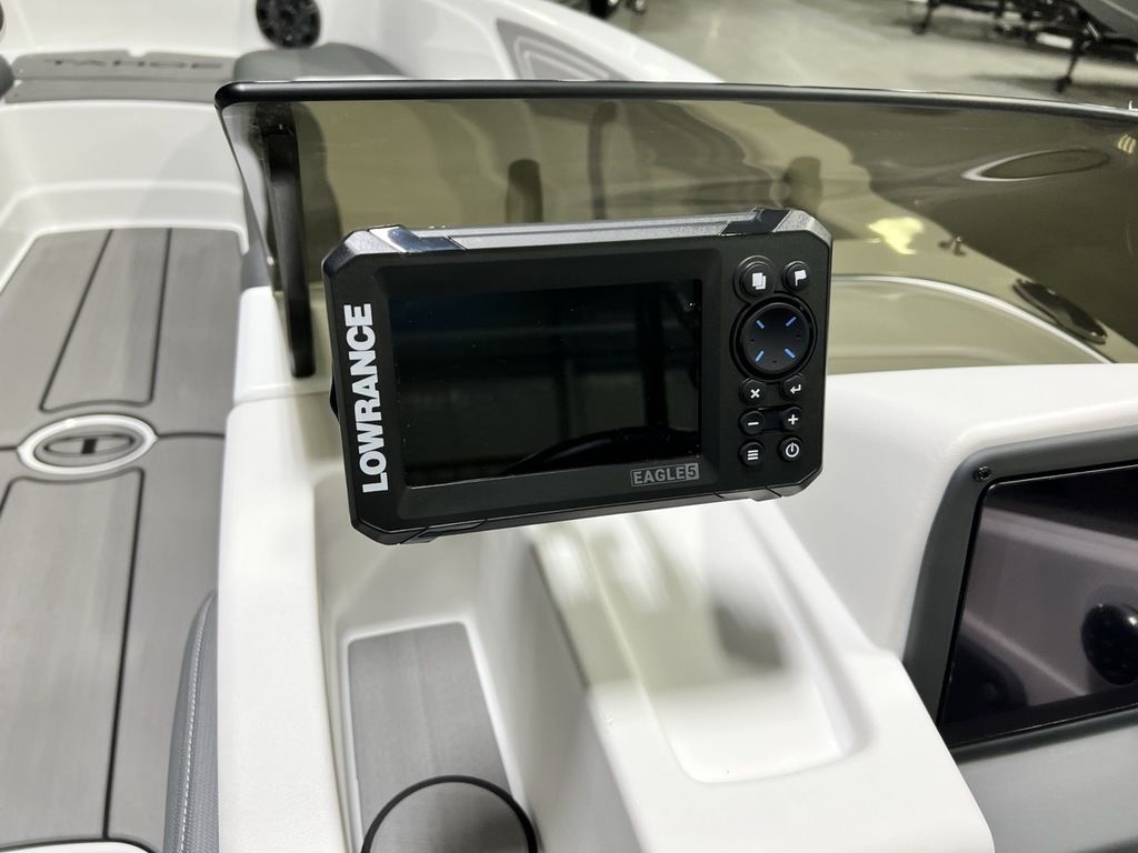 The AWARD WINNING TAHOE® T21 is a fullsize runabout that boasts exciting performance, standout-style, and all-day comfort. From the handcrafted composite construction to the custom seating, the T21 is designed to be a family-fun machine that’s ready for cruising sandbar picnic or watersports action. A standard Kicker® stereo and four speakers crank up the tunes while a new 8” touchscreen multifunction display keeps tabs on your outboard, speed and the water depth. Premium accents, ample amenities and guaranteed fun will have you looking for reasons to get to the lake.