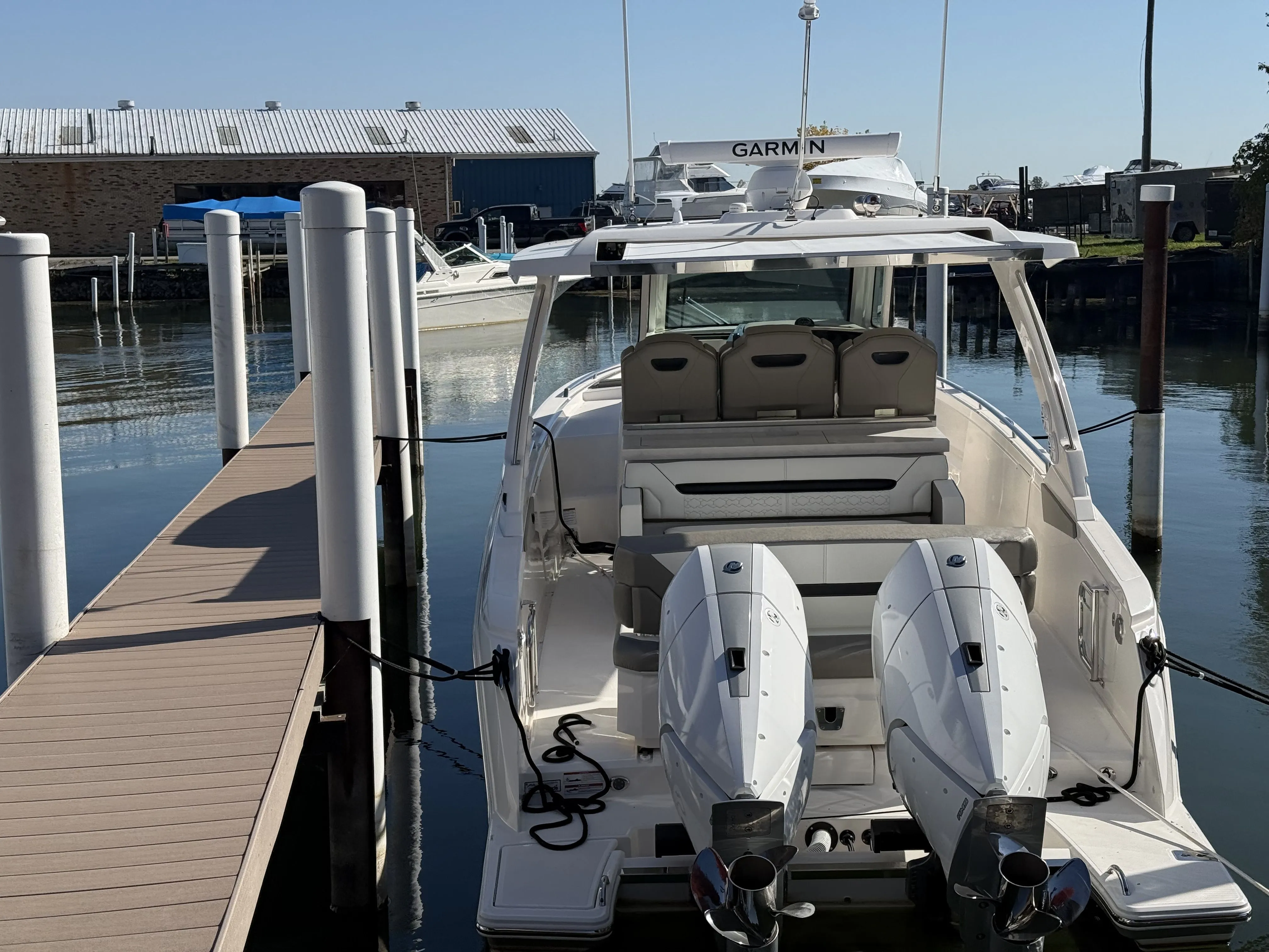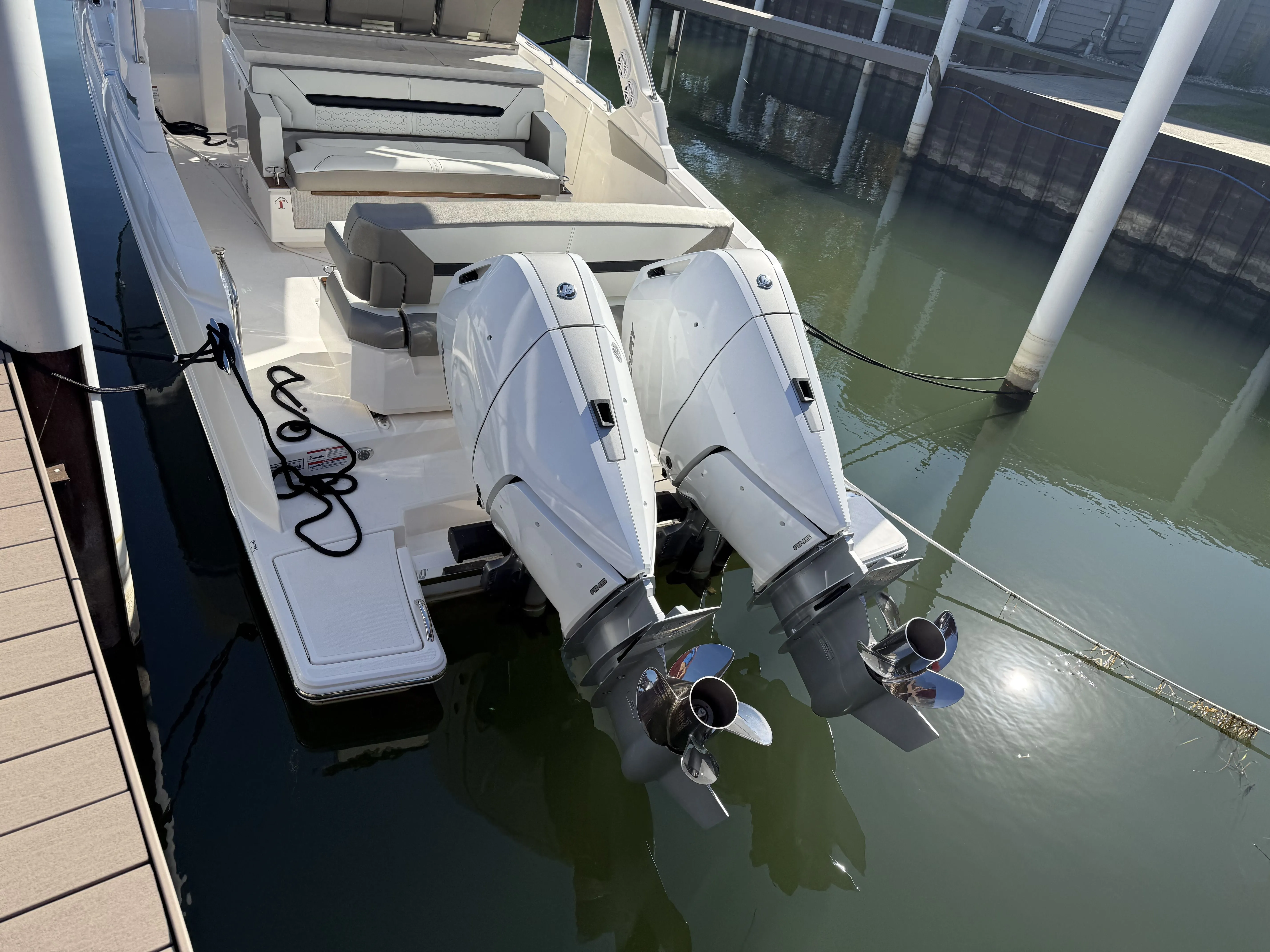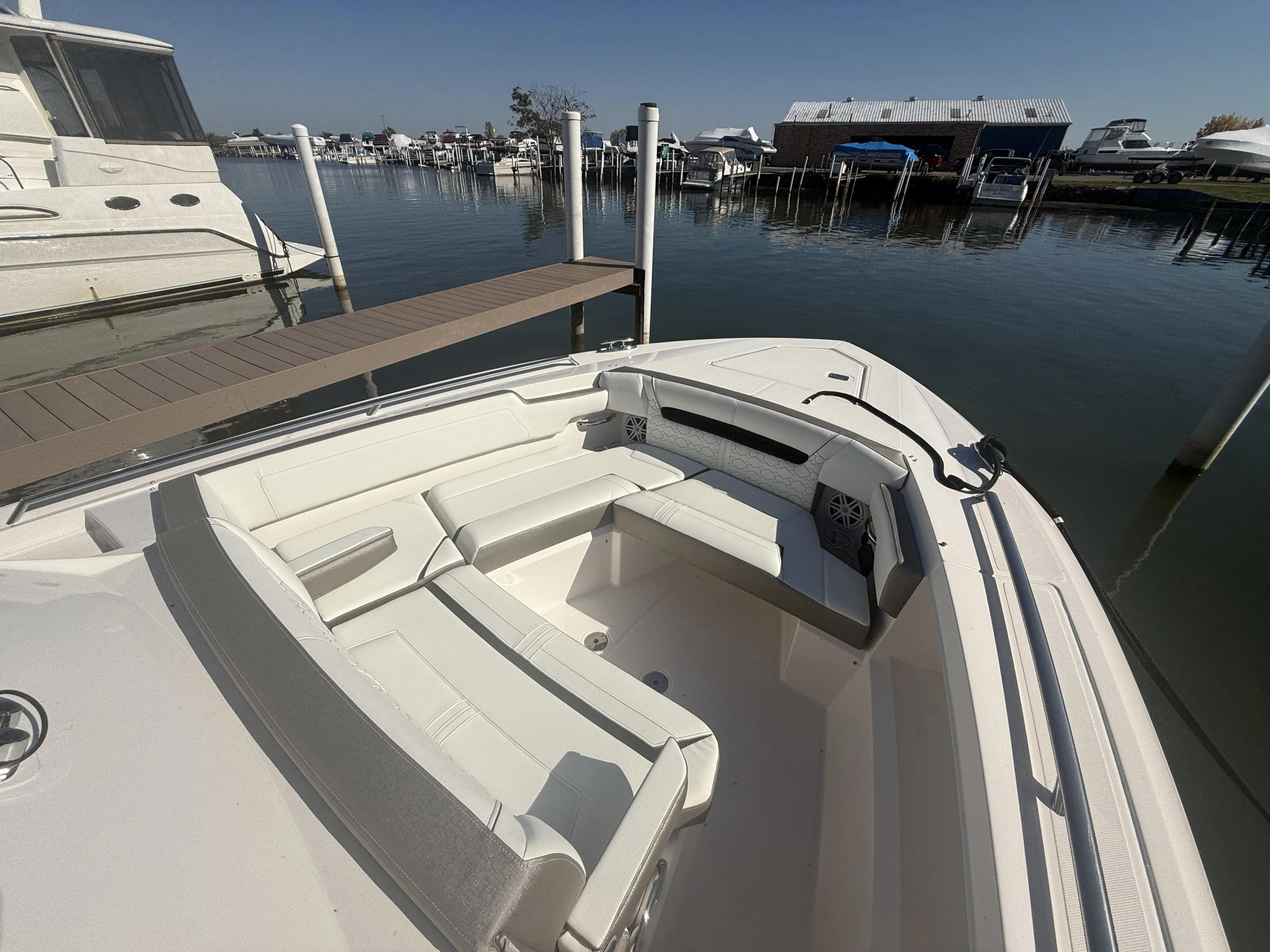 Act fast on this limited-time offer! Complete with walk-around capabilities, outdoor galley and convertible sun pad, the 34 LS continues to define luxury day yachting. Captain and guests will enjoy multiple lounging spaces and social zones, offering relaxation and fun while on the water. Interior, guests will find a quiet refuge complete with sleeping accommodations and head. Athletic, sleek styling combined with thrilling performance ensures one exciting day on the water after another.