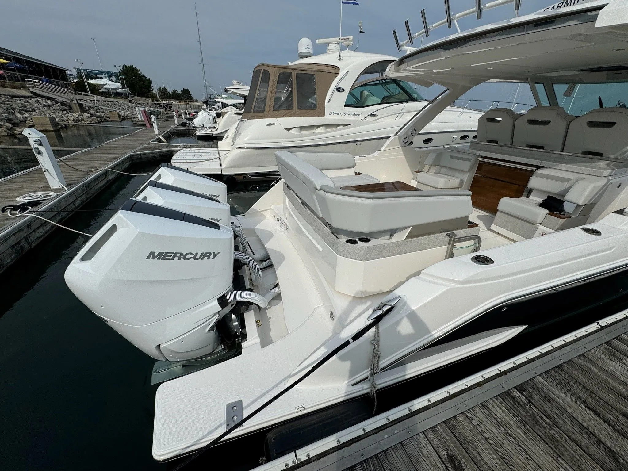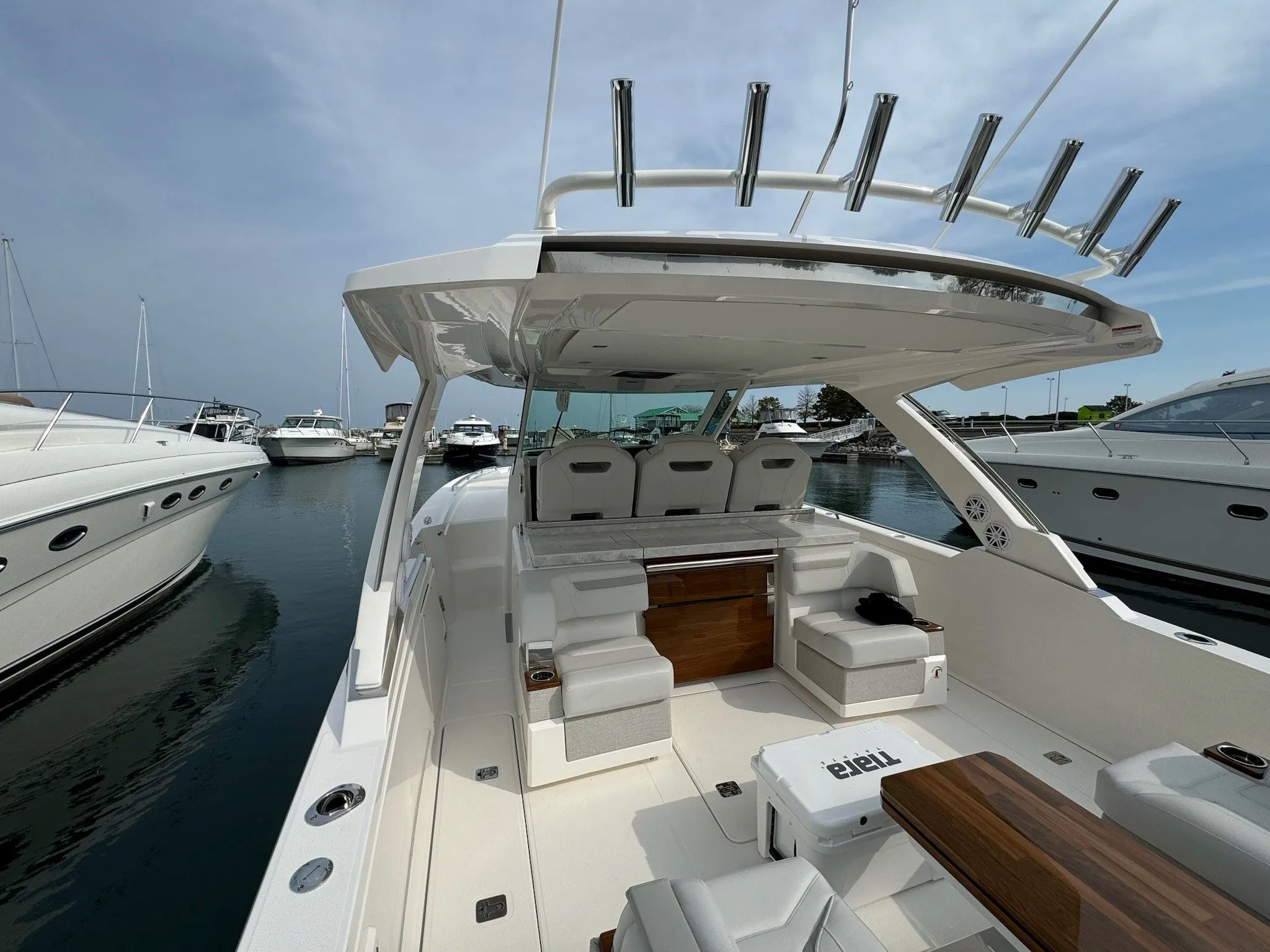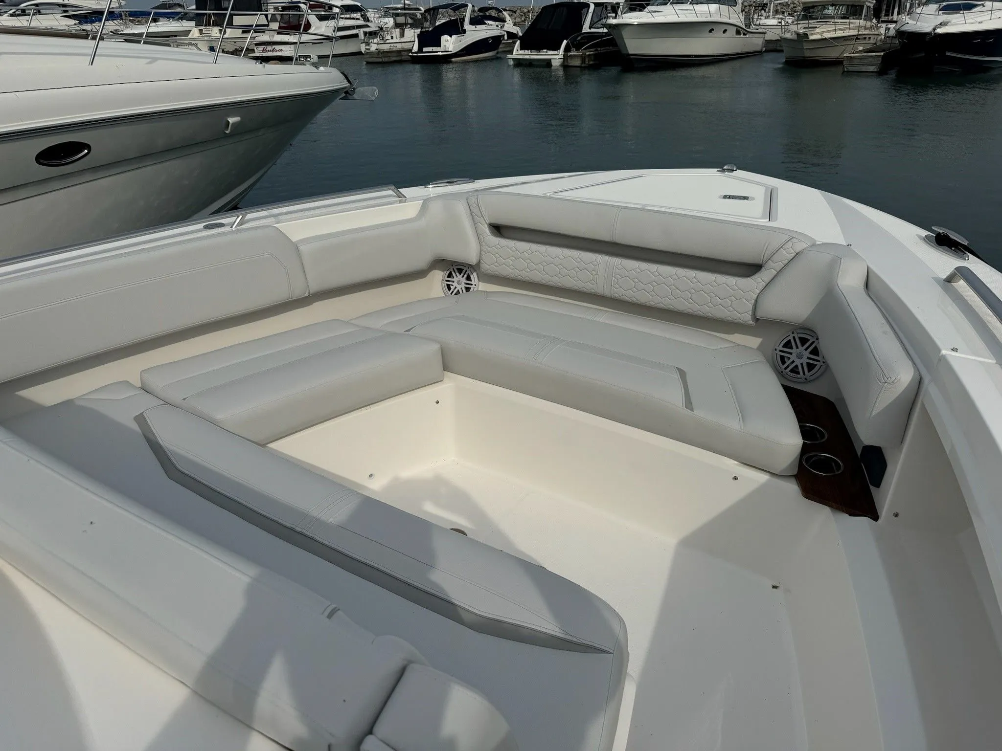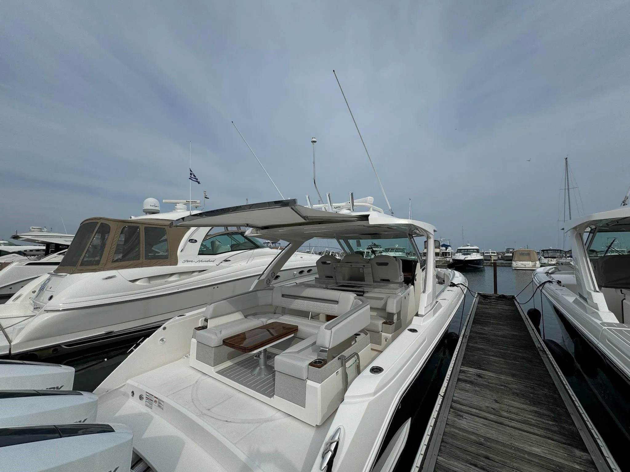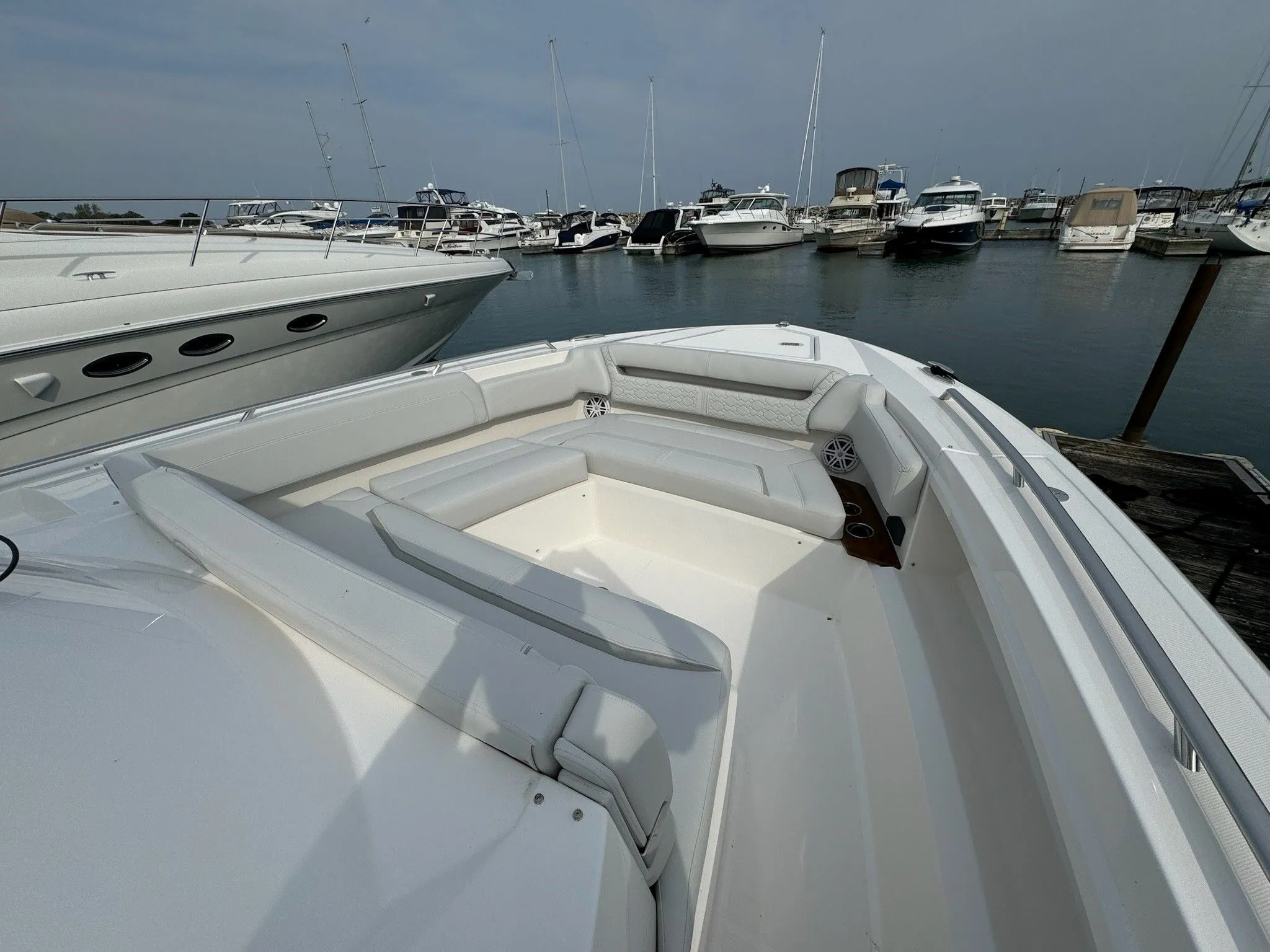 Act fast on this limited-time offer! The 38 LS is the reinterpretation of luxury sport yachting, a fusion of sophistication with the demands of day yachting. The epitome of functionality, its walk-around capabilities, bridge and lounge seats via both port and starboard entries with an island style outdoor galley are just some of the features through which the 38 ls defines a new luxury sport yachting segment. Multiple and easily accessible social zones allow friends and families of all ages to experience a myriad of waterplay activities, exterior grilling and dining delights along with luxury lounging via convertible sun pad, elegant cabin and aft cockpit areas. Wrap around forward bow seating provides more space to laze and enjoy time on the water with family and friends.