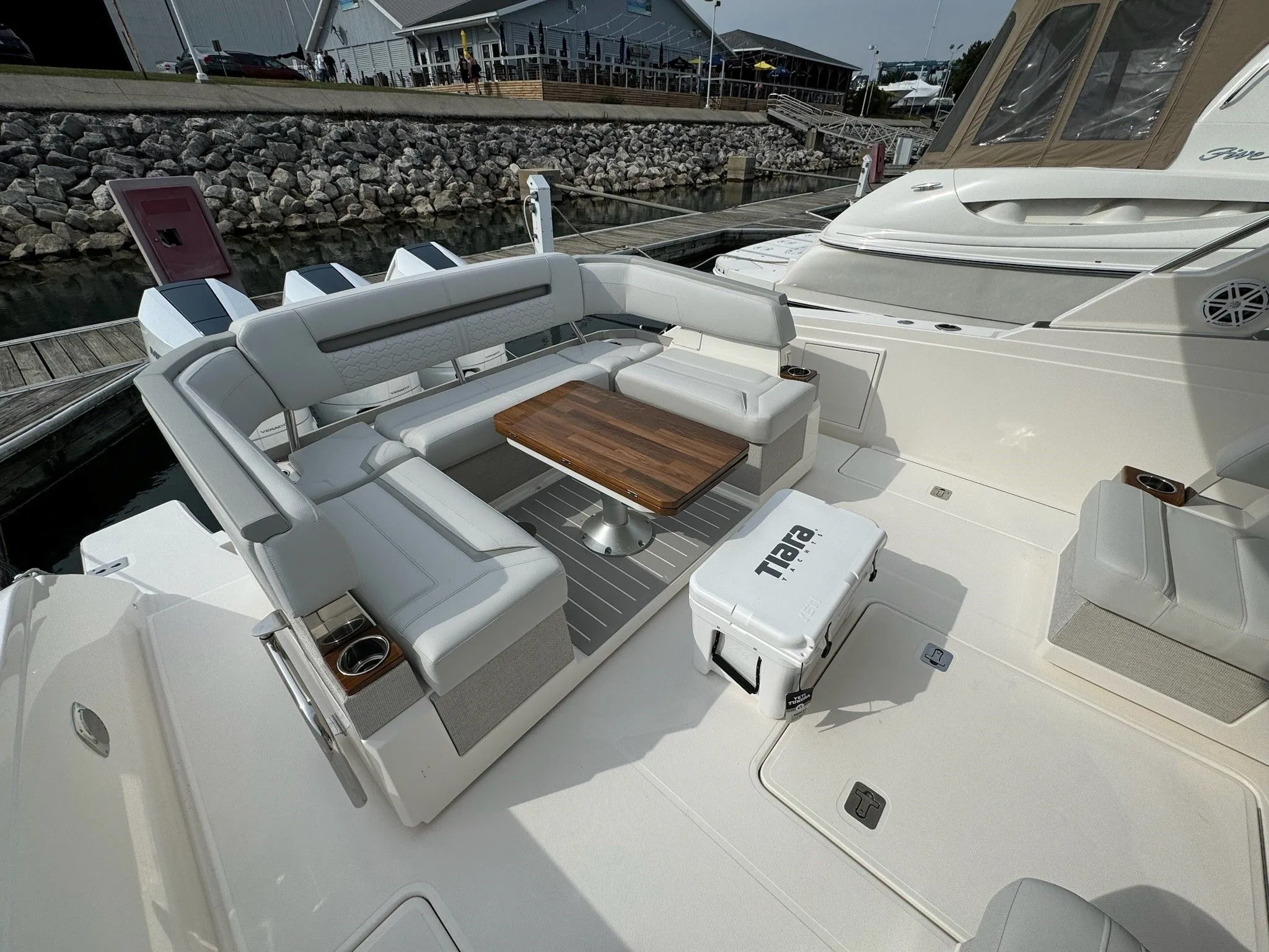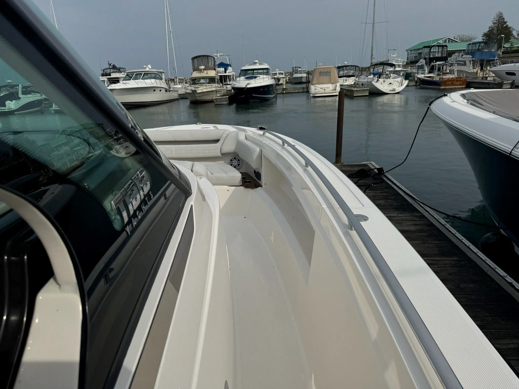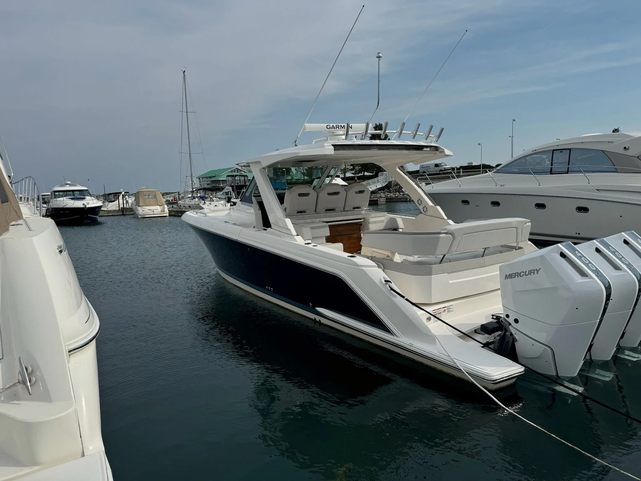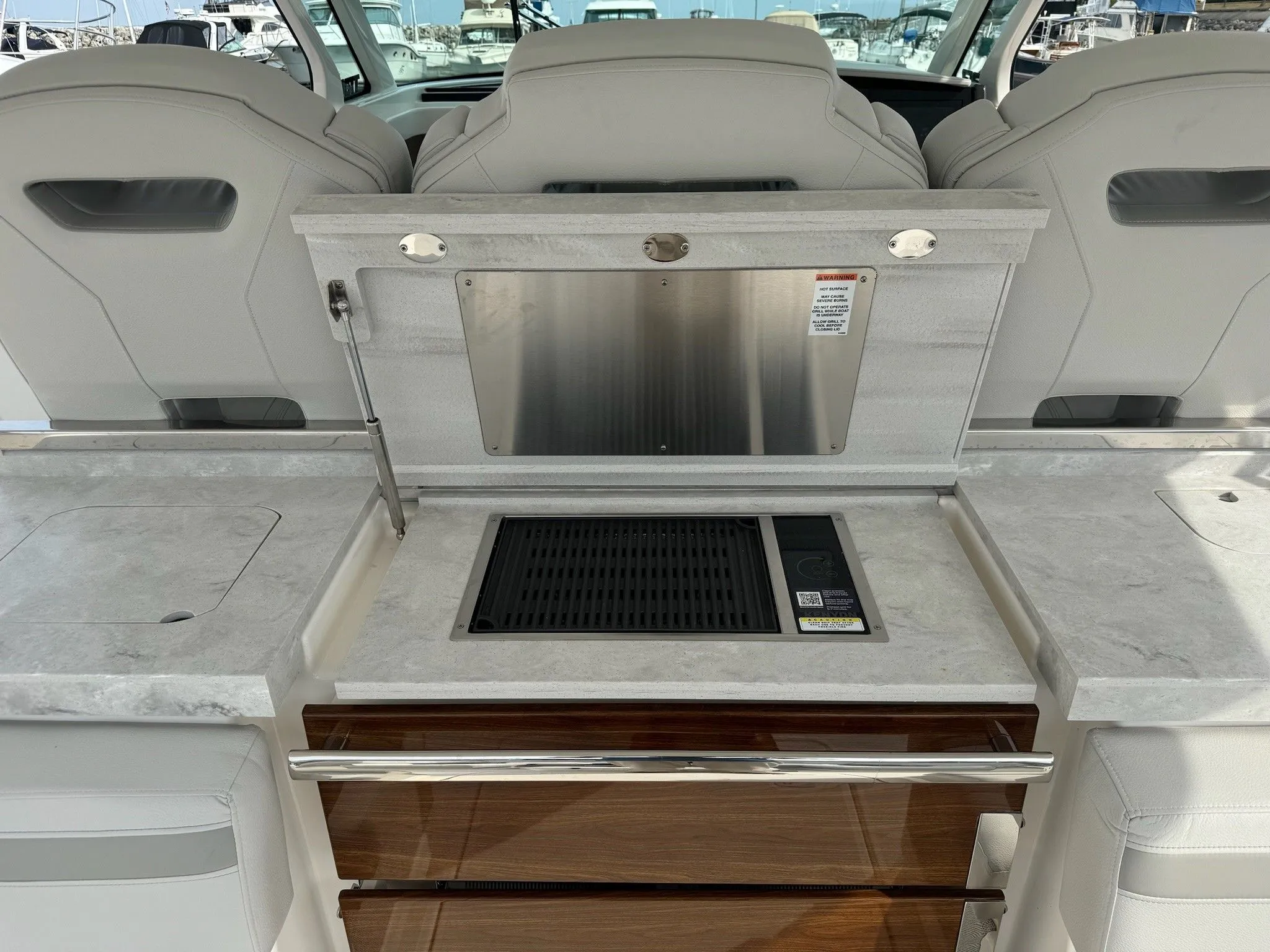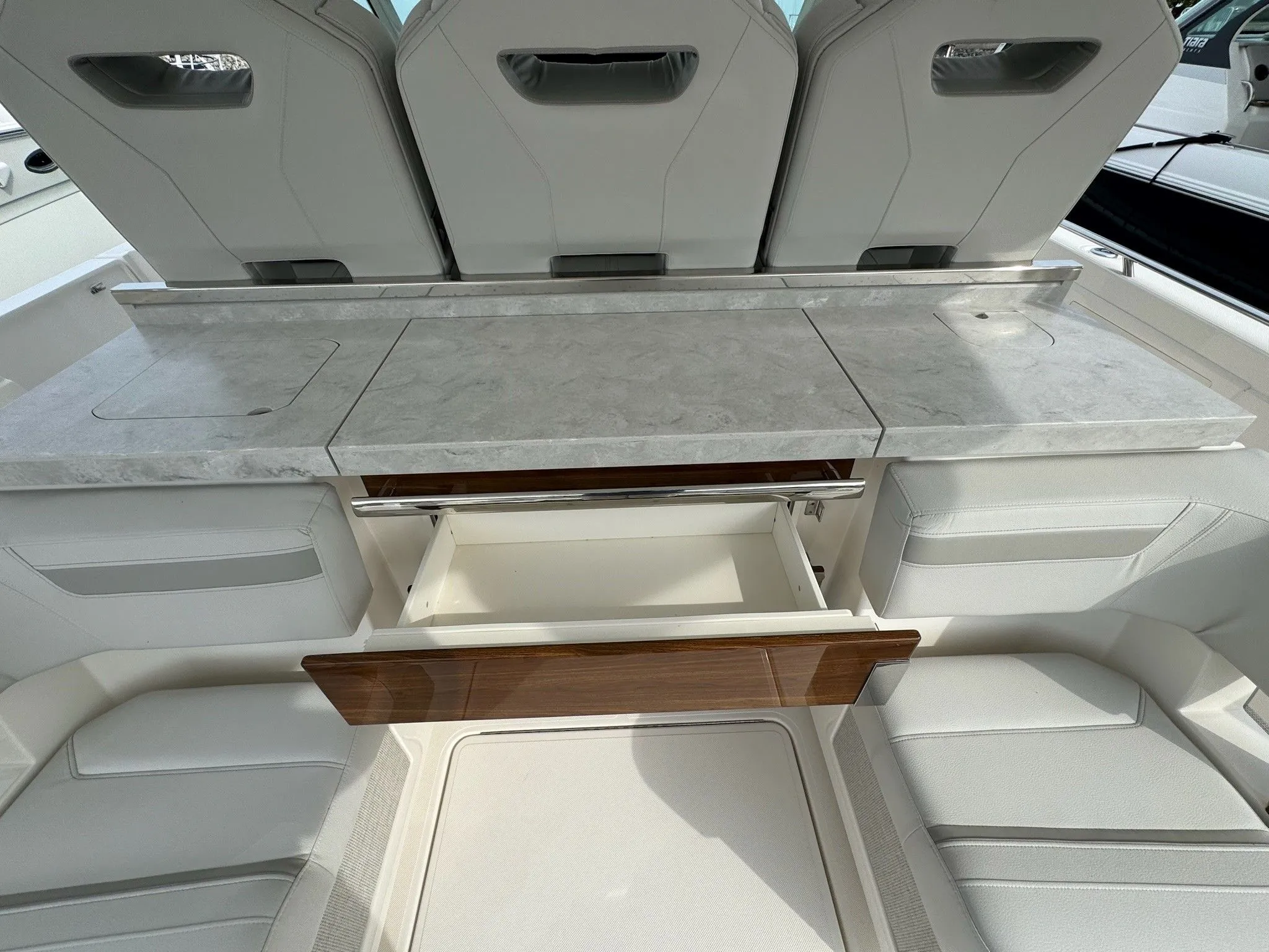 Act fast on this limited-time offer! The 38 LS is the reinterpretation of luxury sport yachting, a fusion of sophistication with the demands of day yachting. The epitome of functionality, its walk-around capabilities, bridge and lounge seats via both port and starboard entries with an island style outdoor galley are just some of the features through which the 38 ls defines a new luxury sport yachting segment. Multiple and easily accessible social zones allow friends and families of all ages to experience a myriad of waterplay activities, exterior grilling and dining delights along with luxury lounging via convertible sun pad, elegant cabin and aft cockpit areas. Wrap around forward bow seating provides more space to laze and enjoy time on the water with family and friends.
