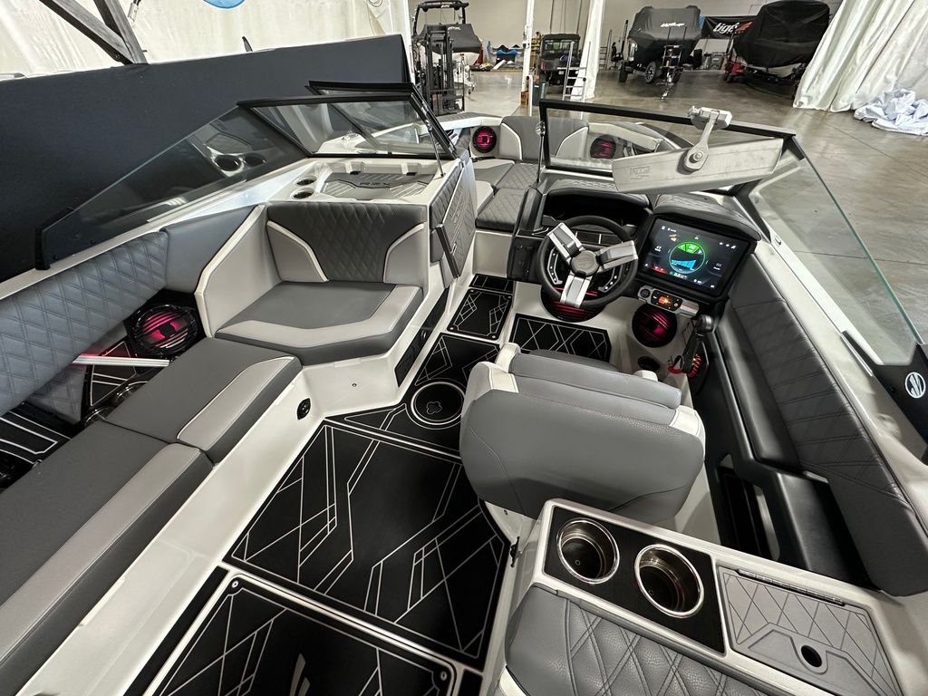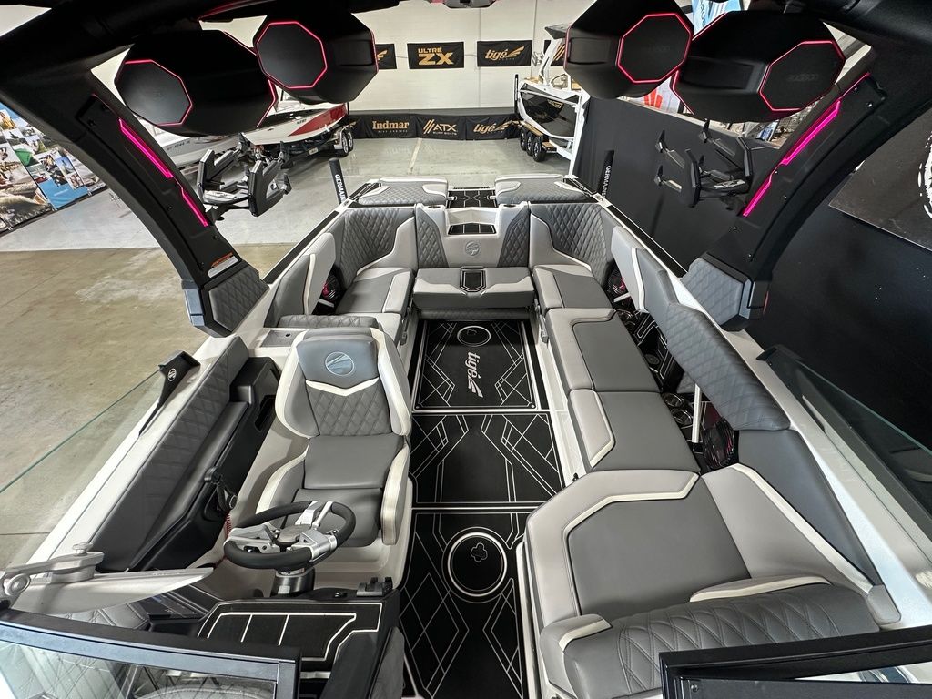 Expand your expectations with the 24RZX. Exuding confidence, its razor edge design is complemented by its distinct lines and lush double diamond stitching. With a culmination of our latest advancements, the 24RZX goes big, not just in size but in performance, surf waves, luxury, storage, and freeboard. If you crave power, state-of-the-art technology, and want to stand out - the 24RZX is the boat for you.