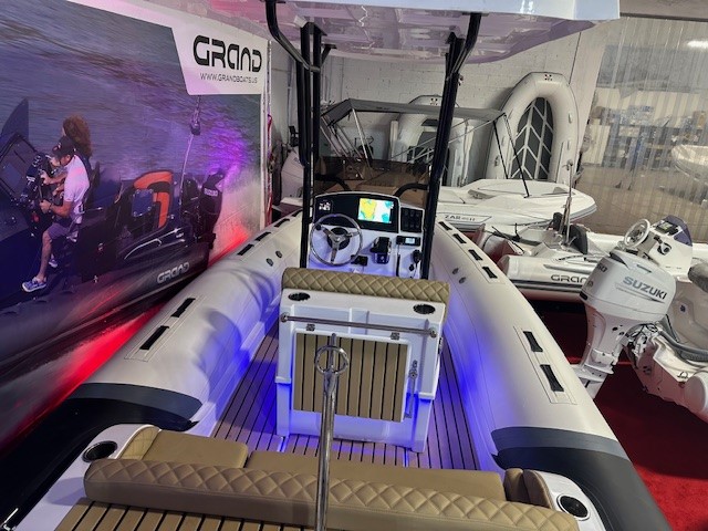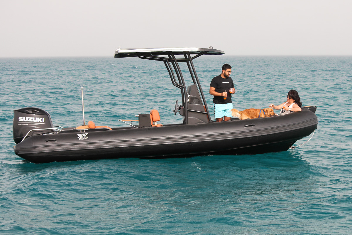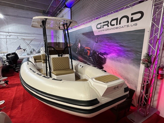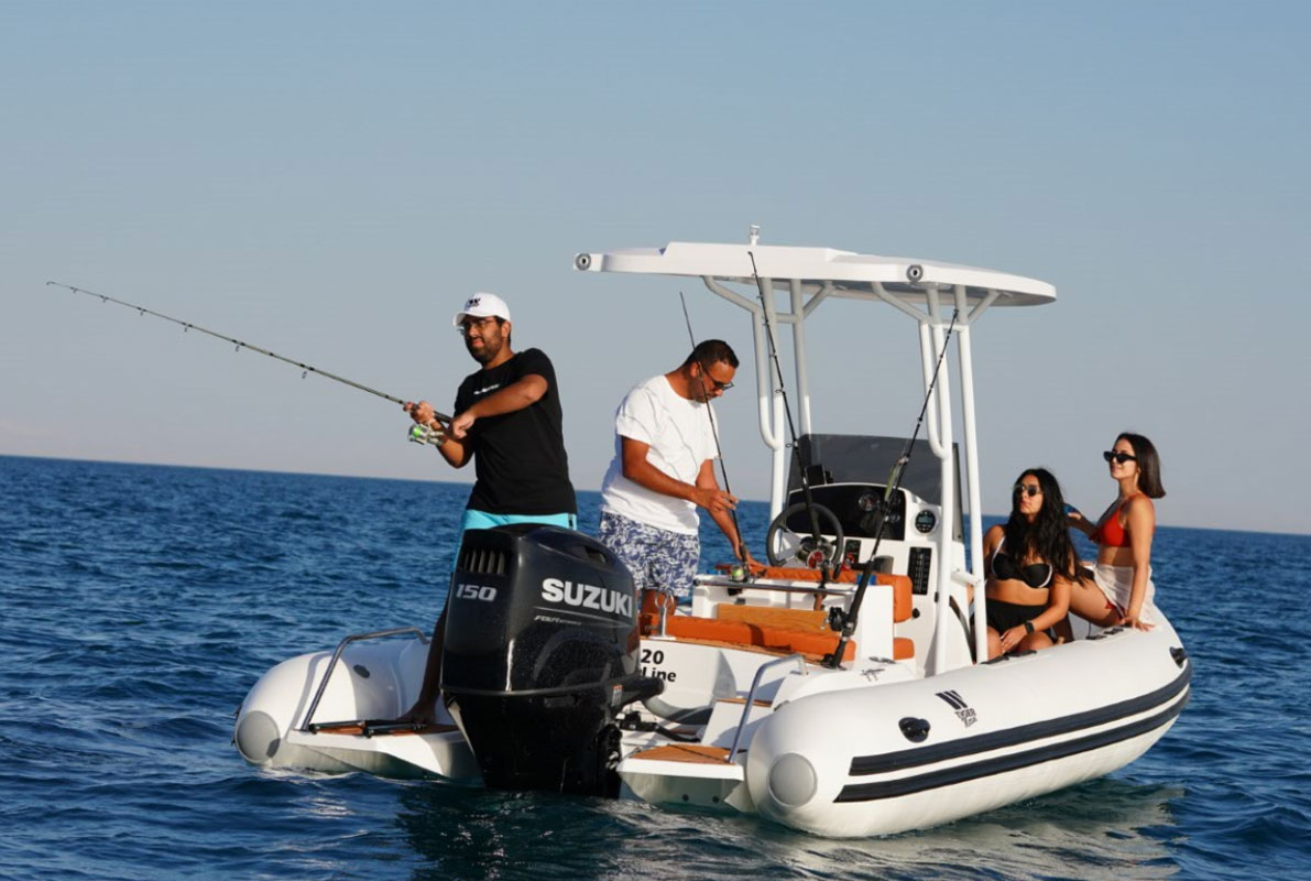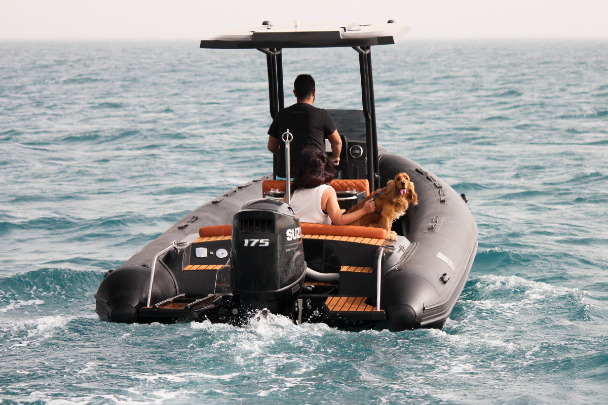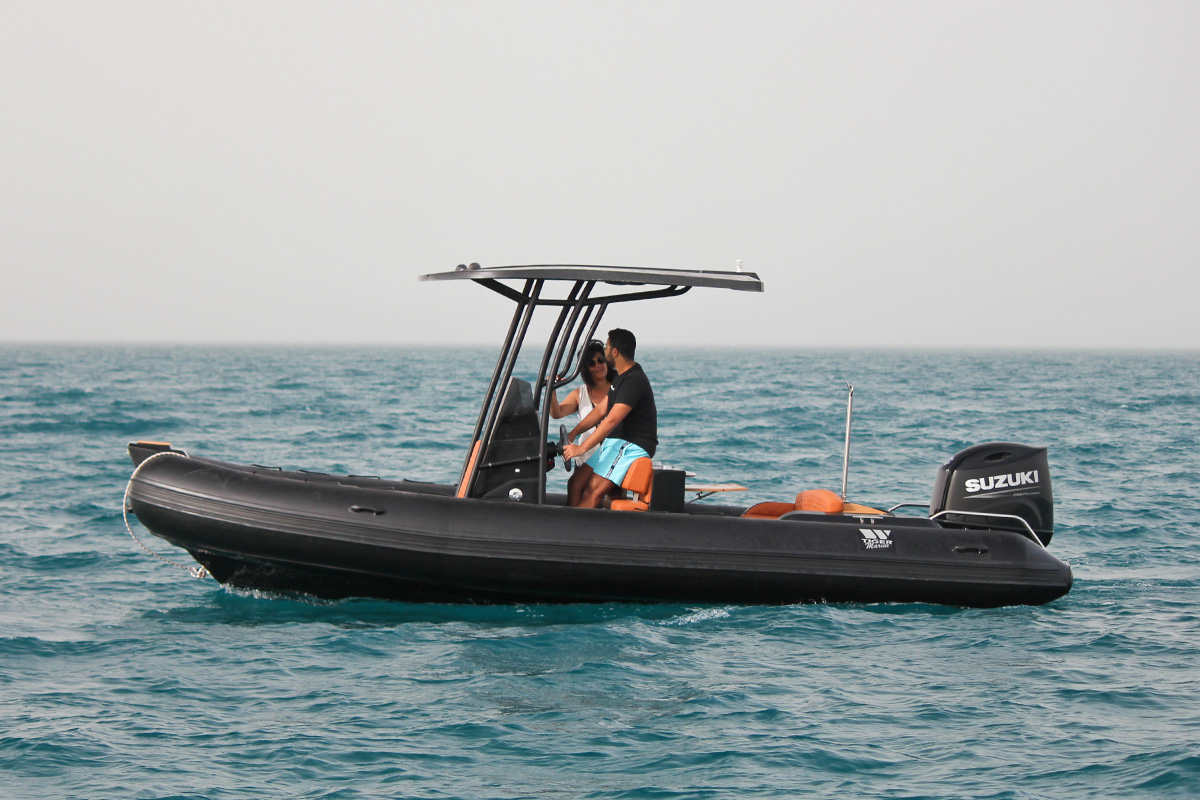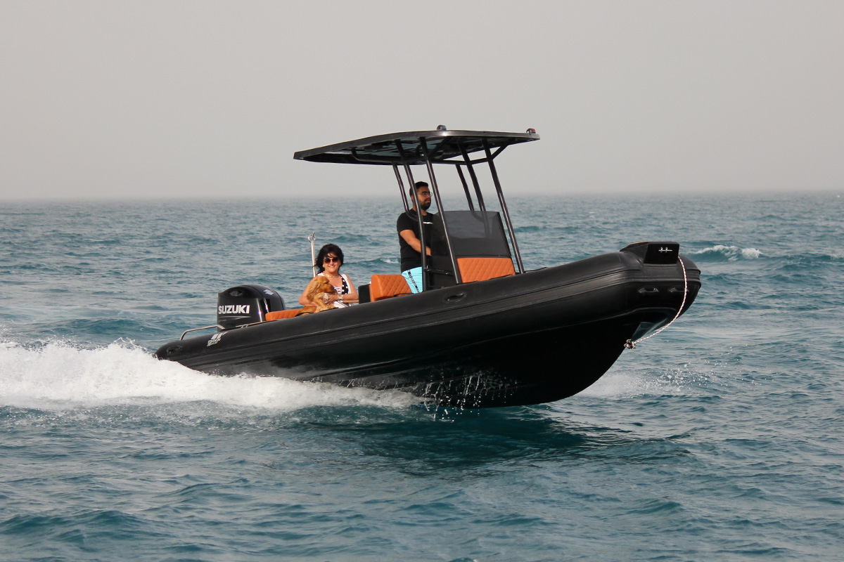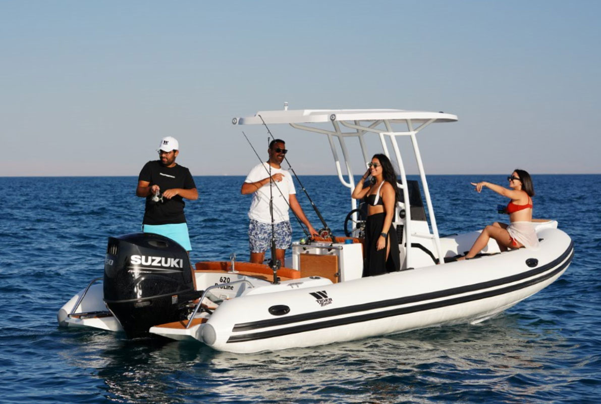 The Tiger Marine 620 PL is stocked with hypalon tube. SeaDeck faux teak, Silvertex cushion set, ski-pole, Nav lights, Bilge Pump, Battery system with cutoff switch, Fiberglass T-top with aluminum frame. SS rod holders. SS cup holders, swim platforms with SS hadrails, sundeck, LED deck lights.