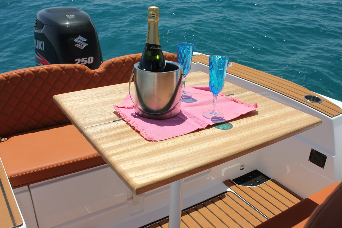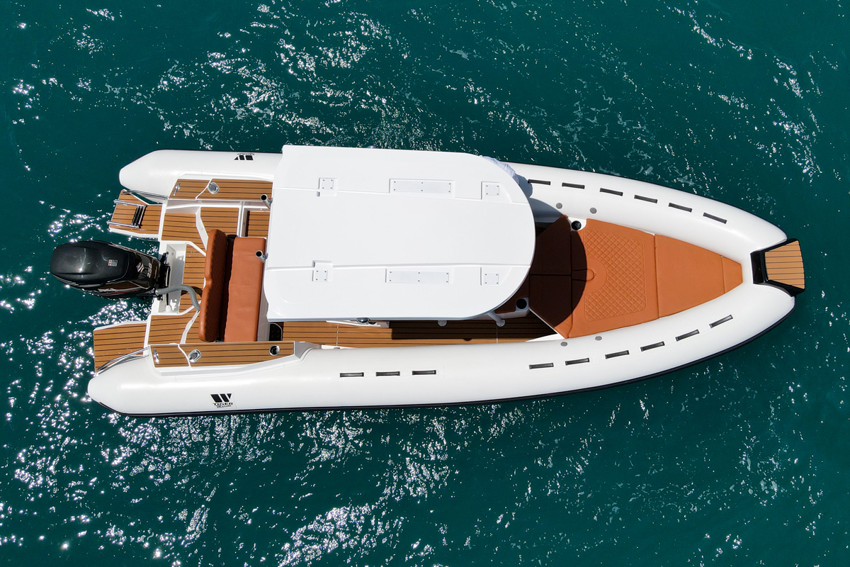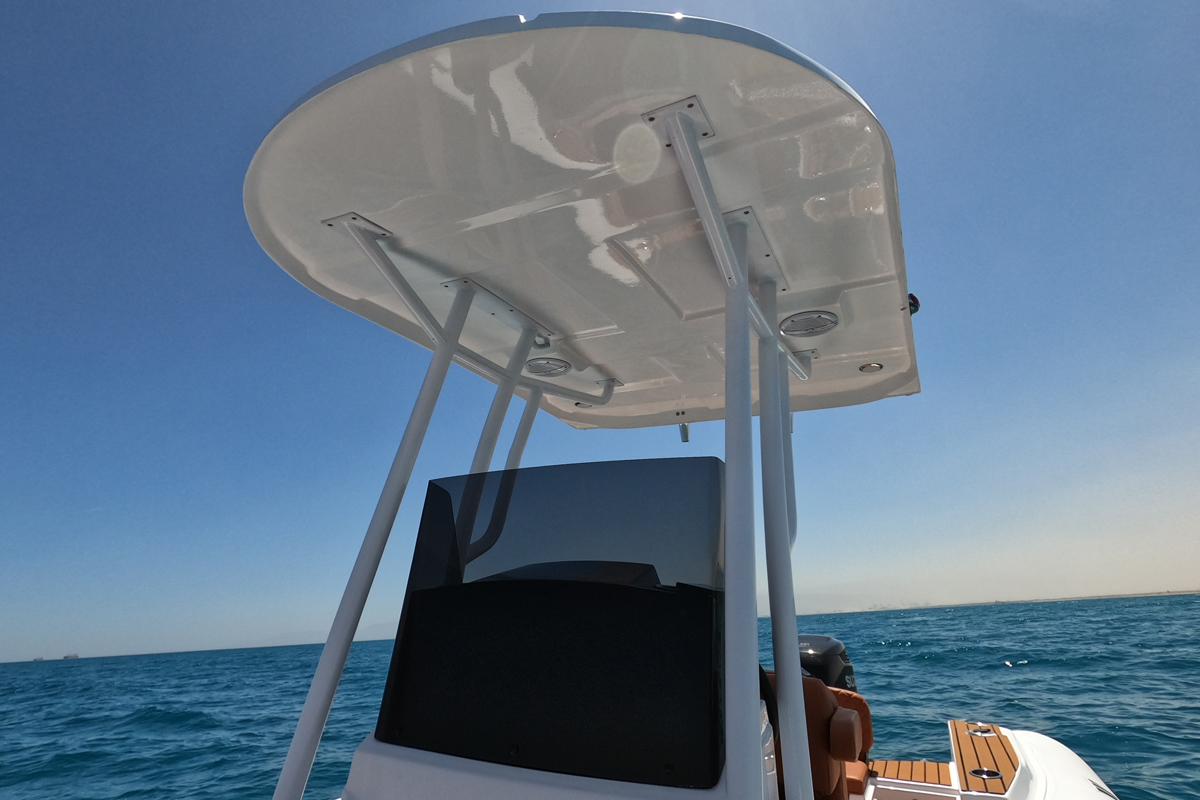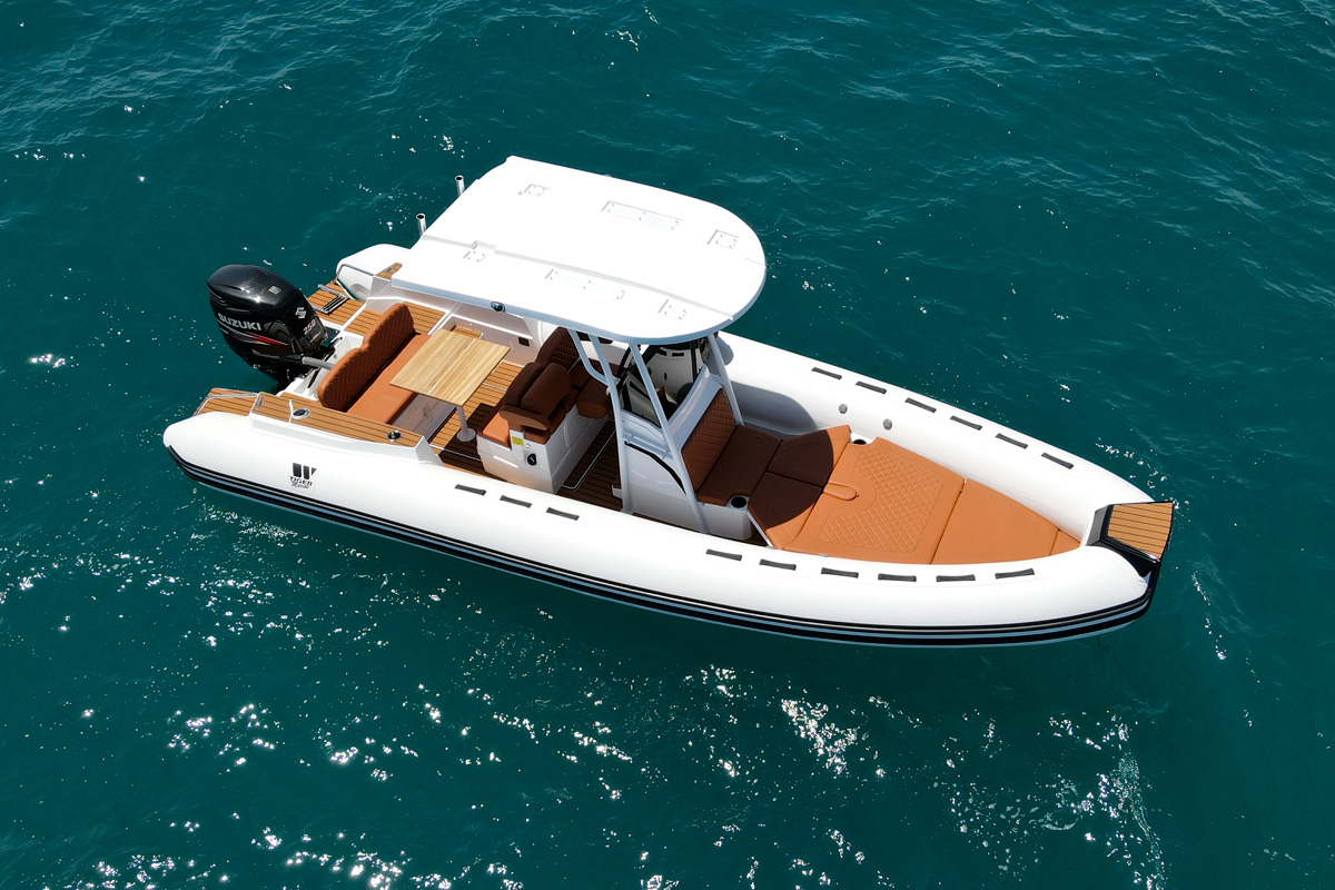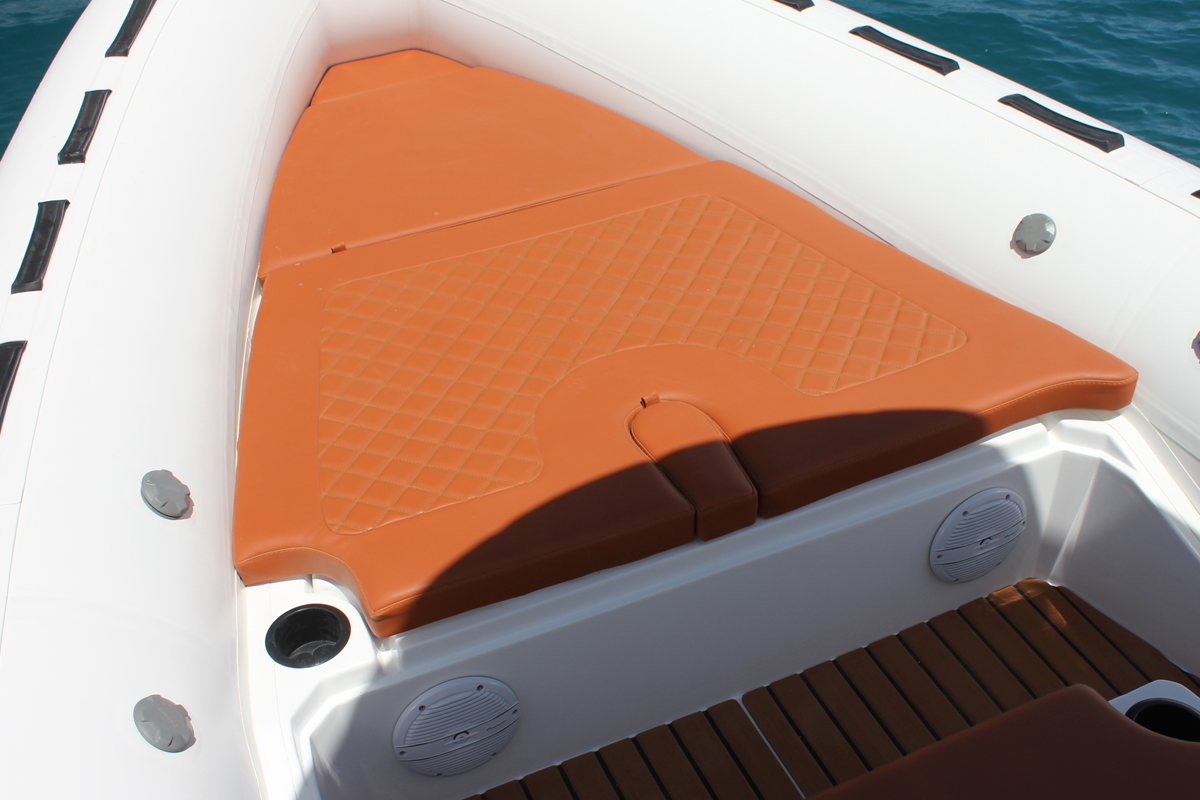 The Tiger Marine 740 PL is stocked with hypalon tube. SeaDeck faux teak, Silvertex cushion set, ski-pole, Nav lights, Bilge Pump, Battery system with cutoff switch, Fiberglass T-top with aluminum frame. SS rod holders. SS cup holders, SS swim ladder. Stand-up drivers seat with aft facing seat with arm rest, LED deck lights, Swim platforms with Swim Ladder.
