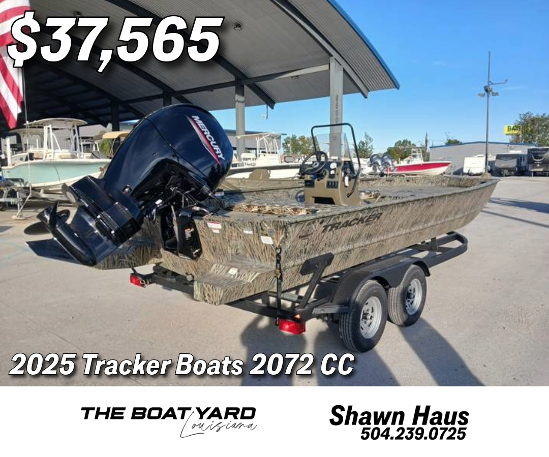 Unleash the power of the TRACKER® GRIZZLY® 2072 CC, a formidable all-welded aluminum jon boat designed to tackle a multitude of tasks, whether it's inland or inshore fishing, hunting, or utility work. Boasting a massive build, this boat is ready to conquer any challenge you throw its way. The innovative center-console design not only offers 360° fishability but also provides the driver with enhanced visibility when navigating through narrow and shallow waters, ensuring a smooth and controlled ride. With the capability to be powered by up to 150 HP, the GRIZZLY 2072 CC delivers unmatched power and range for your adventures on the water. Constructed with 100% aluminum, featuring a .100 hull and .190 floor, this boat guarantees exceptional durability and longevity. The hull, stringer, transom, and decks are meticulously all-welded to create a rock-solid, unitized structure that can withstand the harshest conditions with ease. Backed by the reliable TRACKER PROMISE, offering the best factory warranty in aluminum boats, the GRIZZLY 2072 CC provides you with peace of mind and confidence in your investment. For those looking to personalize their vessel, optional TrueTimber camo patterns and a MarineMat kit are available, allowing you to tailor your boat to suit your preferences and style. Experience unparalleled versatility, power, and durability with the TRACKER GRIZZLY 2072 CC, your ultimate companion for a wide range of water activities.