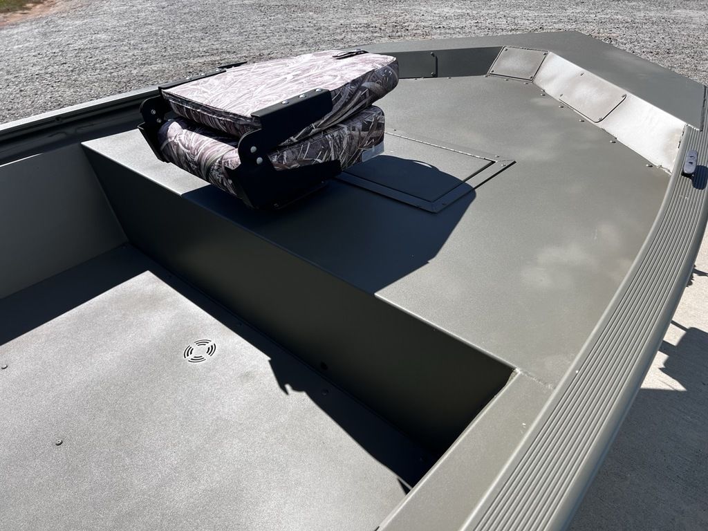Camo Patterned Folding Fishing Seats Bow Deck Lockable Storage Sure Tread™ Non-Skid Interior100% Aluminum, Wood-Free Construction Thick .190 Aluminum Floor for Added Rigidity & a Quieter Ride 2-Piece, .100 5052 Marine Grade Aluminum Hull