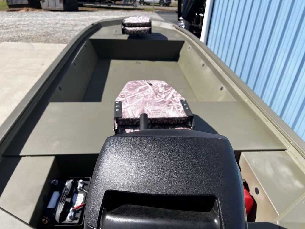 The 1648 has a thick .190 aluminum cockpit floor plus a big front deck with a lockable storage compartment. The 7° deadrise Mod V hull provides a smooth, dry ride, and it's finished with our exclusive Forest Green powder-coat (as well as SURE TREAD™ texture on the floor). And like all TRACKER boats, it’s backed by the TRACKER PROMISE—the best factory warranty in aluminum boats.