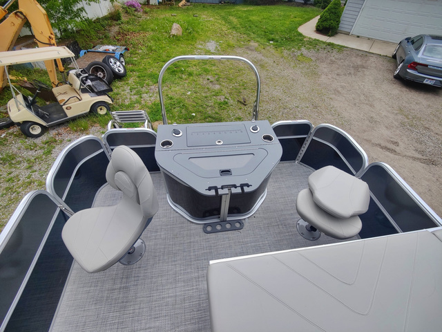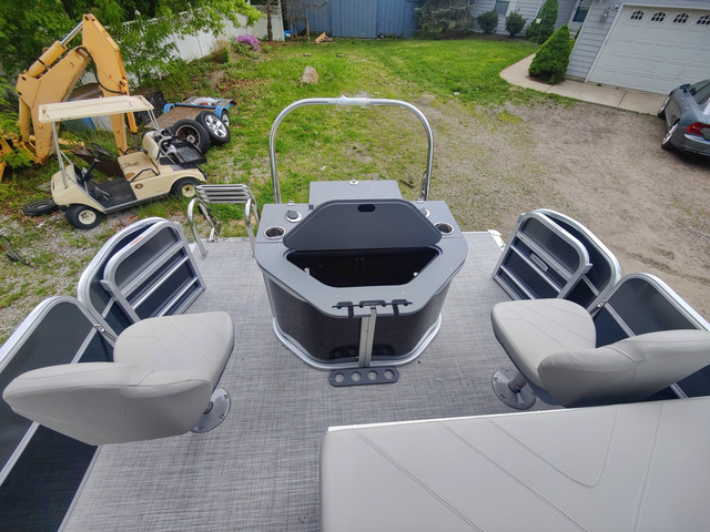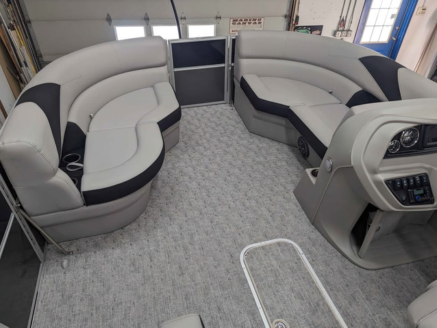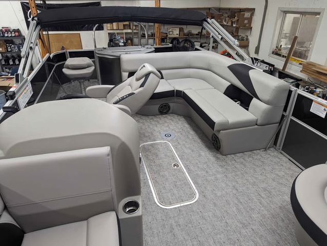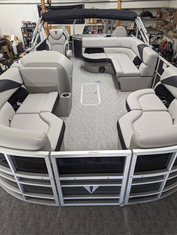 Call for best price. Trifecta's LE Series are built with the very same top quality construction techniques and materials you'll find in the company's other higher-end series. By offering limited options, colors, and floorplans this easy to order boat keeps prices attainable. Our reinforced splash fins, stainless steel mid-back reclining helm chairs, and our one of a kind v-lite performance deck makes Trifecta's "entry-level" a cut above other manufacturers. This 2025 Trifecta LE TRFC comes with a few bells and whistles in addition to its impressive array of standard features. The floorplan leaves ample space in the back quarter of the boat for 2 fishing seats offering comfortable riding positions at the stern, as well as excellent adjustable fishing seats. Between these two stern chairs is a center console with built in tackle boxes and a full livewell. The remaining three quarters of the boat maximizes seating and storage with furniture accented in the same black as the exterior. This boat is an incredible value! Its 22' long with a Stealth 150HP 4 stroke Suzuki outboard. It is the perfect family tritoon for any occasion. Trifecta's LE Series is second to none in the industry on value and overall performance with composite floor that is 2X stronger and 40% lighter than wood. Makes this ride fast and efficient. Adding to the performance advantage Trifecta already enjoys over other pontoons/tritoons. This TRFC model means it is ready to accommodate a group of fisherman with tackleboxes, rod holders, a livewell at the stern, fishfinder, and swivel fishing chairs. This model also includes a full size fold out changing room located behind the L Lounge in the middle seating area. Trailer in picture is also available. New 2025's come with the $2500 power bimini option now standard! Includes full black mooring cover. Come visit us for a test drive today! Non Standard Added Options on this Boat: - Lowrance Hook 5 GPS & Depth Finder - Table Assembly - LED Docking Lights - Stainless Ski Tow Bar Comprehensive manufacturer warranties included with all new Trifectas, along with extended Winter 7 year factory warranty from Suzuki.